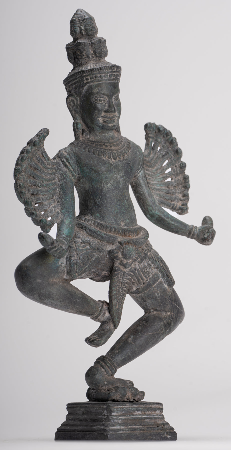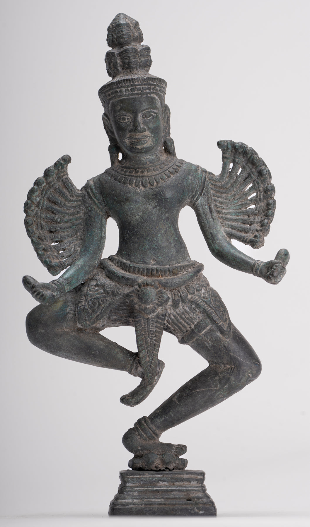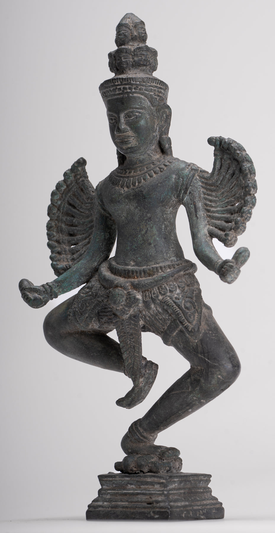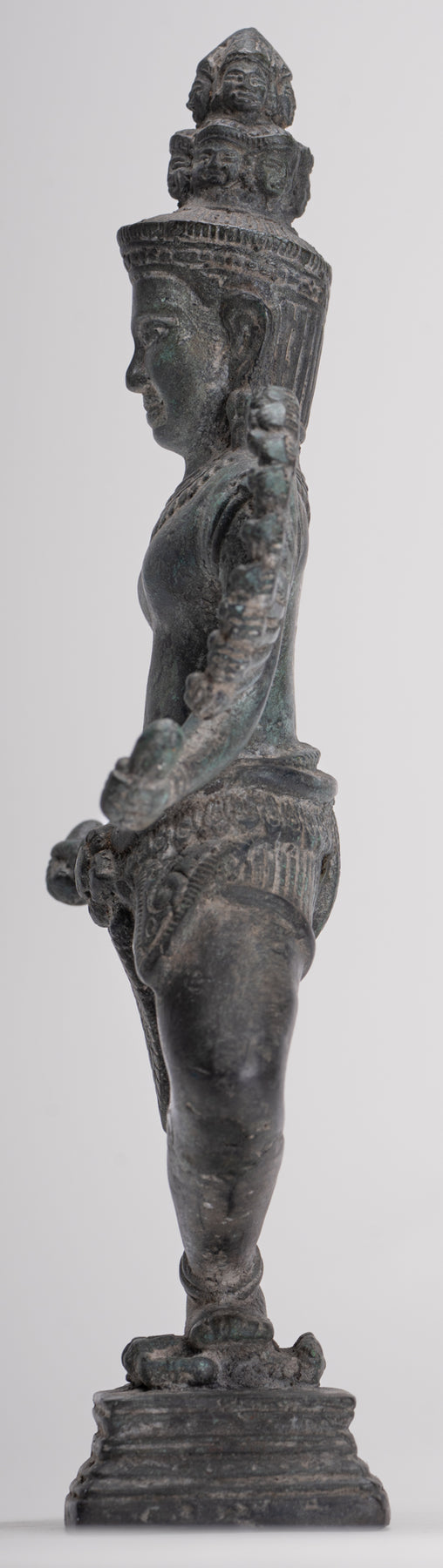 Antique Khmer Style Standing Bronze Angkor Wat Hevajra Statue - 26cm/10" Tall