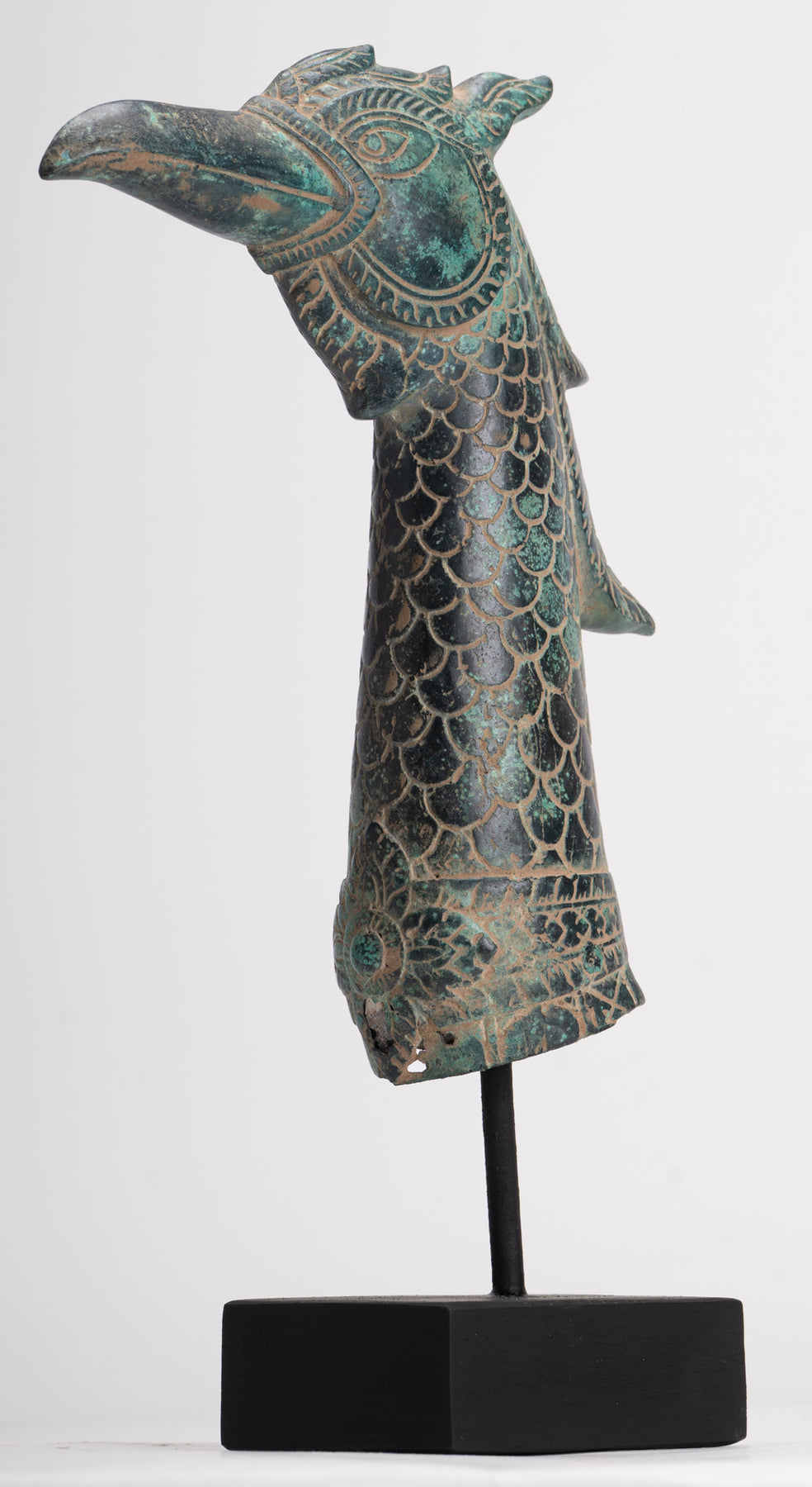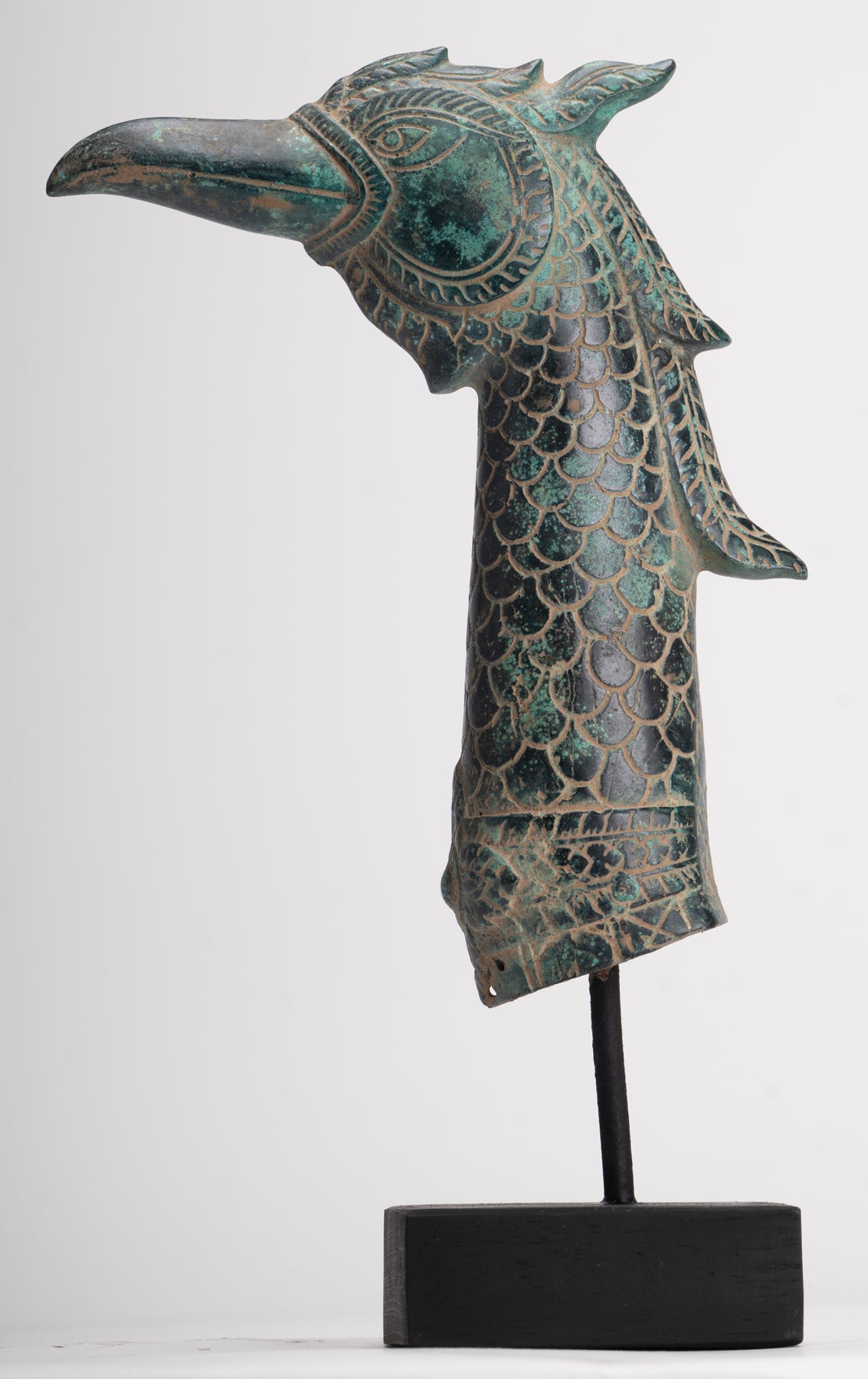 Stehender mythischer Vogel/Gans/Pfau aus Bronze im antiken Thai-Stil – 24 cm hoch