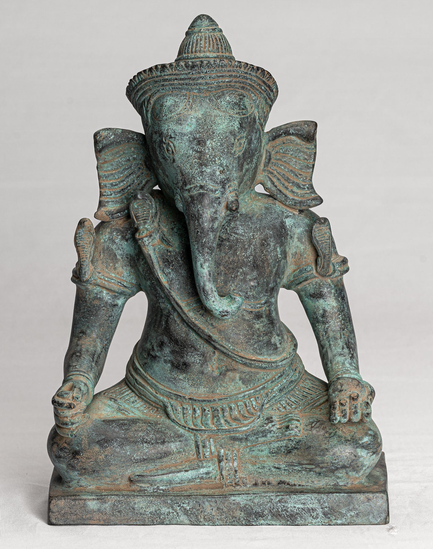 Antike sitzende Bayon-Ganesha-Statue aus Bronze im Khmer-Stil – 24 cm.