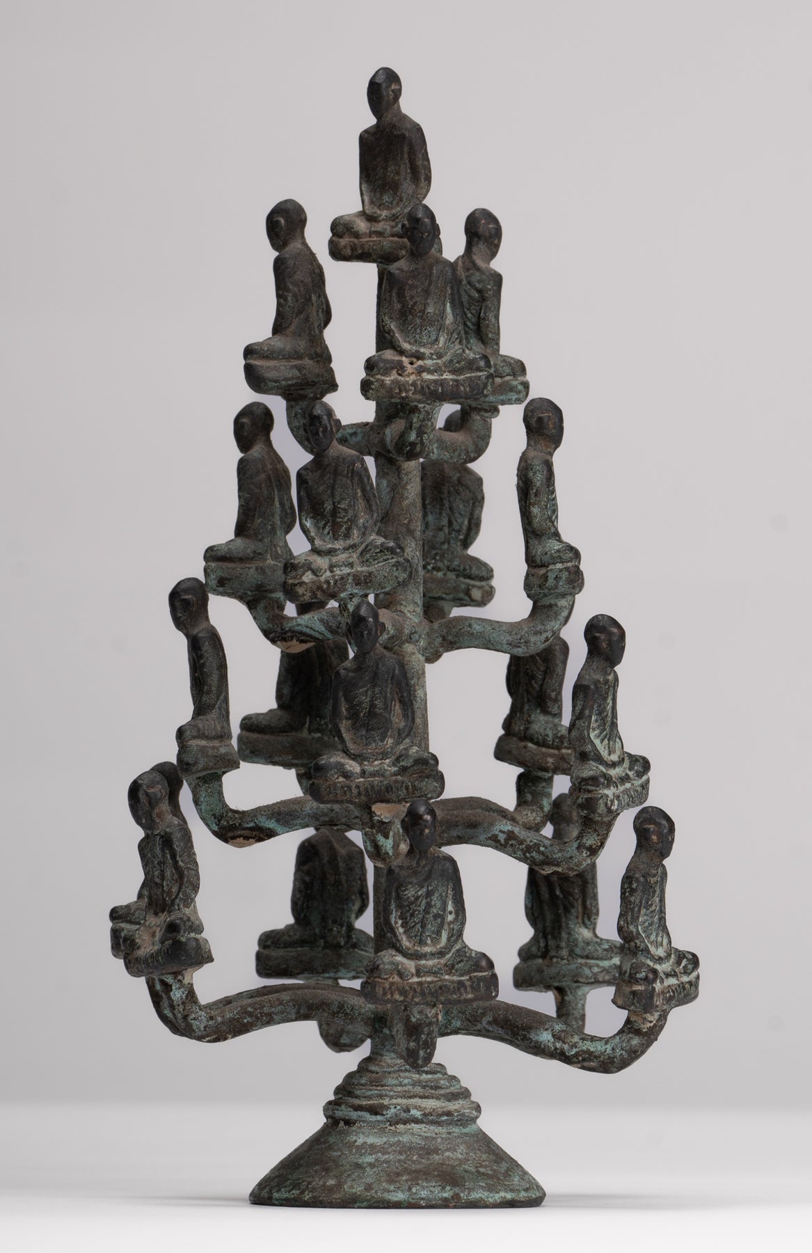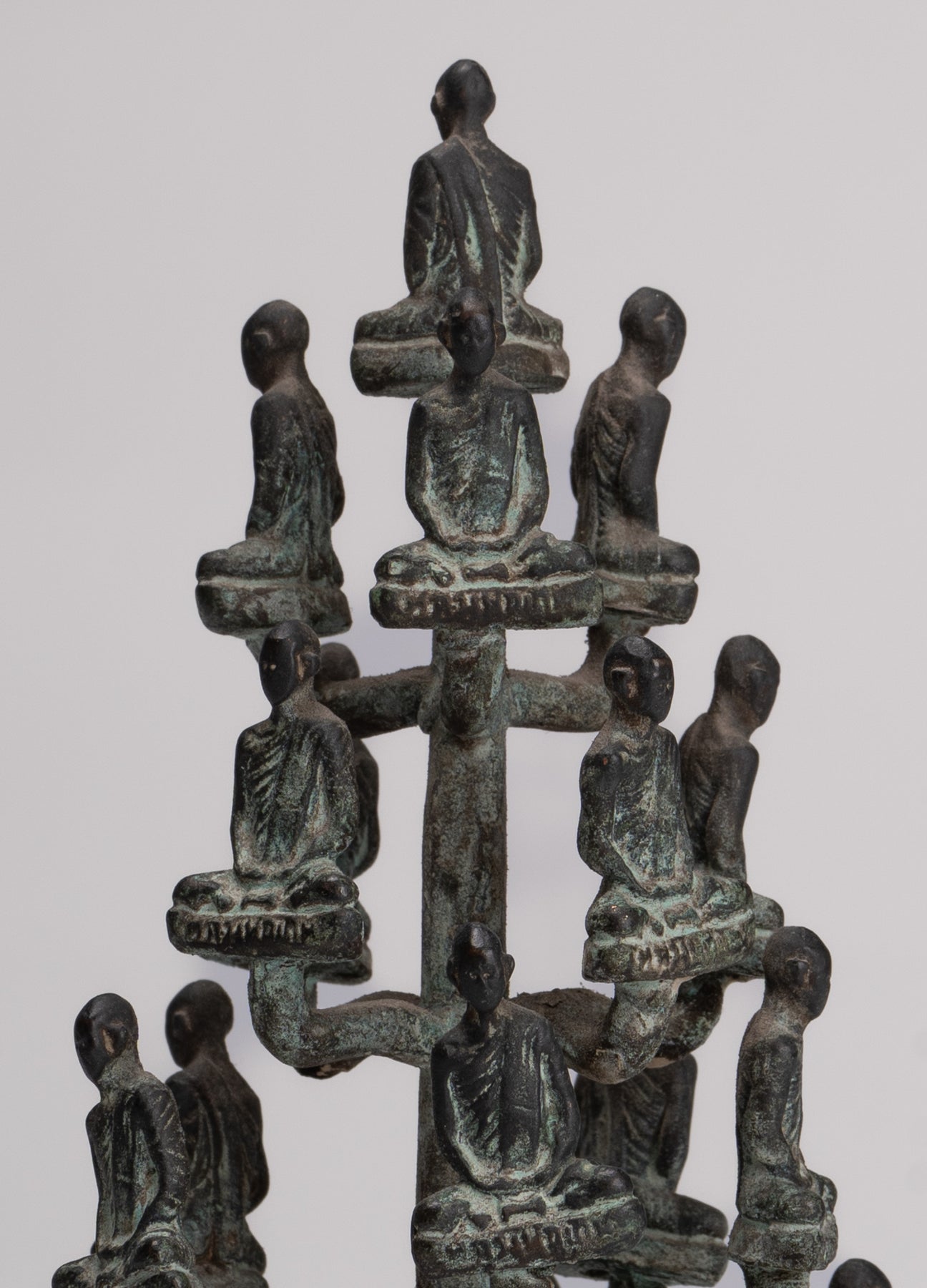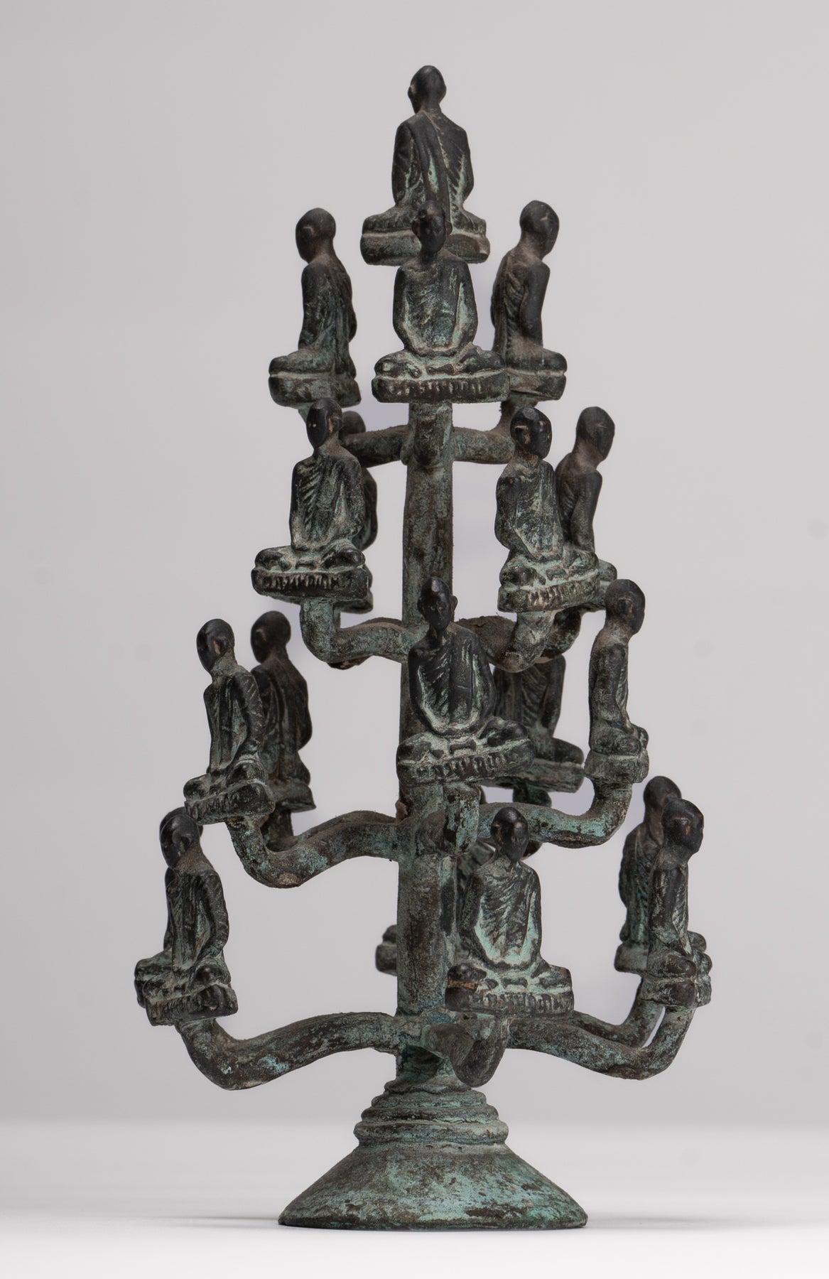 Das Casting ist schön, wie Sie in den feinen Details jedes Gesichts sehen können. Jedes Detail wird perfekt gemacht. Die unverwechselbare Patina des Stücks ist ebenfalls besonders entzückend. Dieses traditionelle Aussehensstück verleiht Ihrem Zuhause, Büro oder heiligen Raum mit Sicherheit Gelassenheit.