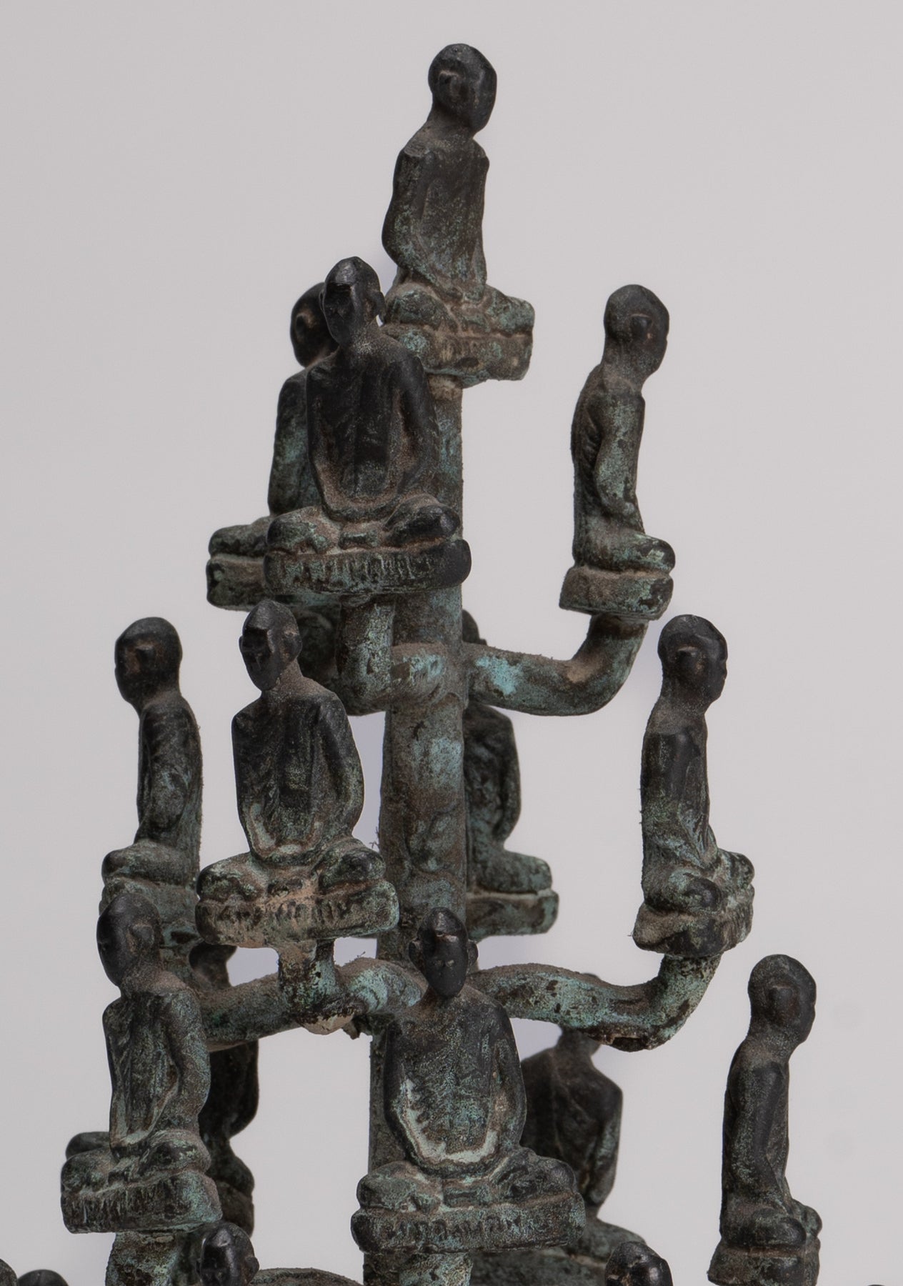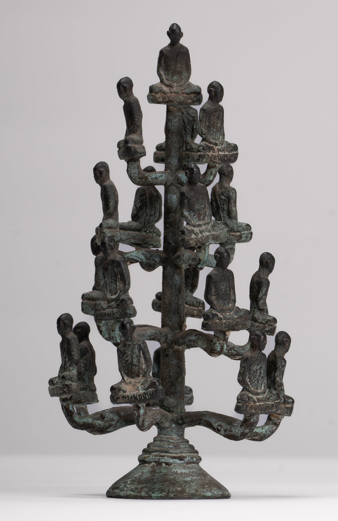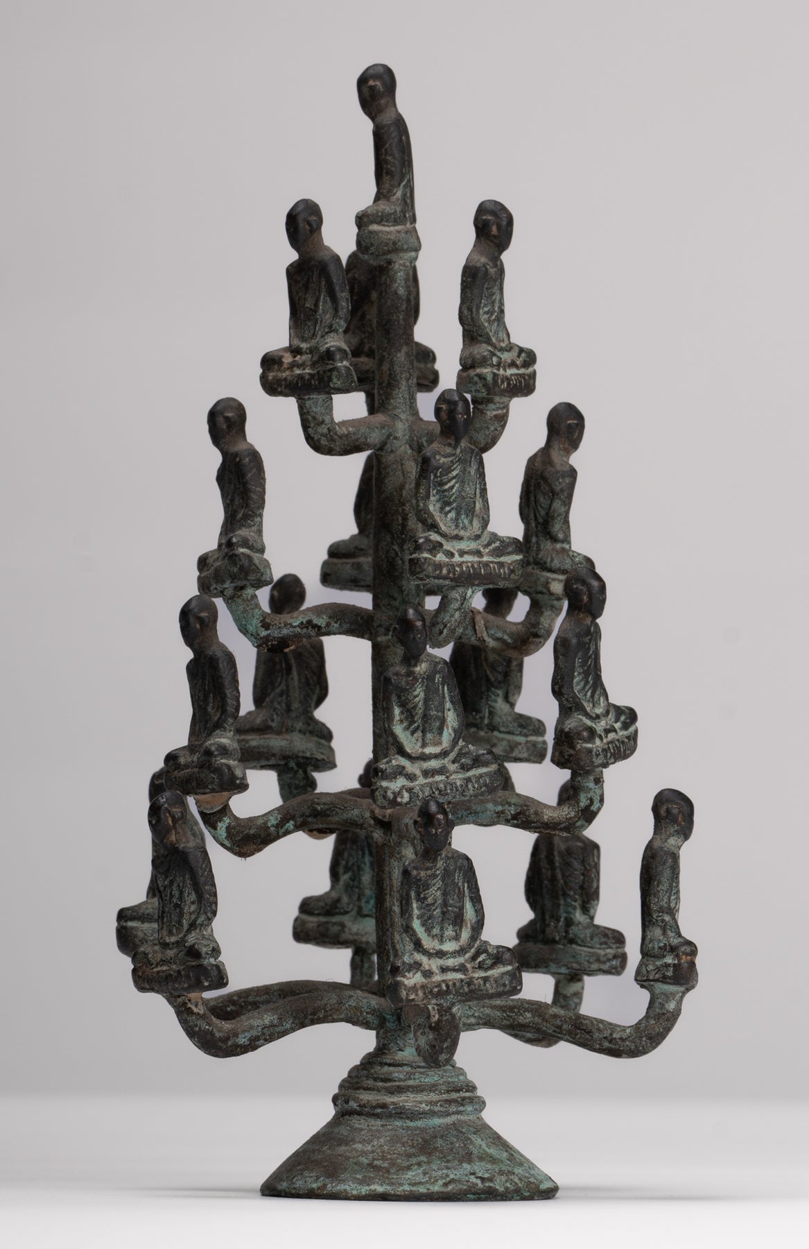 Das Casting ist schön, wie Sie in den feinen Details jedes Gesichts sehen können. Jedes Detail wird perfekt gemacht. Die unverwechselbare Patina des Stücks ist ebenfalls besonders entzückend. Dieses traditionelle Aussehensstück verleiht Ihrem Zuhause, Büro oder heiligen Raum mit Sicherheit Gelassenheit.