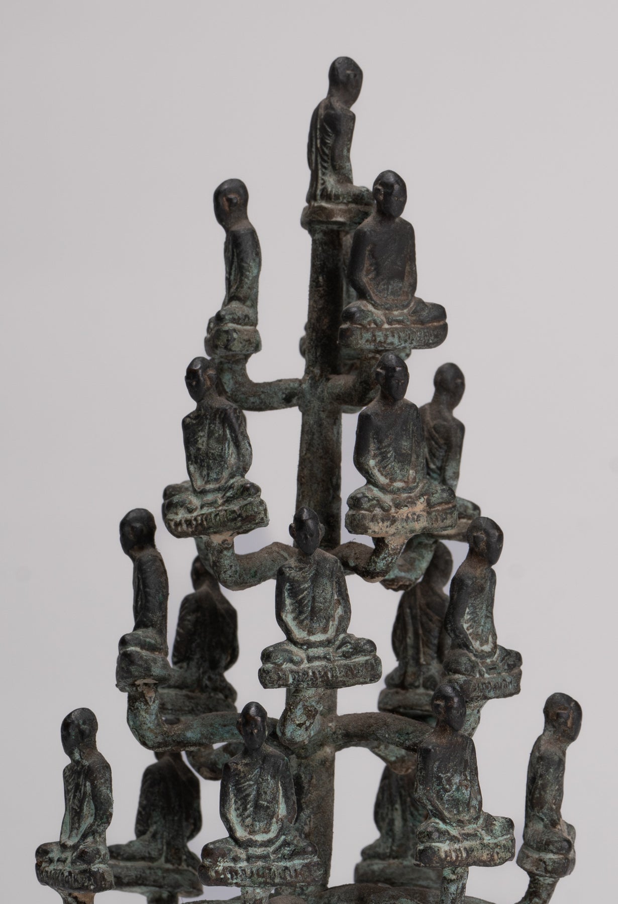 Jeder Mönch oder Jünger Buddha hat ein friedliches Gesicht mit niedergeschlagenen introspektiven Augen und einer festen Stirn.