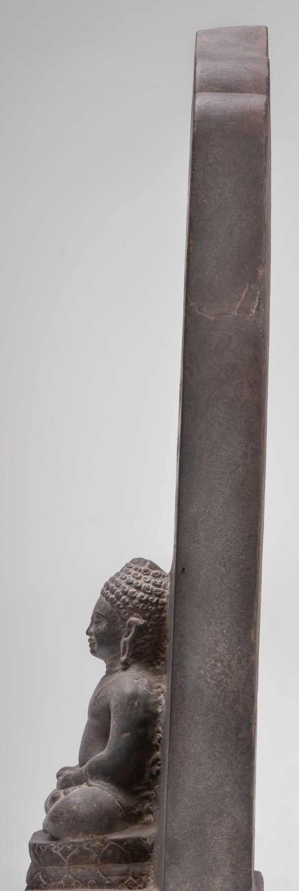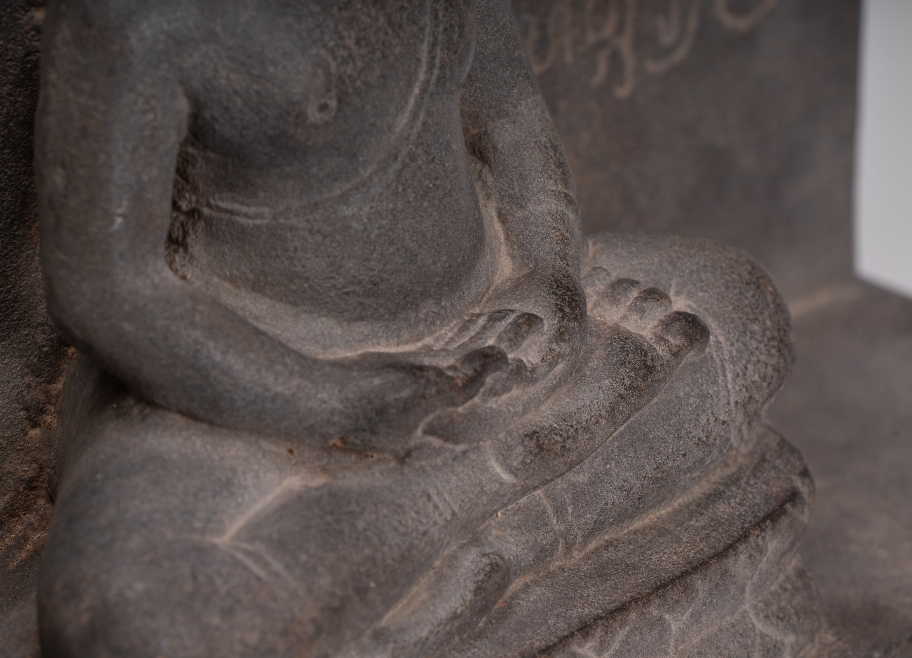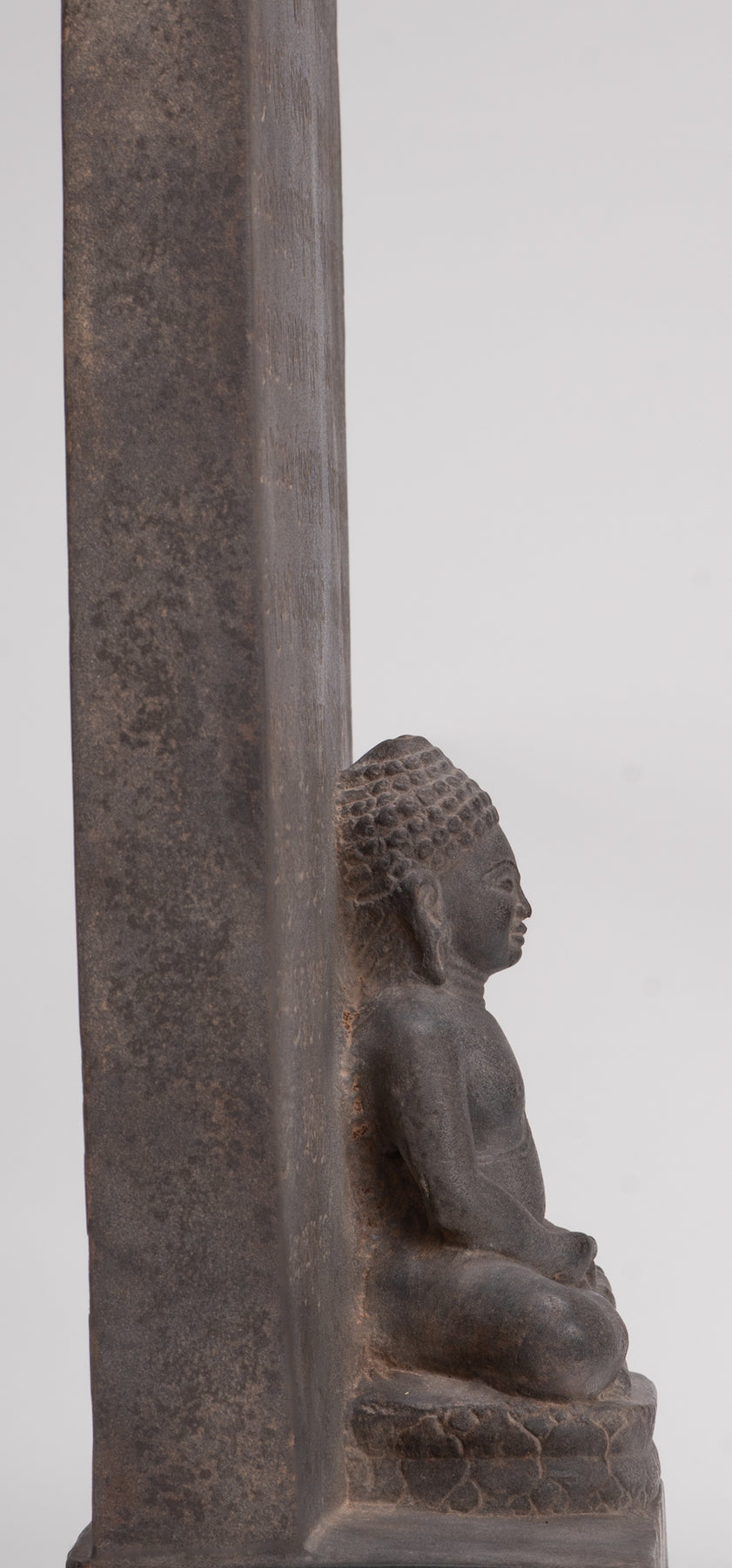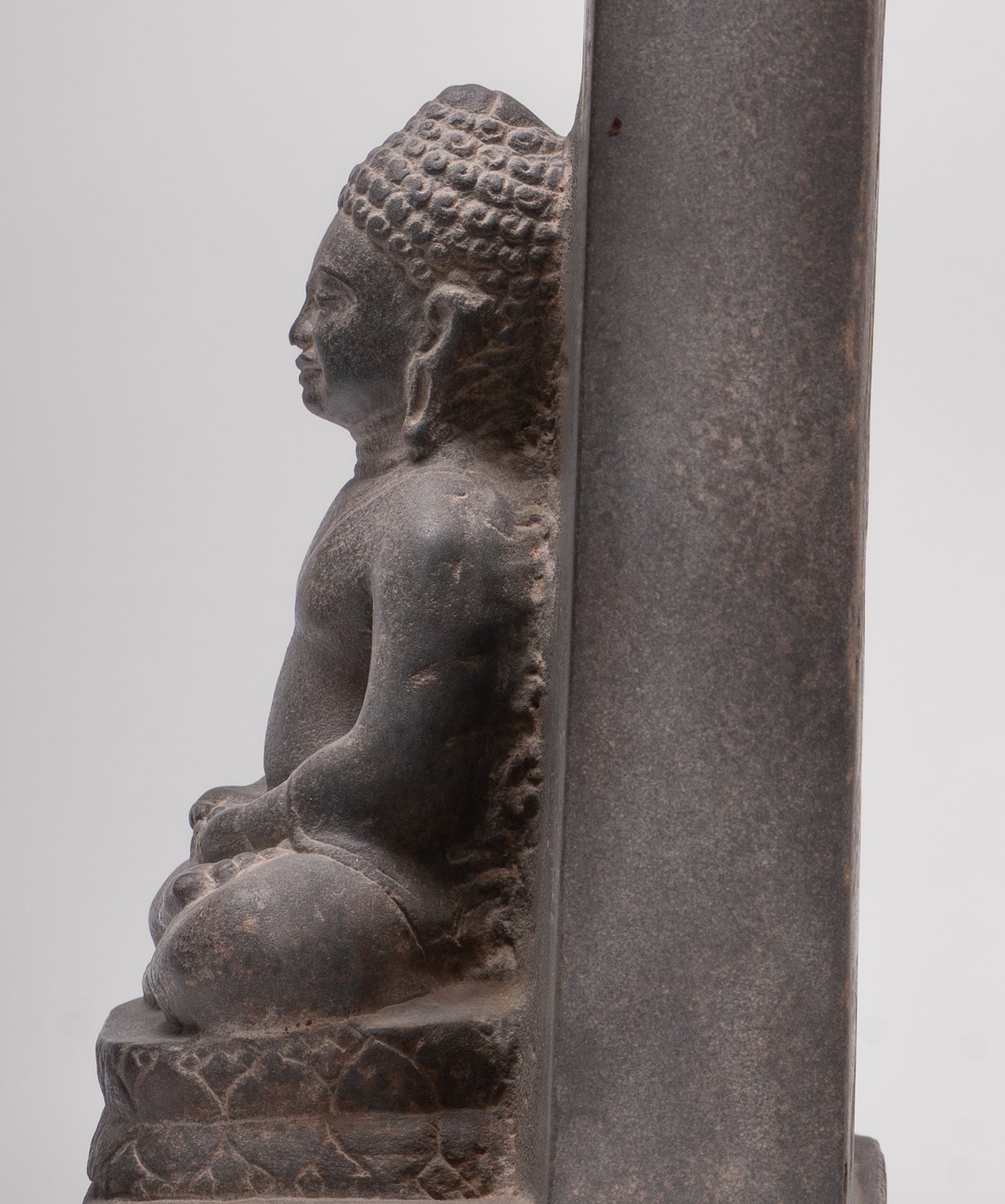 • Antike Steinstele im Khmer-Stil, sitzende Meditations-Buddha-Statue – 61 cm.