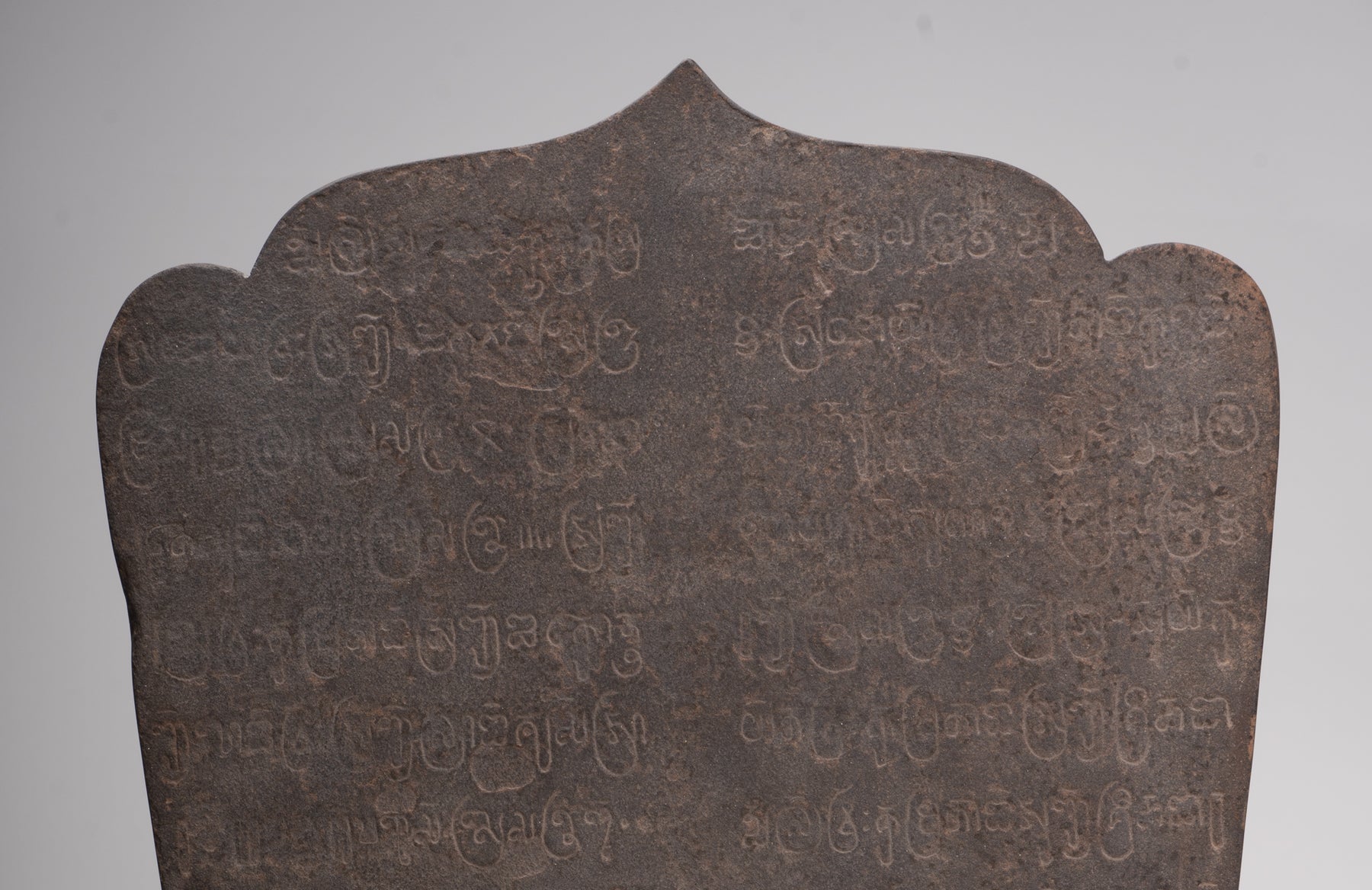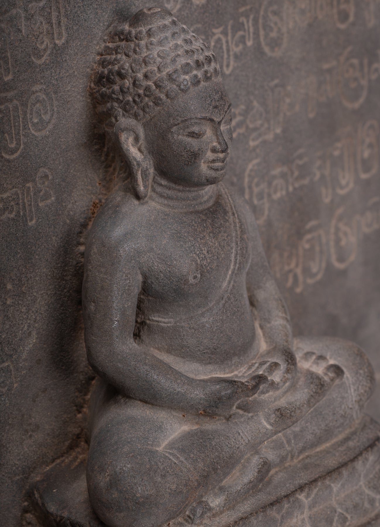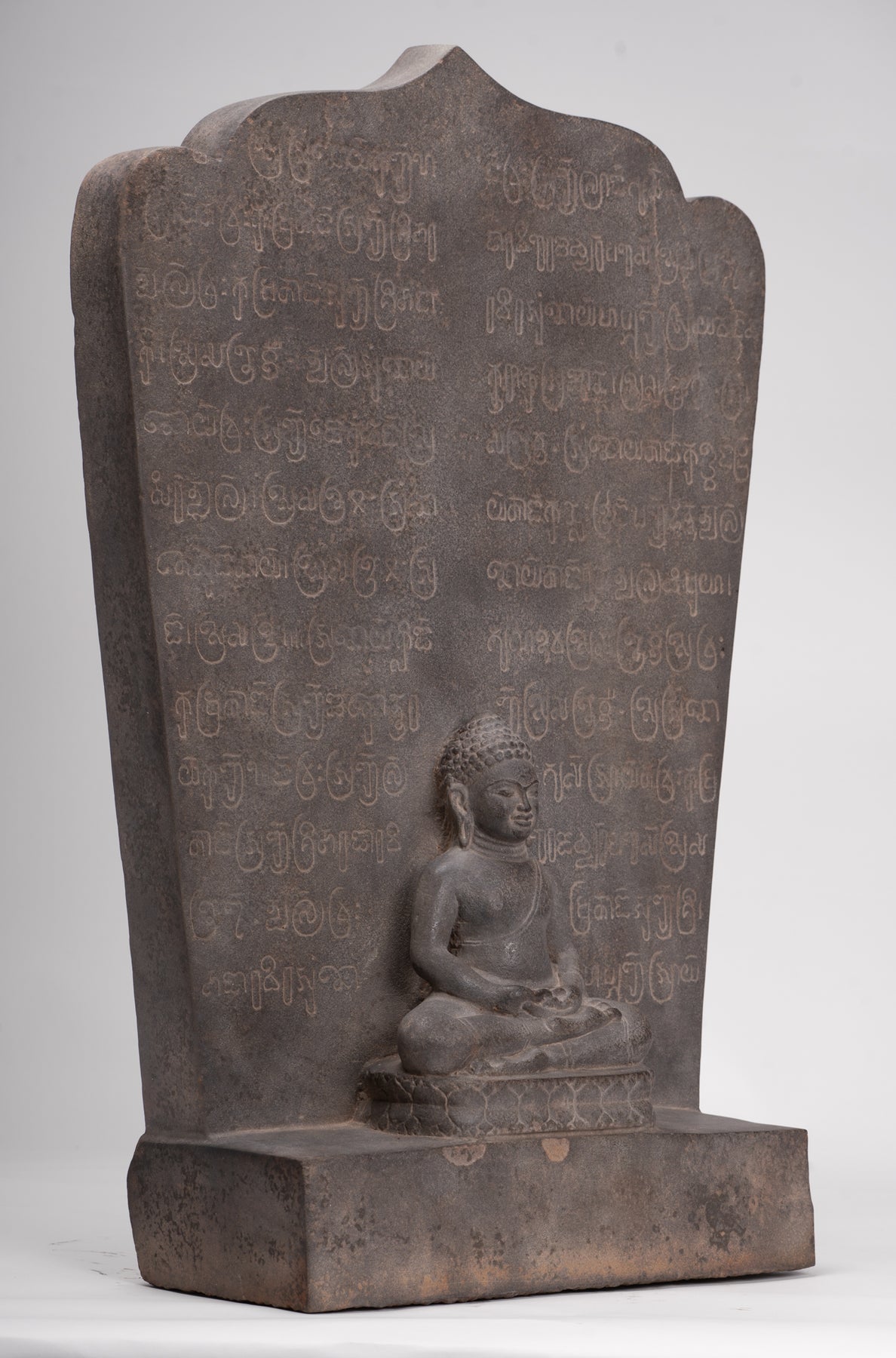 Buddha Statue - Antique Khmer Style Stone Stele Seated Meditation Buddha Statue - 61cm/24"