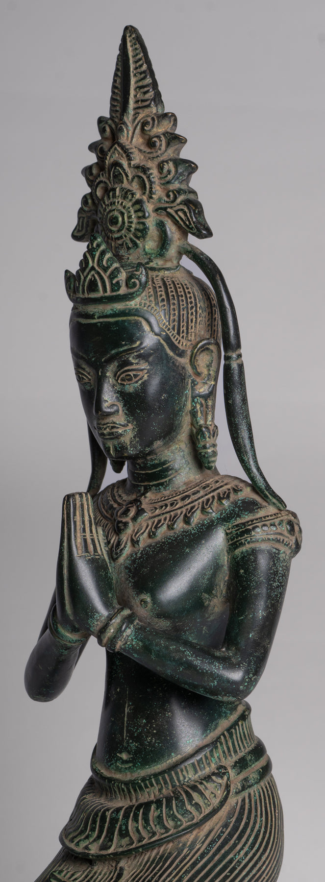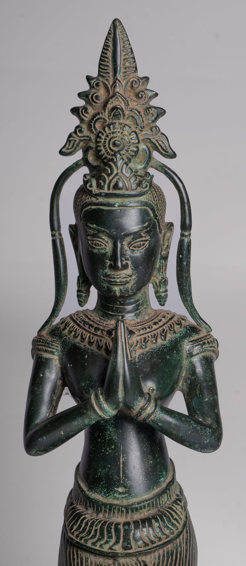Apsara-Statue – Antiker Khmer-Stil, Angkor Wat, Bronze, Anbetung Apsara oder Engel – 45 cm/18 Zoll