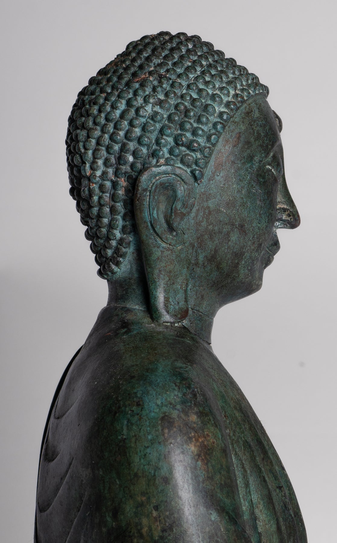 Die Patina und Details in diesem Stück sind besonders erfreulich. Die Oberfläche trägt den warmen Glanz des Alters und unterstreicht die Komplexität des Gusses und die feine spirituelle Präsenz, die es ausstrahlt.