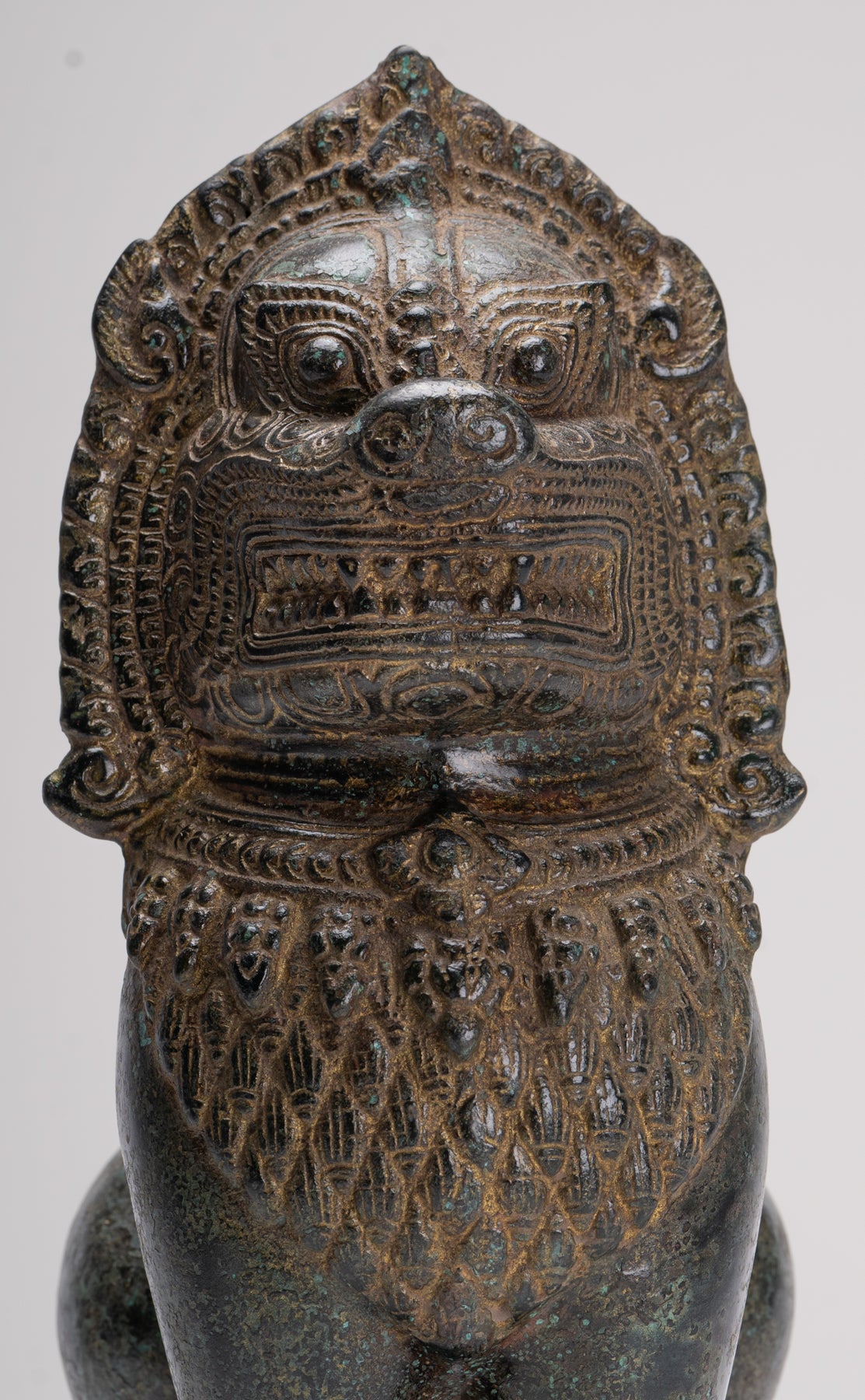 In der Khmer -Kultur hält der Löwe eine tiefgreifende symbolische Bedeutung, die Stärke, Mut und göttliche Schutz darstellt. Es wurde angenommen, dass die Tempellöwen, bekannt als "Singha" oder "Rajasiha", die heiligen Räume bewachen und böswillige Kräfte abwehren. Diese Löwenskulpturen in Bronze mit akribischen Details vermitteln und vermitteln ein Gefühl majestätischer Macht und göttlicher Autorität, wodurch Ehrfurcht und Ehrfurcht gleichermaßen Ehrfurcht und Ehrfurcht vermitteln.