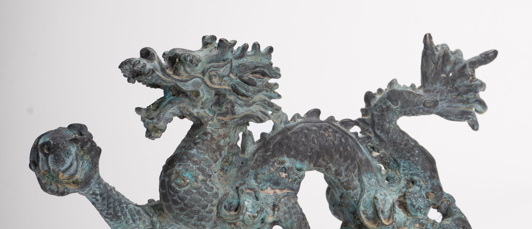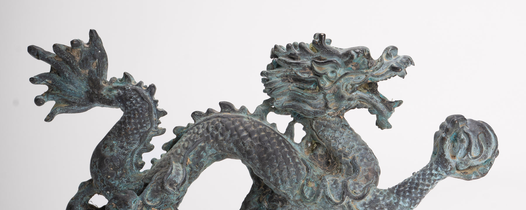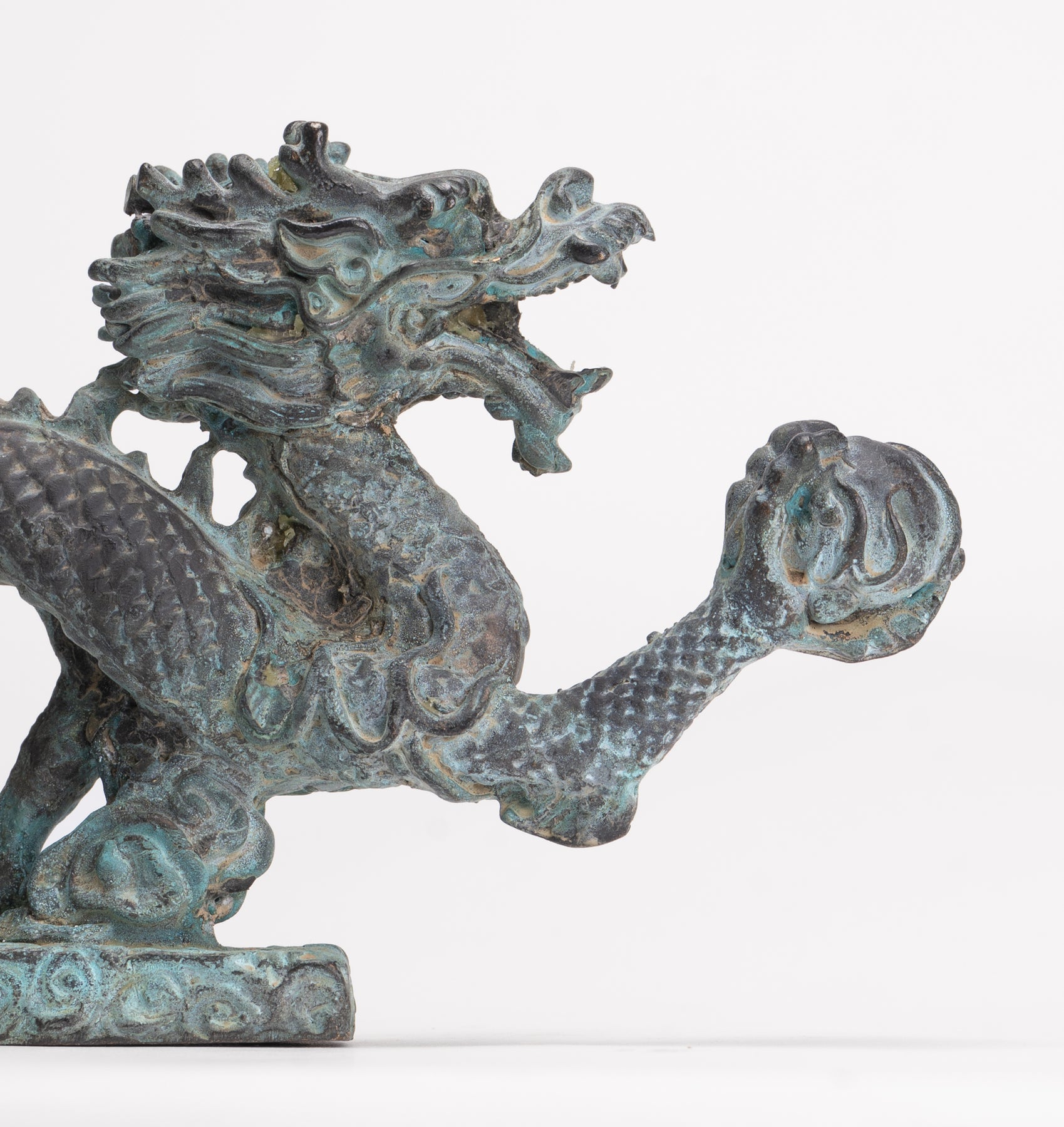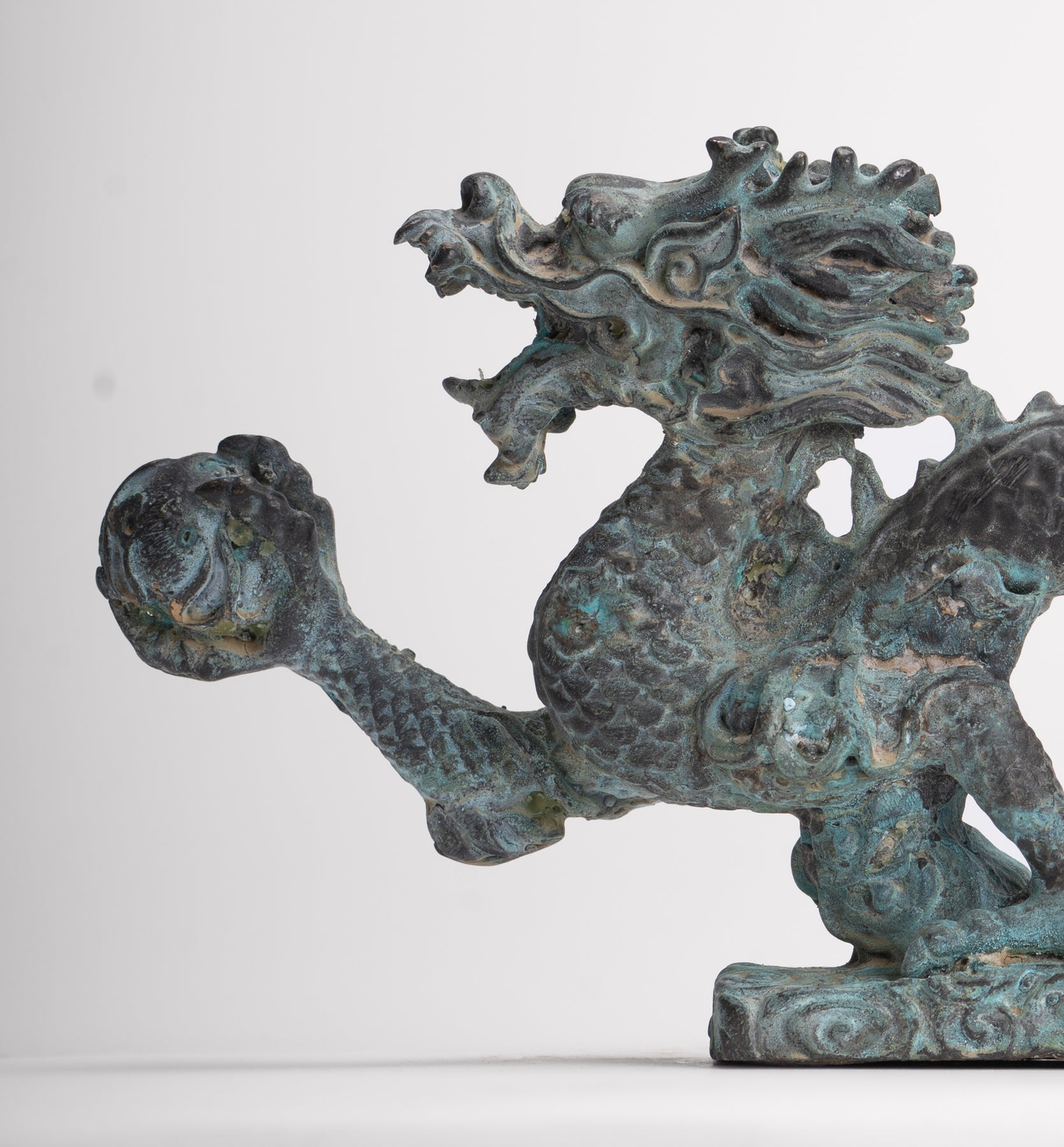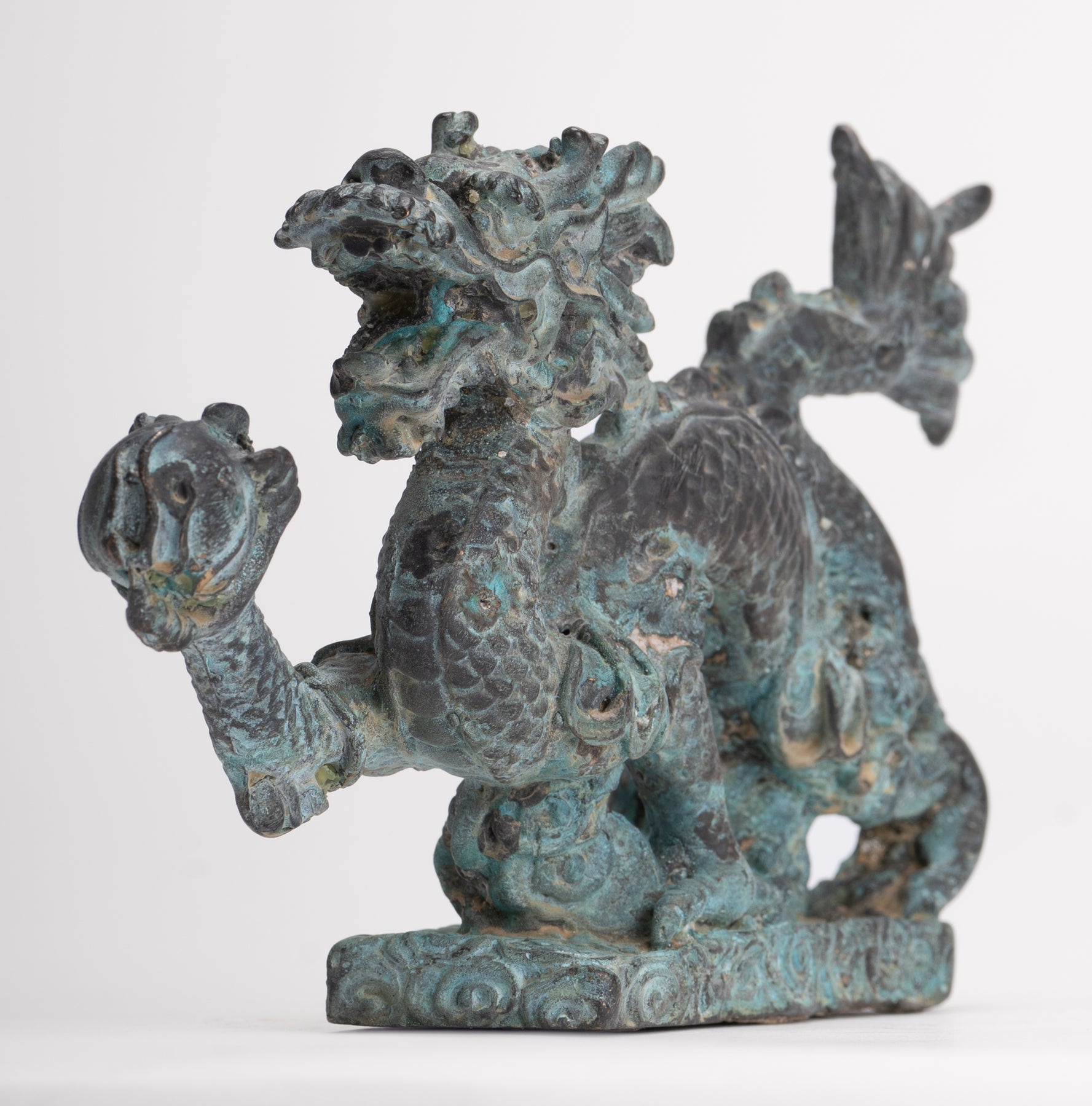 Antike chinesische Drachenstatue aus Bronze im chinesischen Stil – 12 cm.