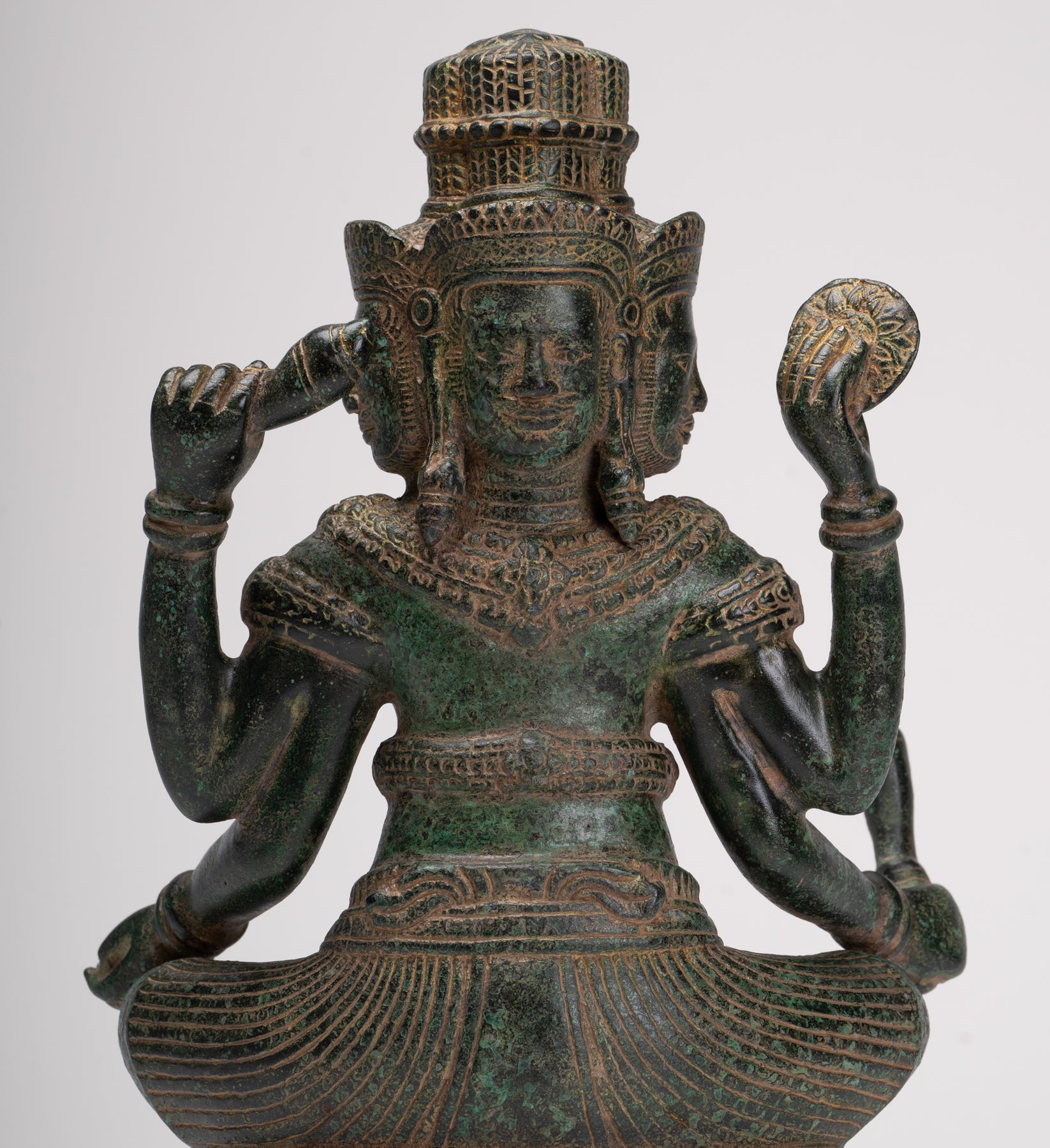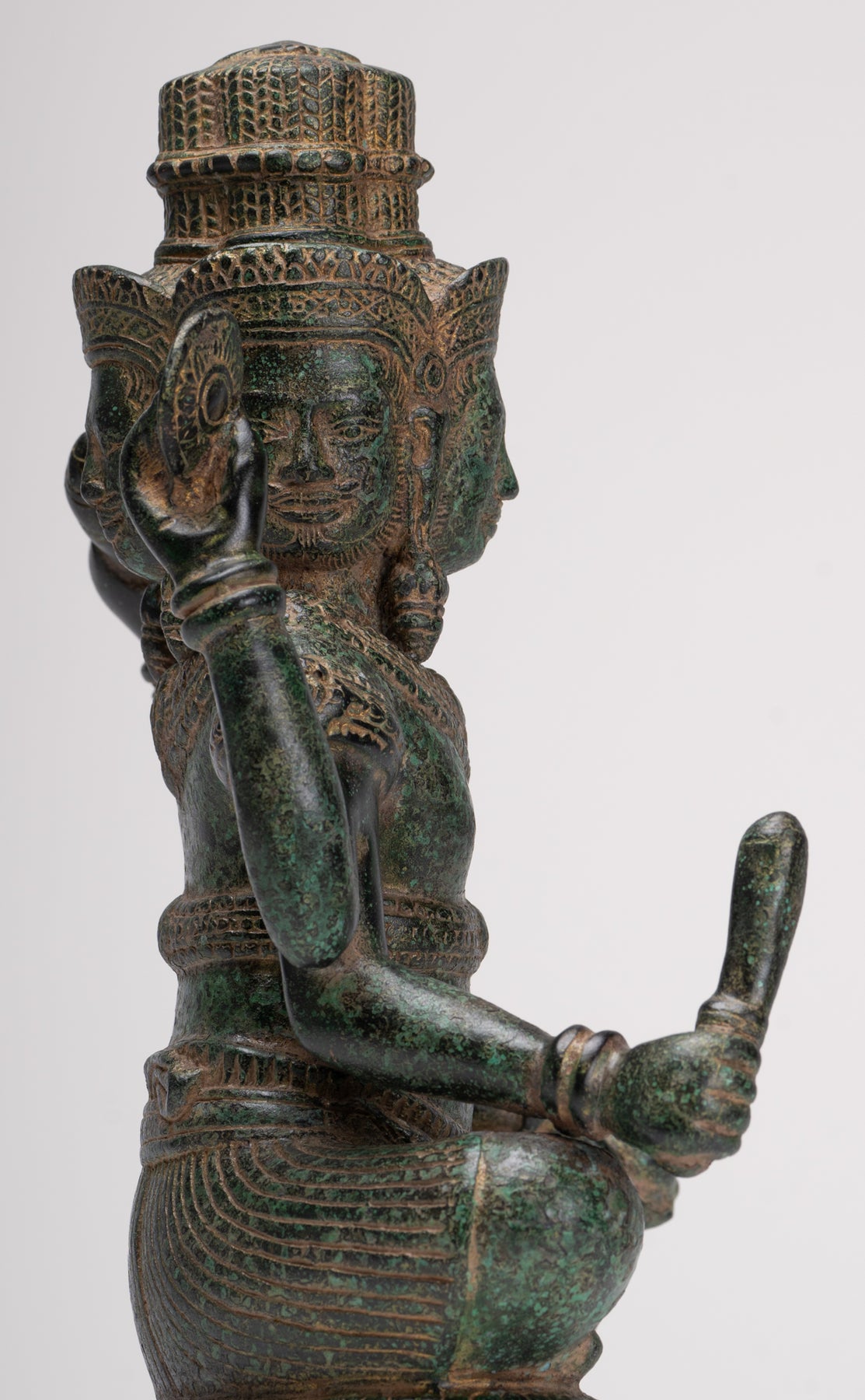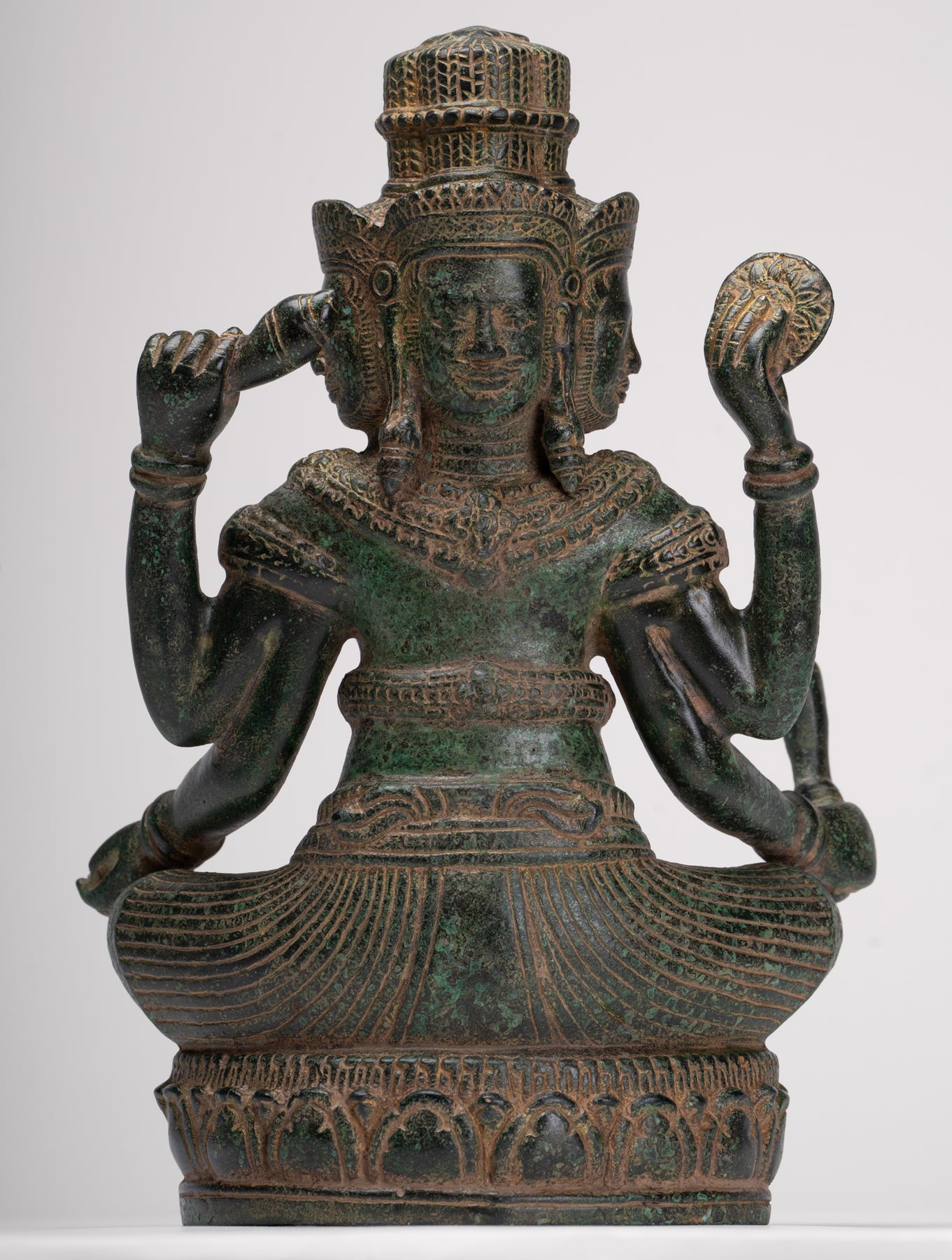 Brahma Statue - Antique Khmer Style Bronze 4 Arm Bayon Brahma - Hindu God Creation - 31cm/12"