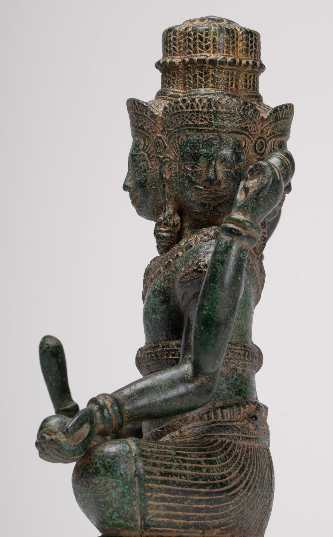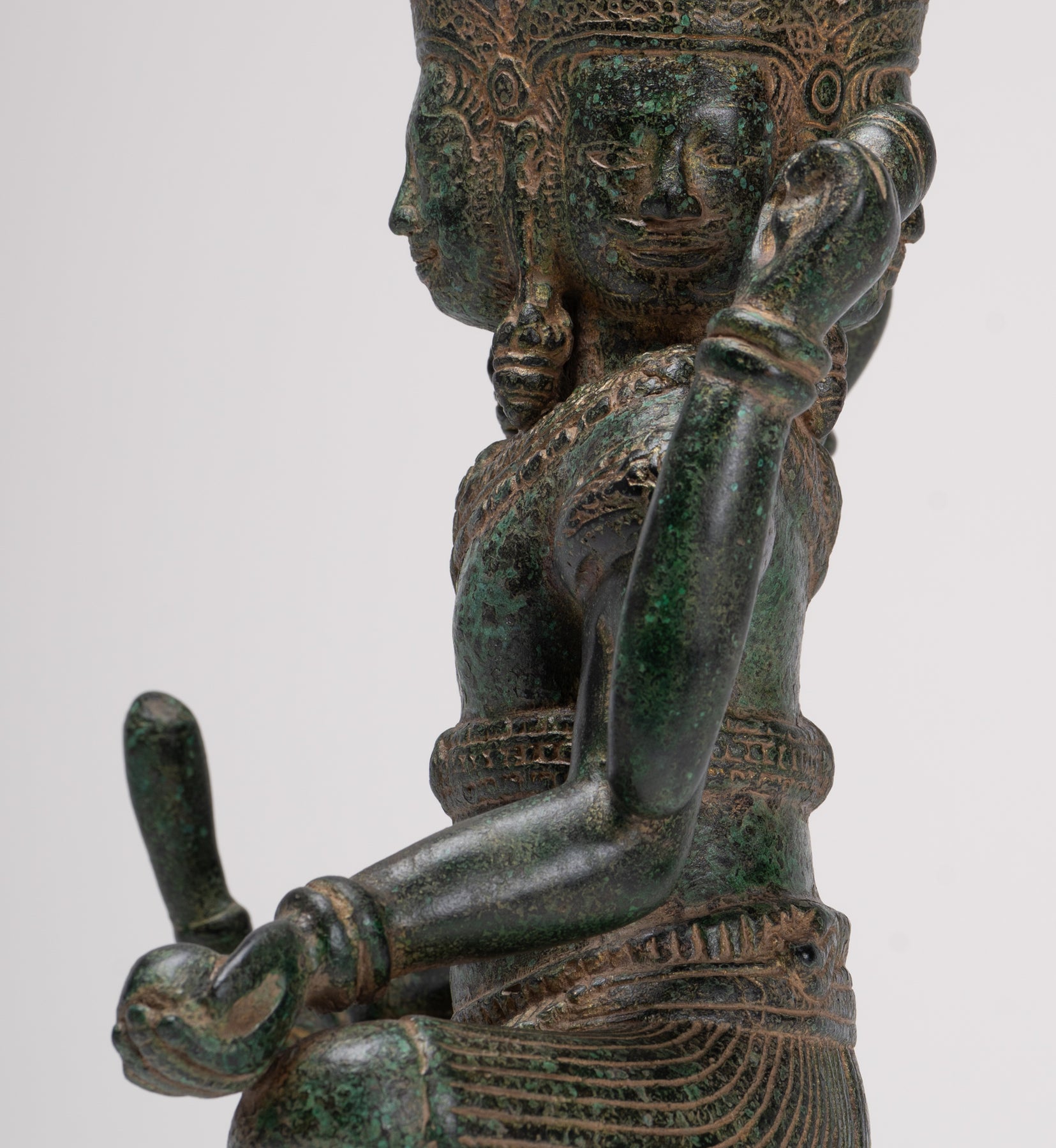 An antique Khmer style seated Brahma in the post-Angkor, Bayon style. Brahma is the Hindu God of Creation and one of the Trimurti, the others being Vishnu and Shiva.