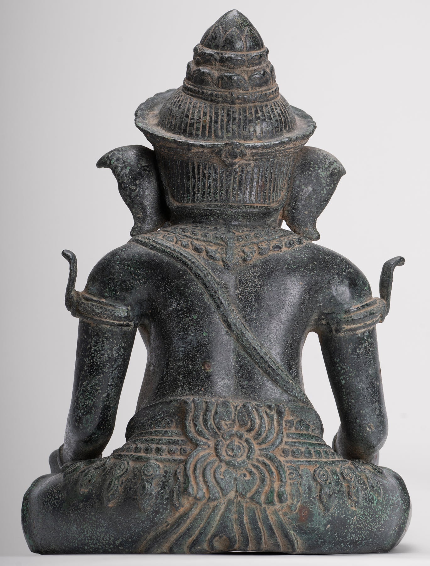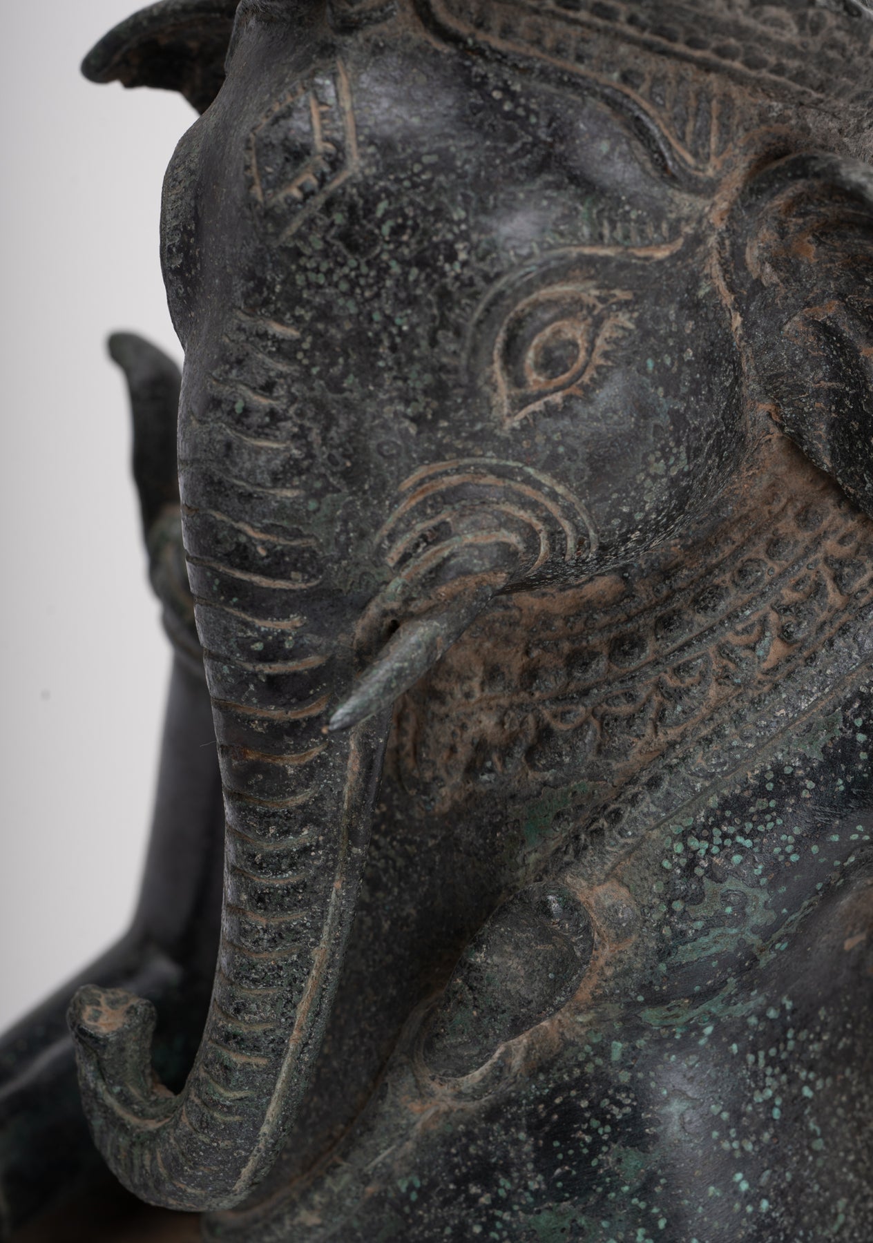 Ganesha Statue - Antique Khmer Style Bayon Seated Ganesh Statue - 36cm/14"