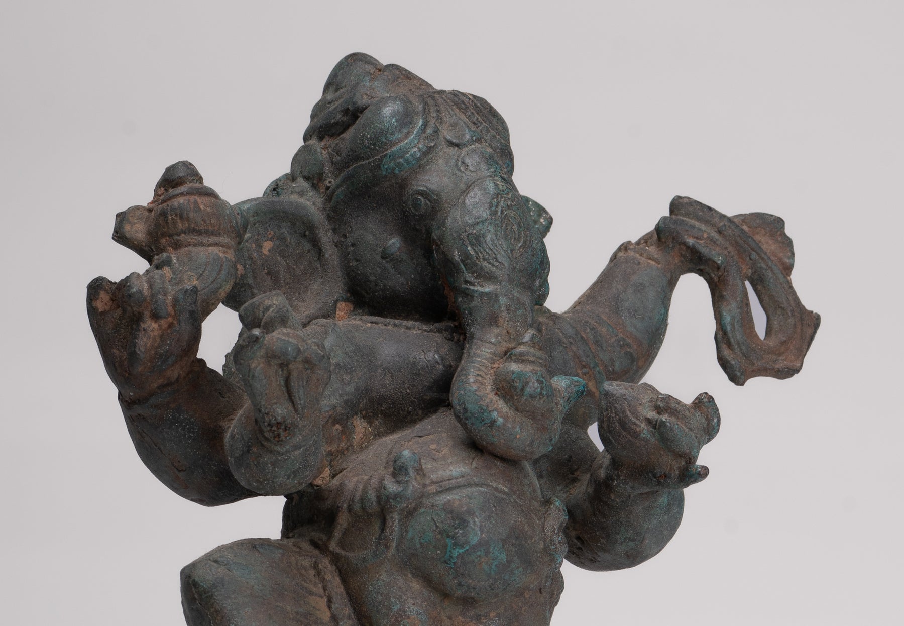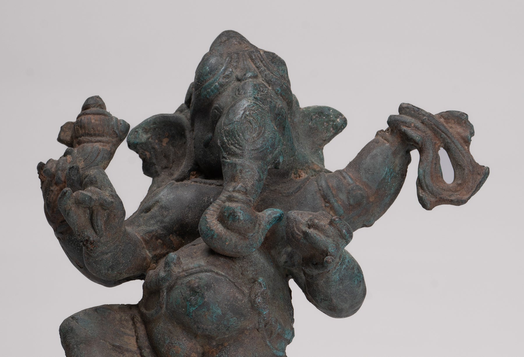 Antique Thai Style Bronze Dancing Ganesha Statue - 30cm/12"
