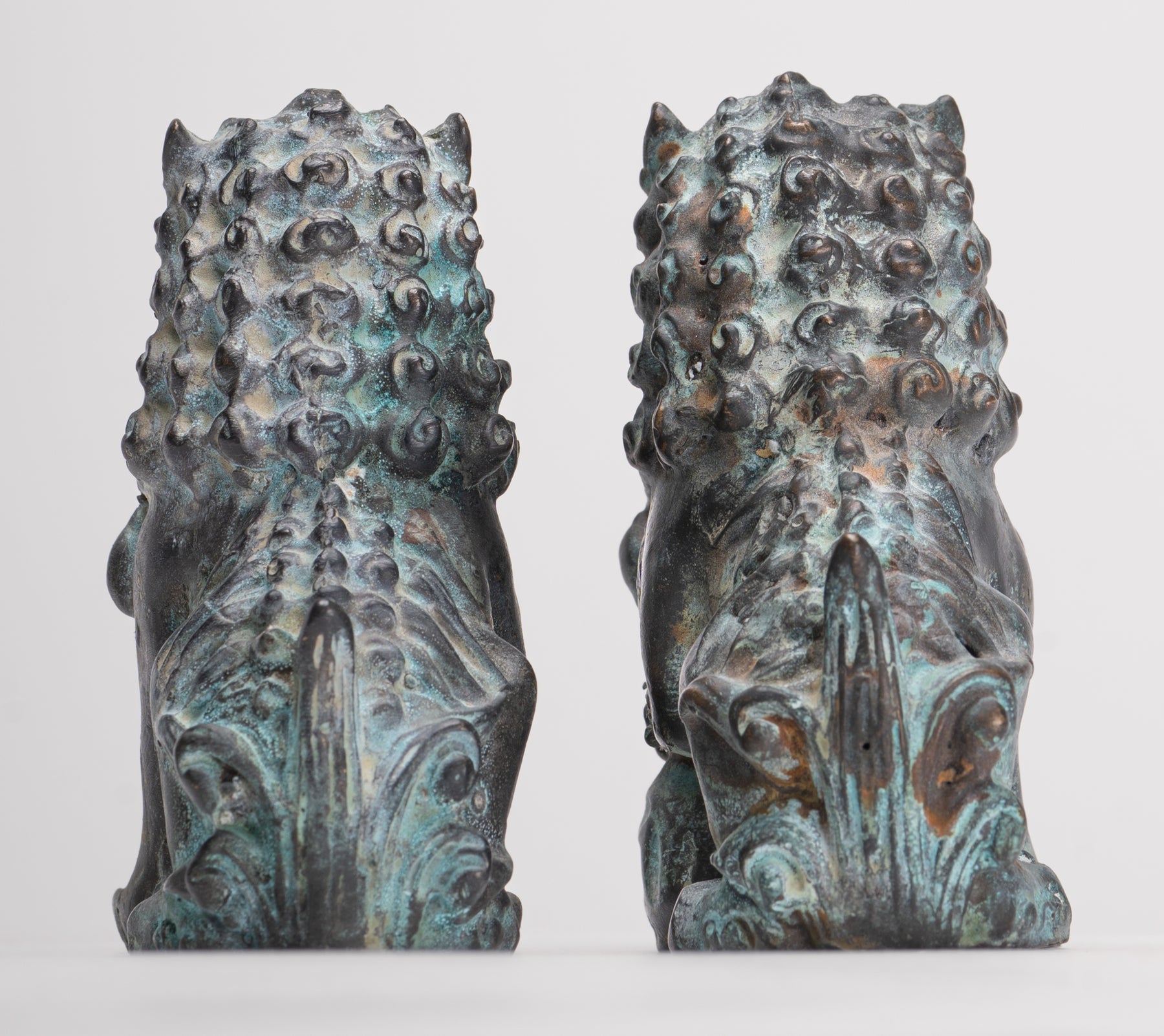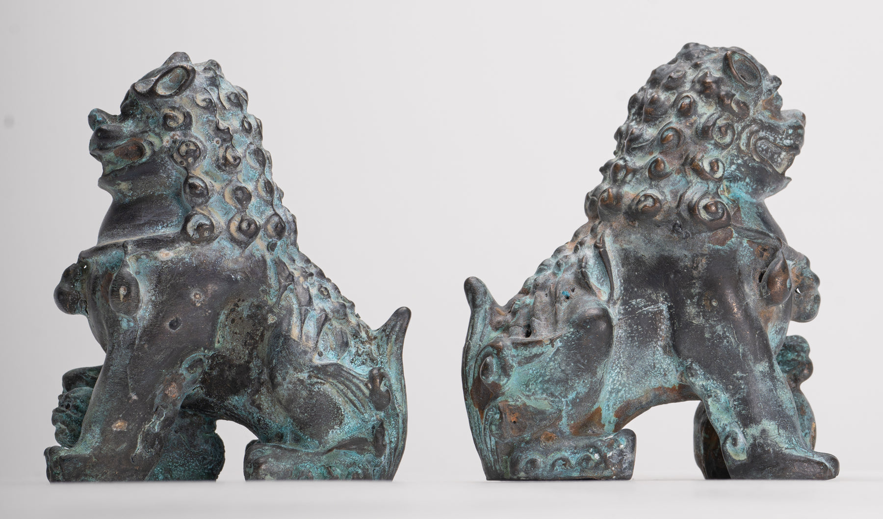 A pair of antique Chinese style Temple Guardian lions, Imperial Guardian lions, Shishi Lions or Foo Dogs.