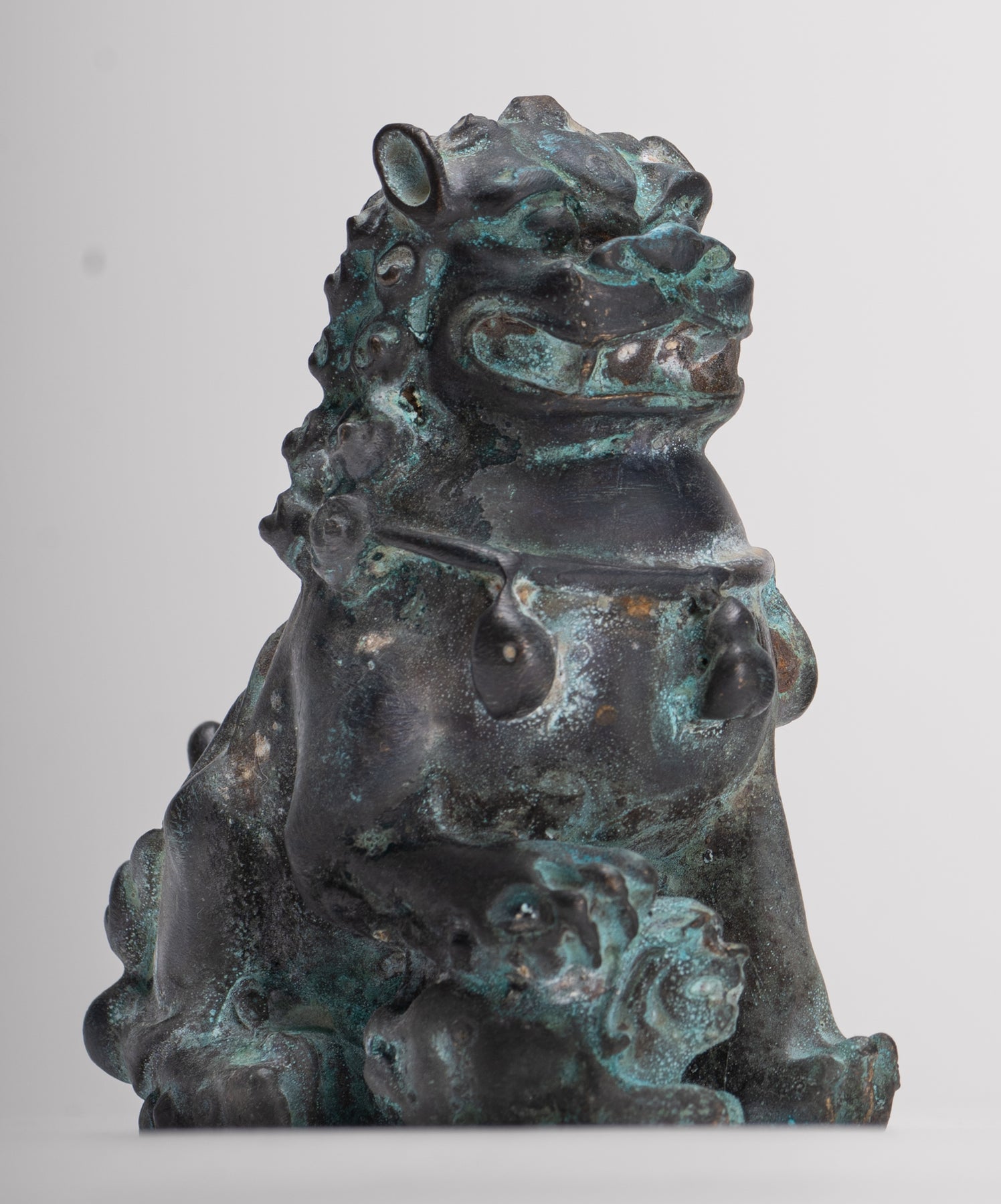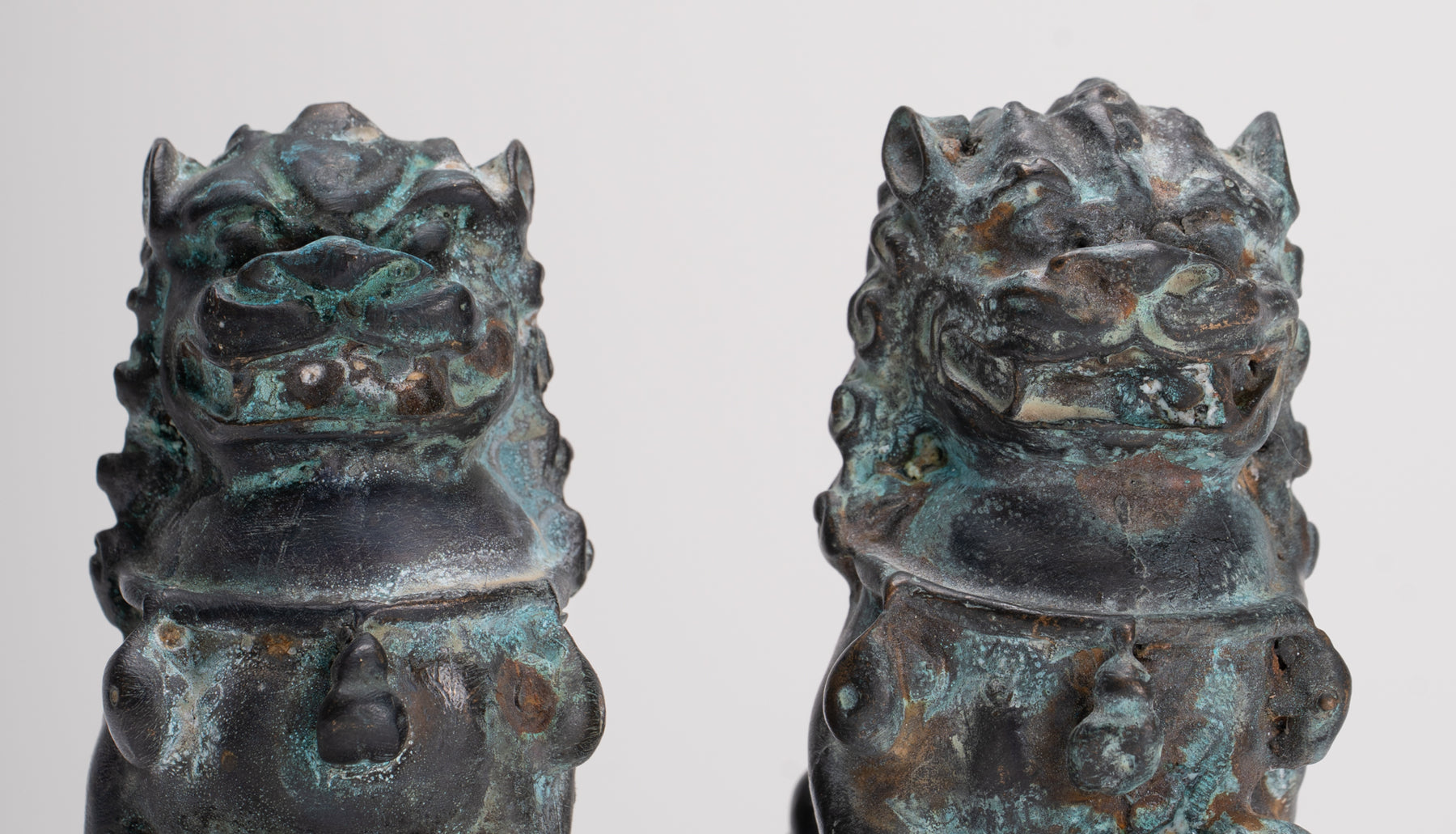 Antique Chinese Style Temple Guardian Lions Foo Dogs Imperial Lions (Pair) - 10cm/4"