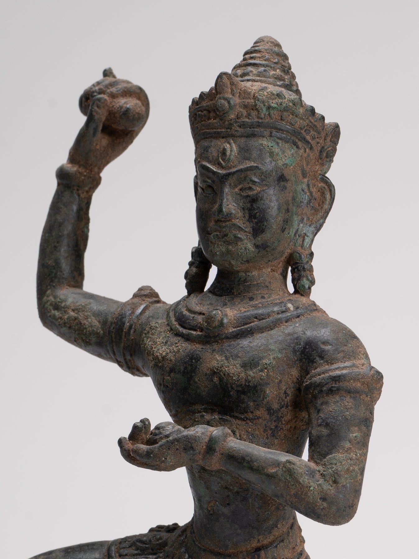 A delightful antique Khmer style bronze Apsara or Heavenly angel in 12th century Angkor Wat style.