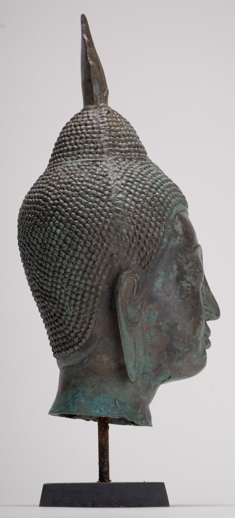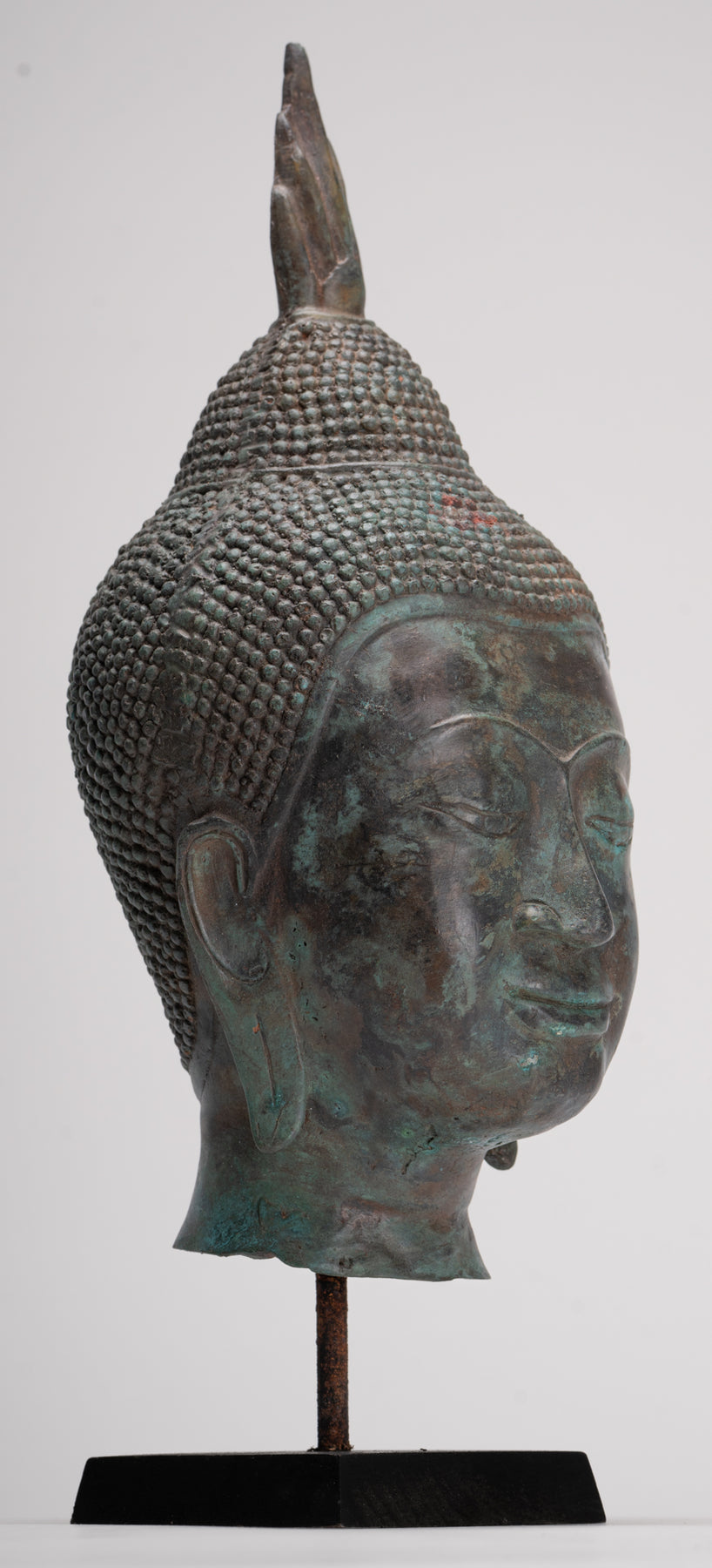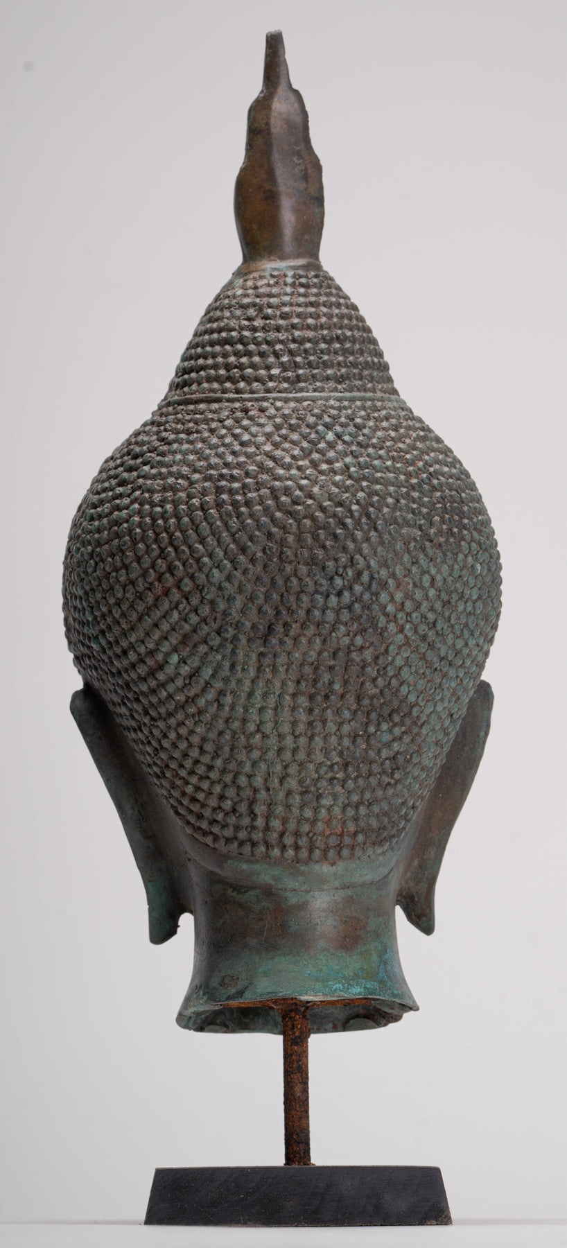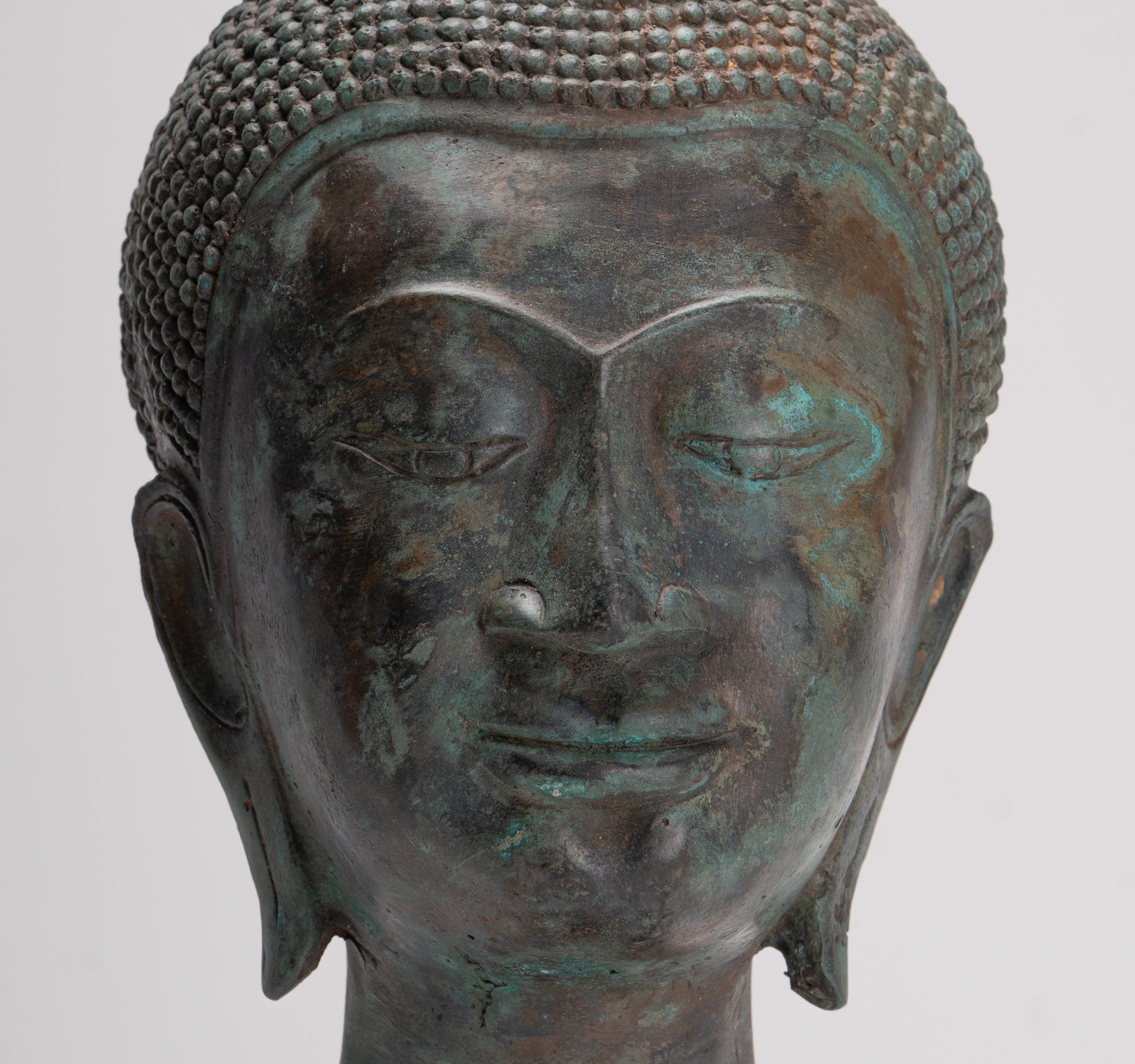 • Buddha Head - Antique Thai Style Sukhothai Mounted Bronze Buddha Head - 39cm/16"