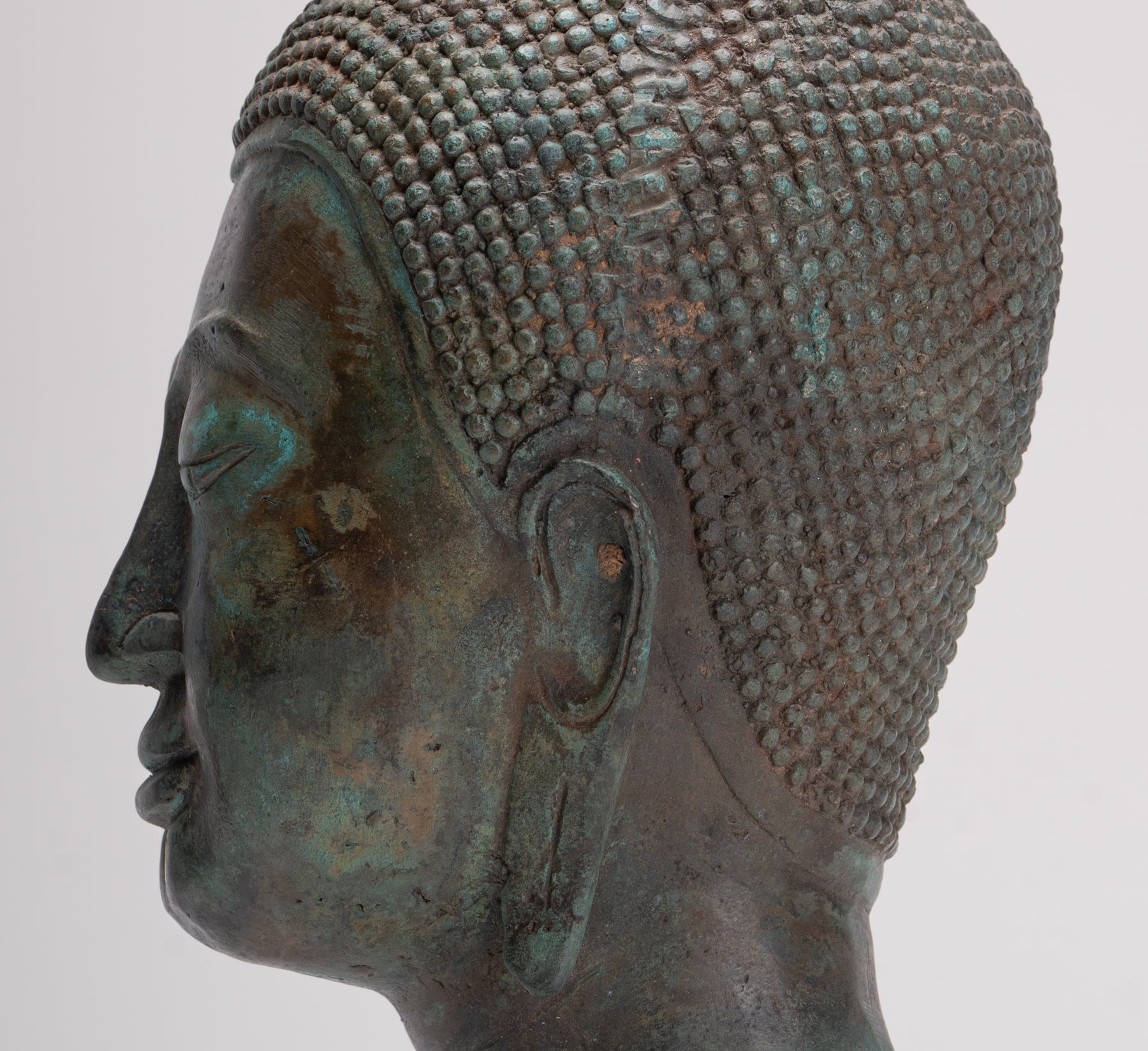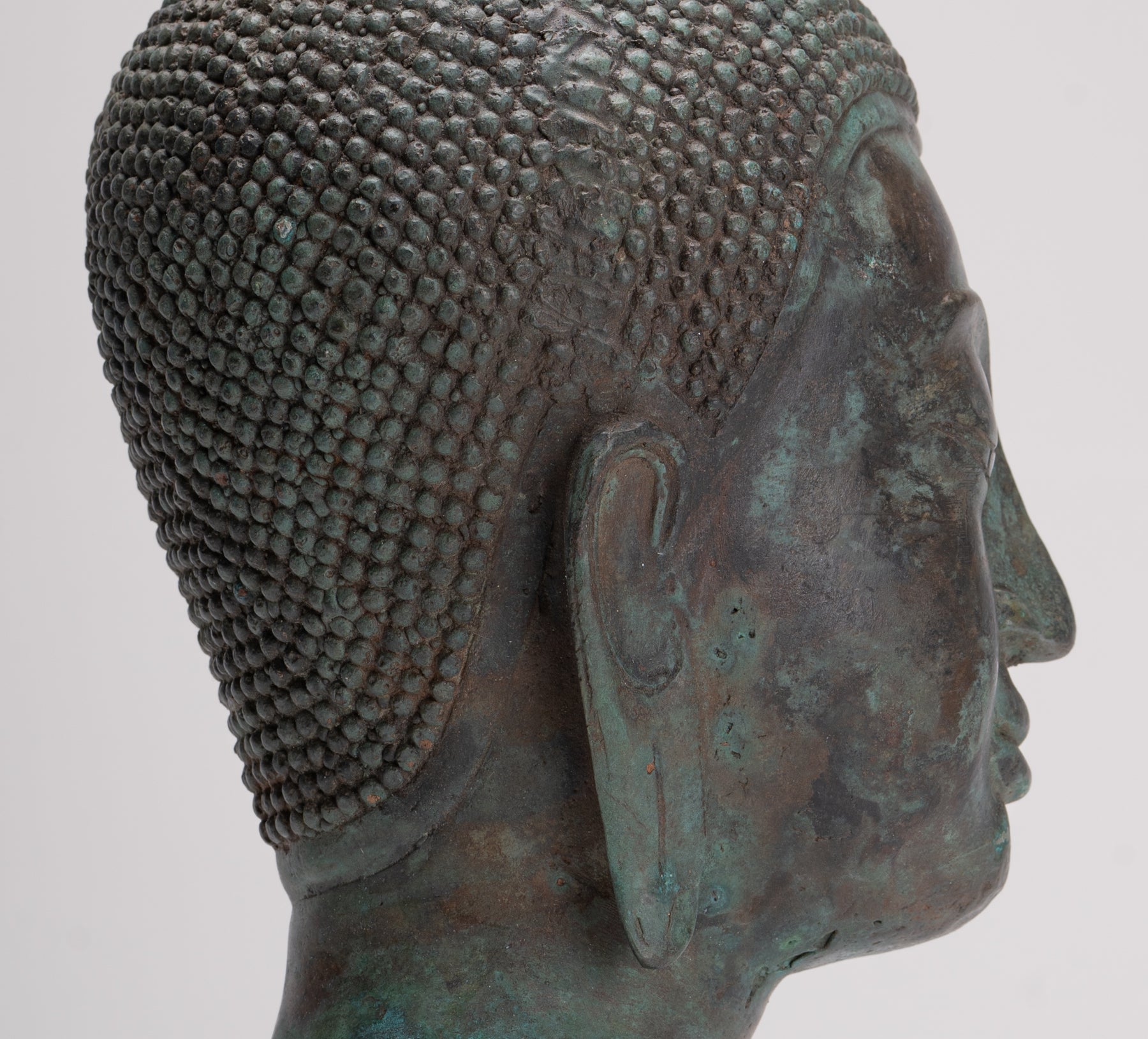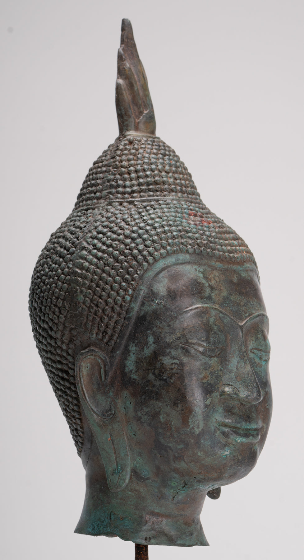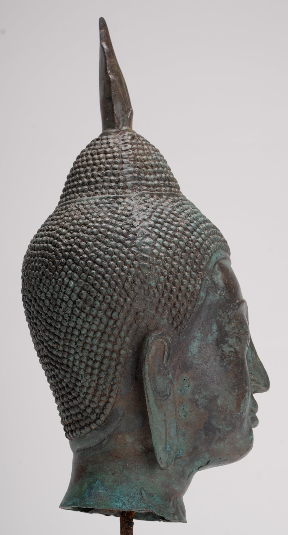 • Buddha Head - Antique Thai Style Sukhothai Mounted Bronze Buddha Head - 39cm/16"