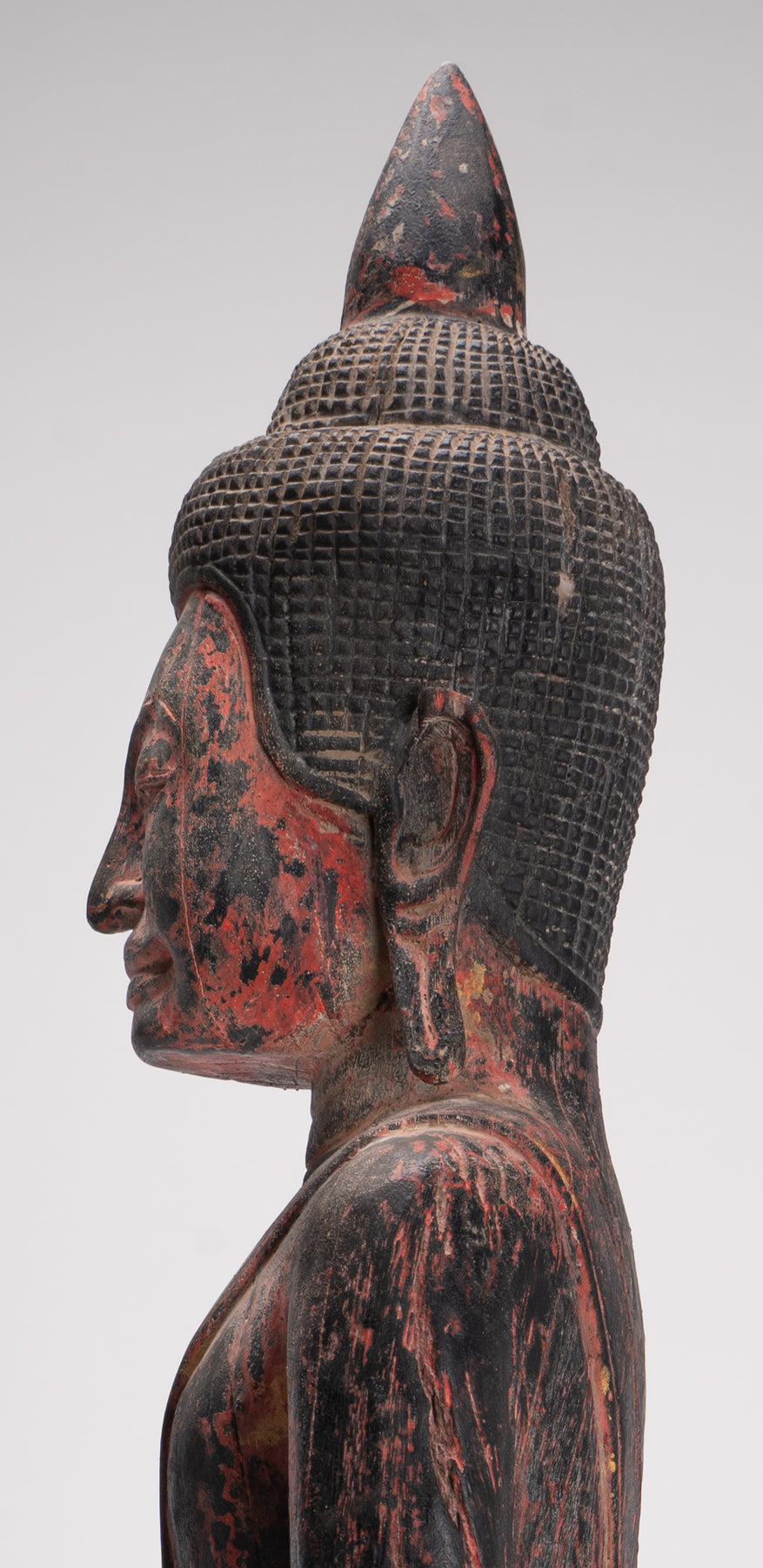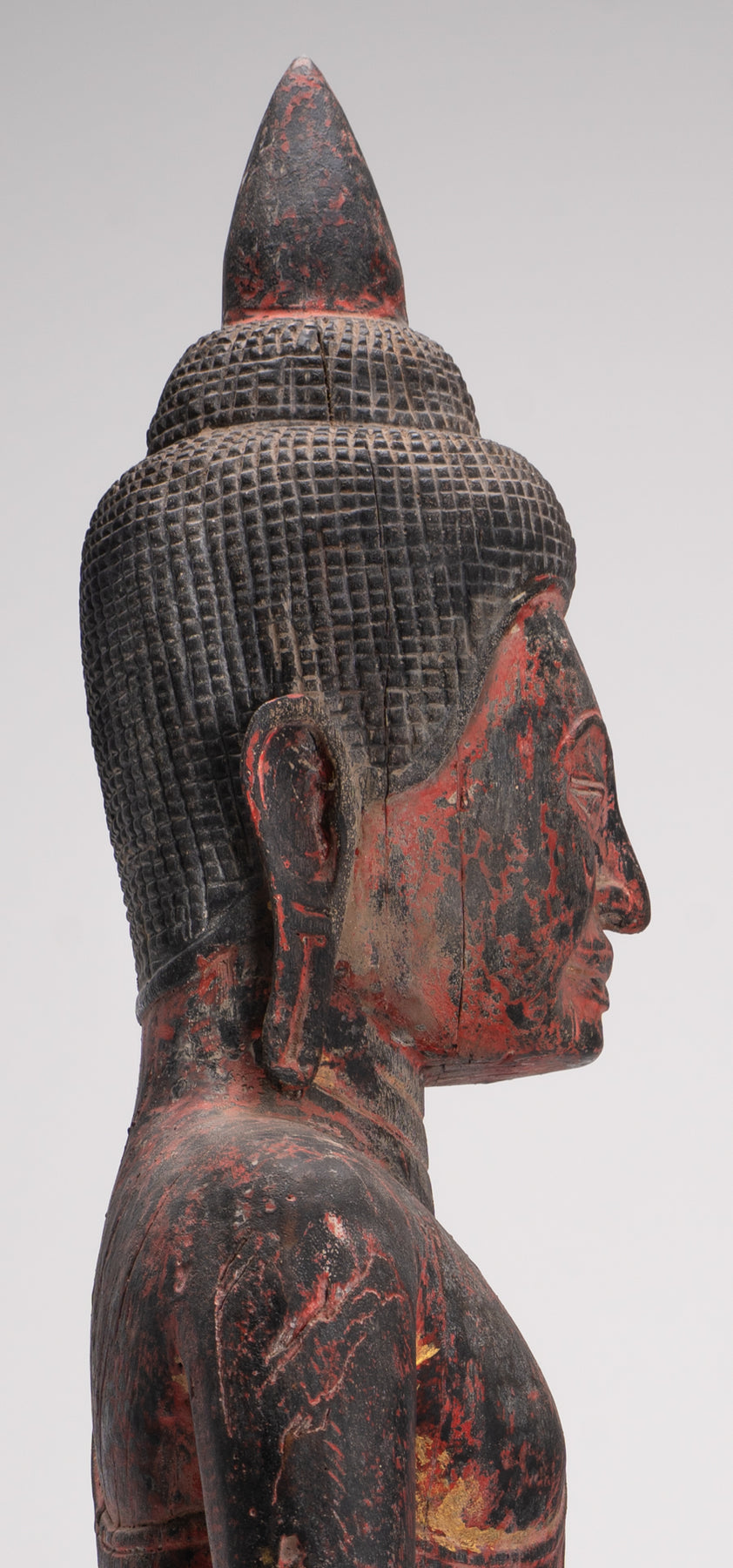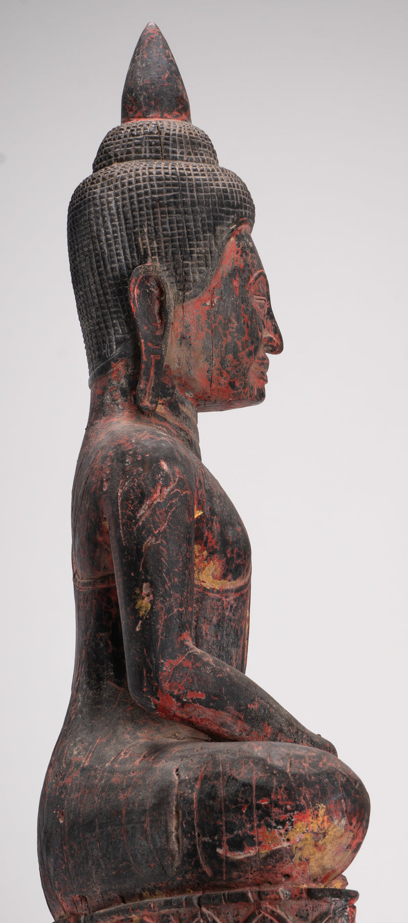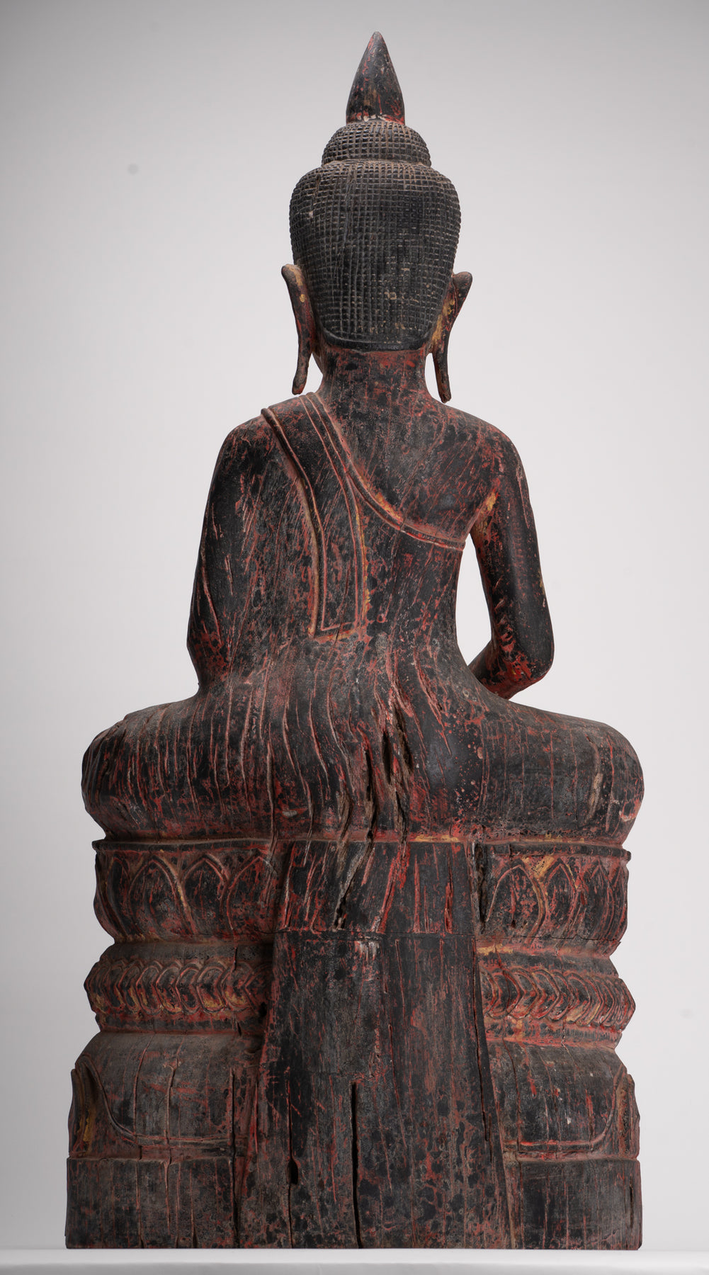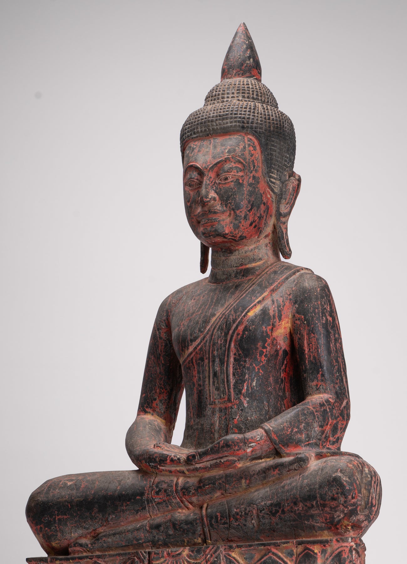 Antique Khmer Style SE Asia Seated Wood Meditation Buddha Statue - 85cm/34"