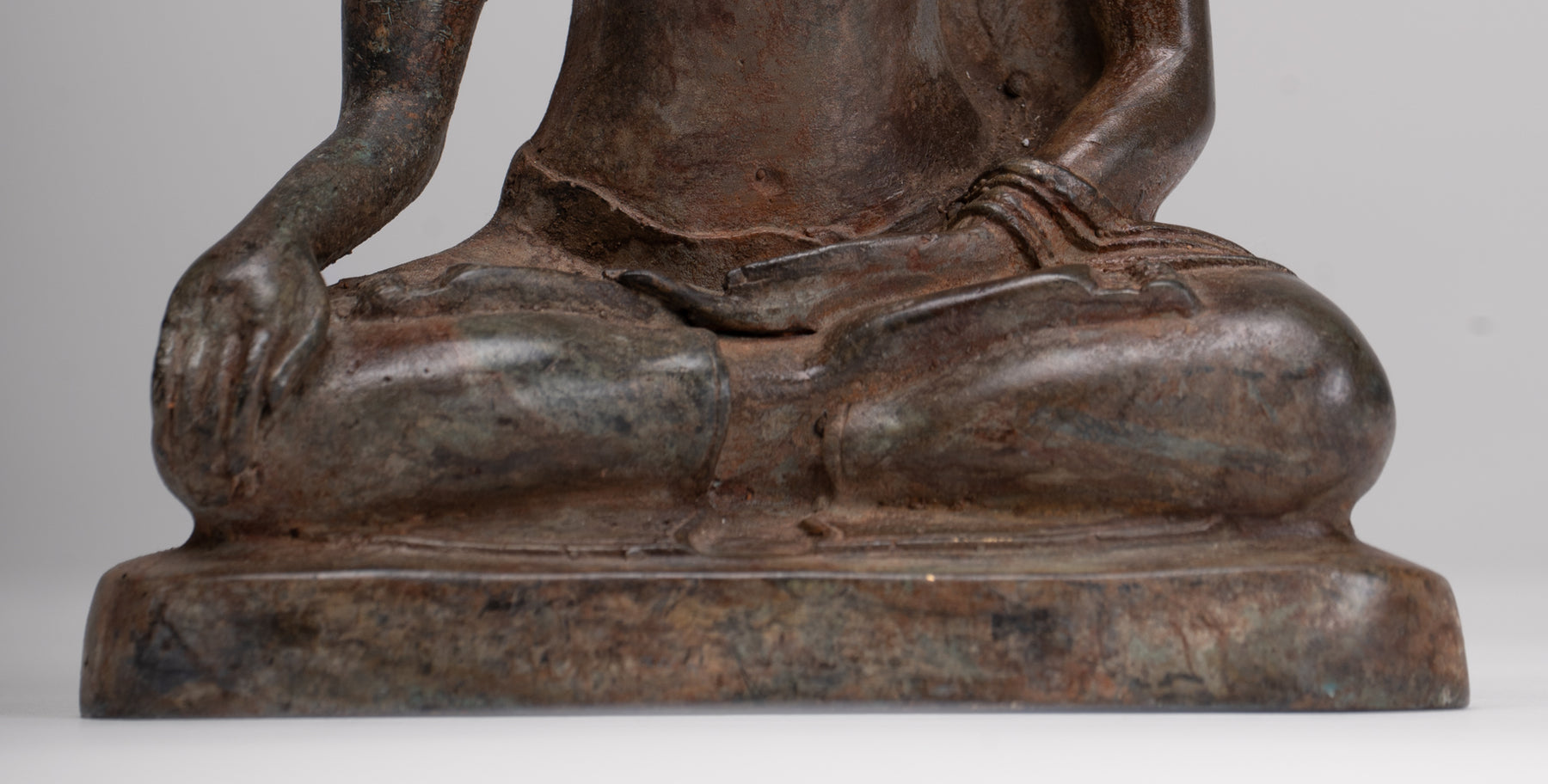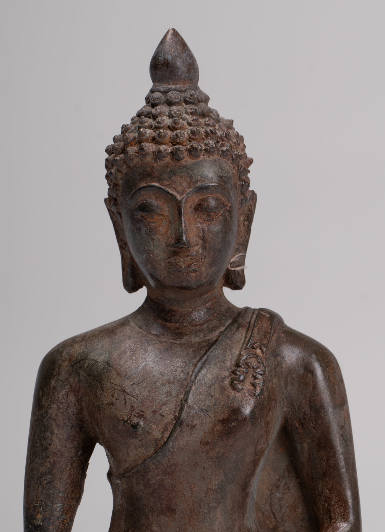 Antique Thai Style Bronze Chiang Saen Enlightenment Buddha Statue - 18cm/7"