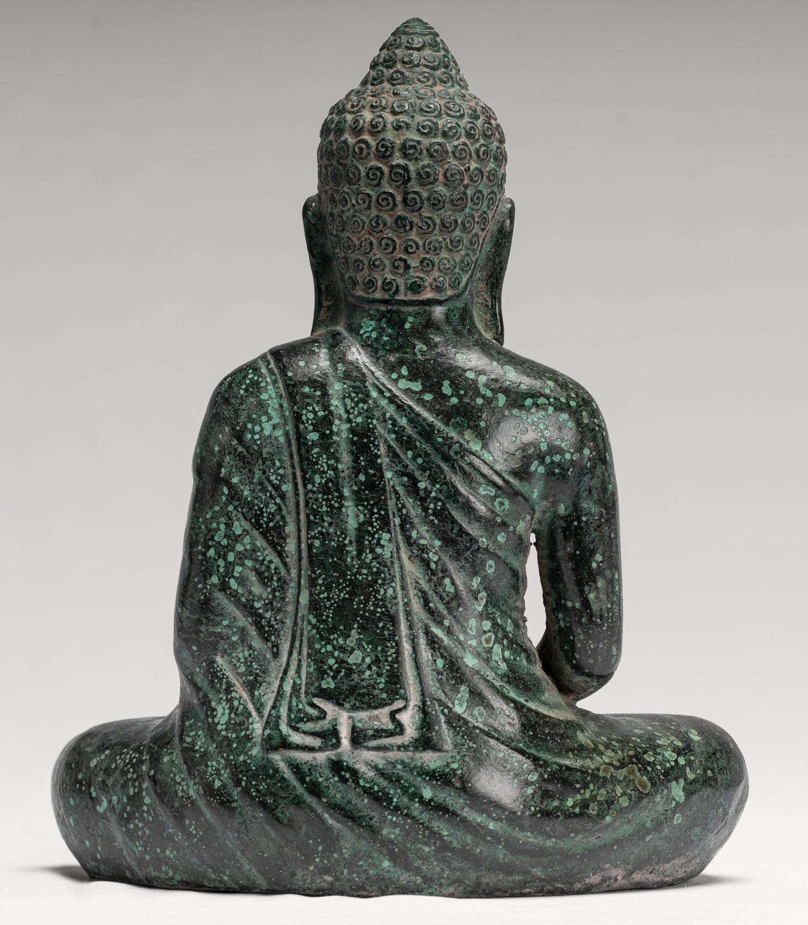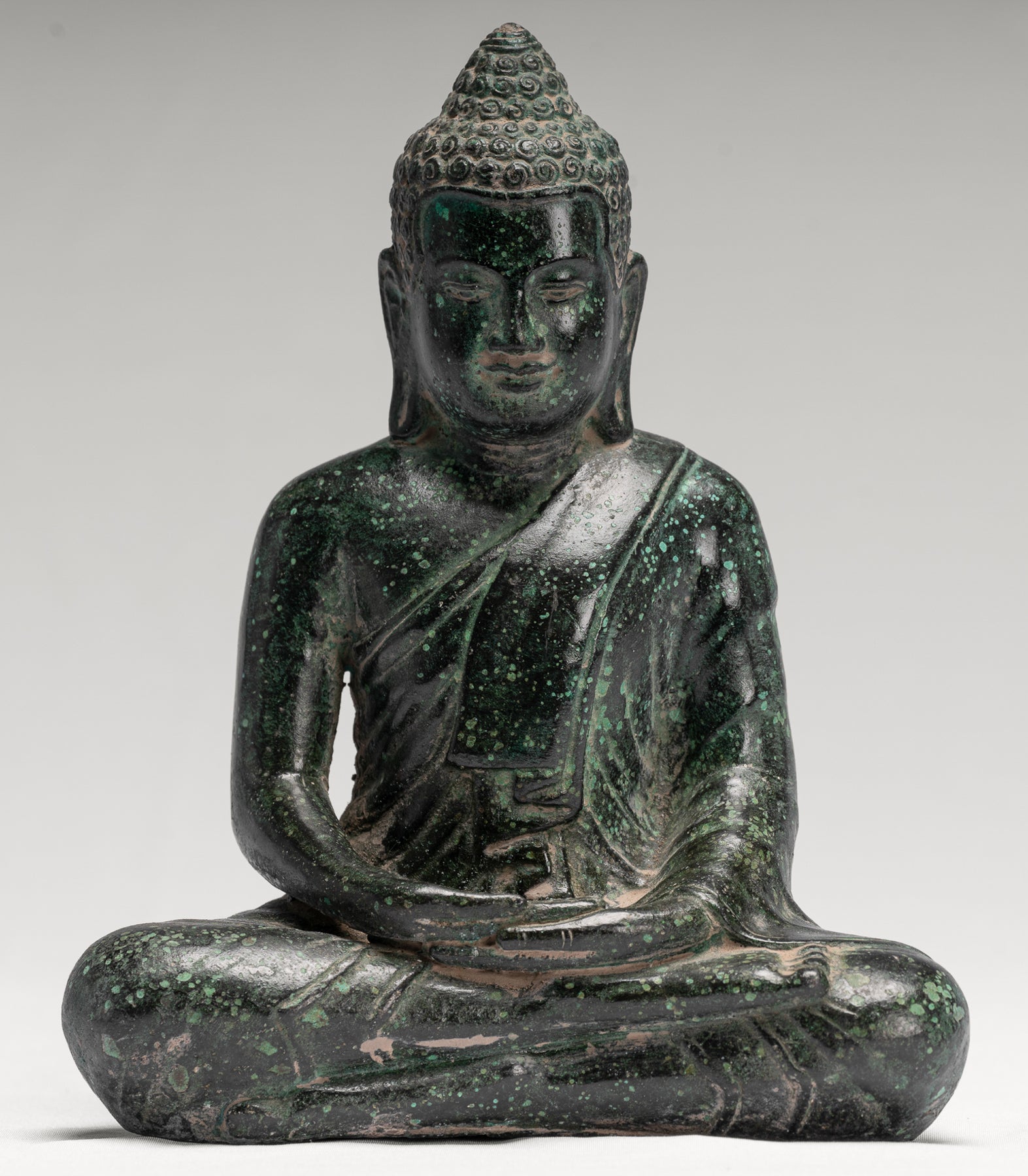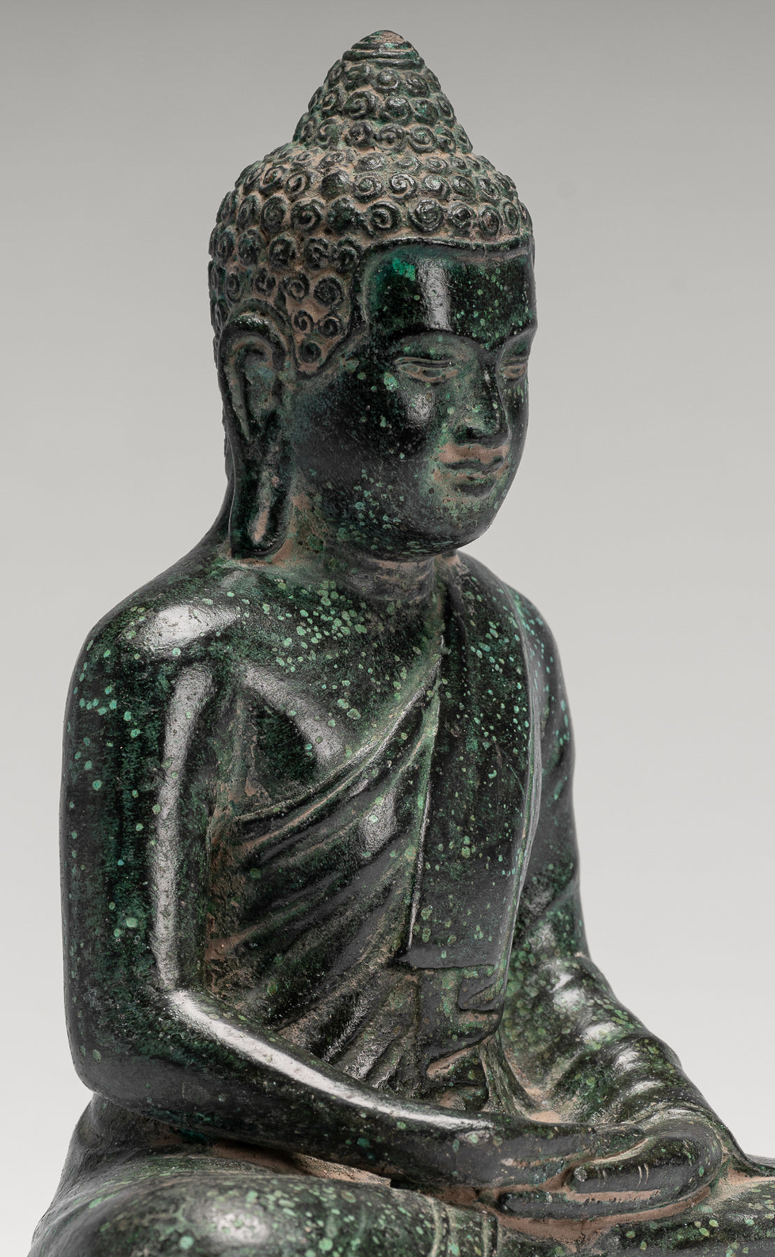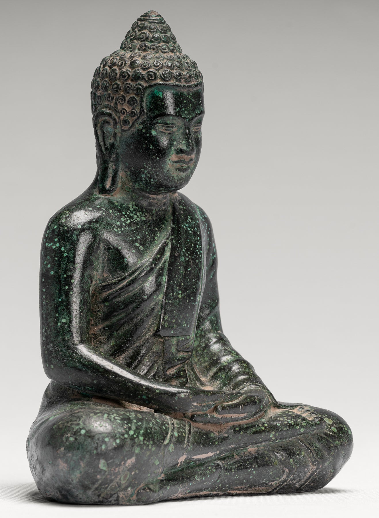 Antique Khmer Style Seated Bronze Buddha Statue Meditation Mudra 19cm/8"