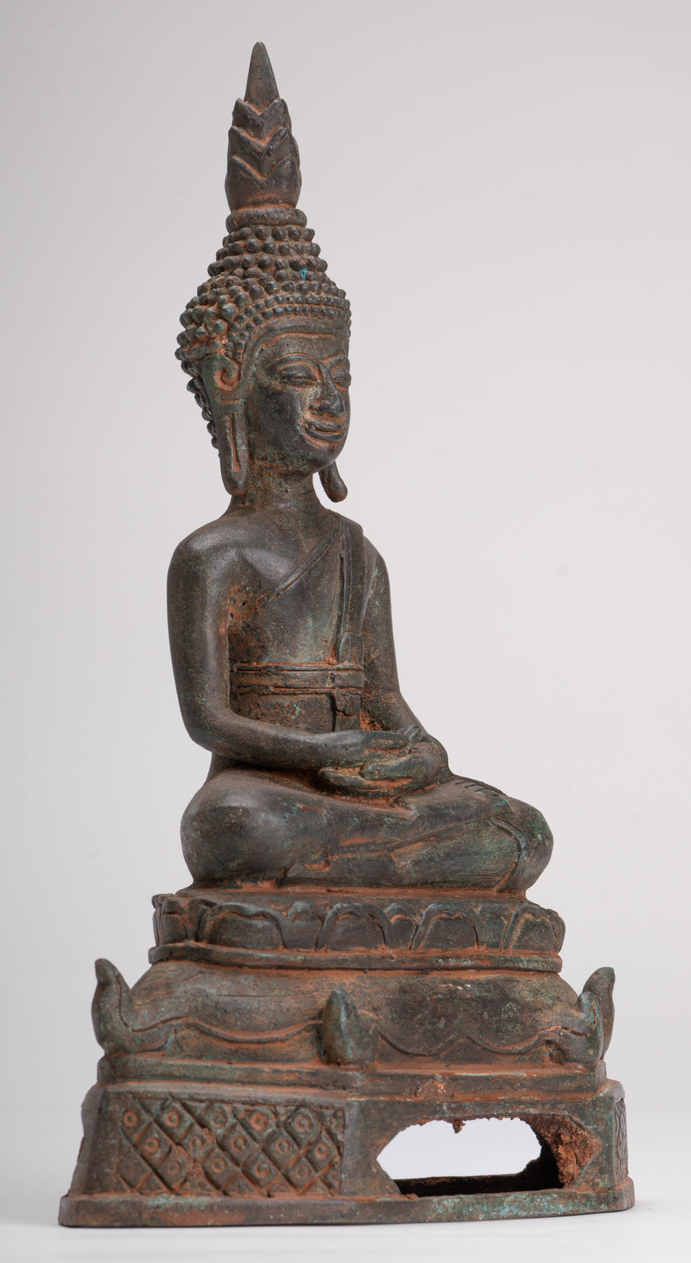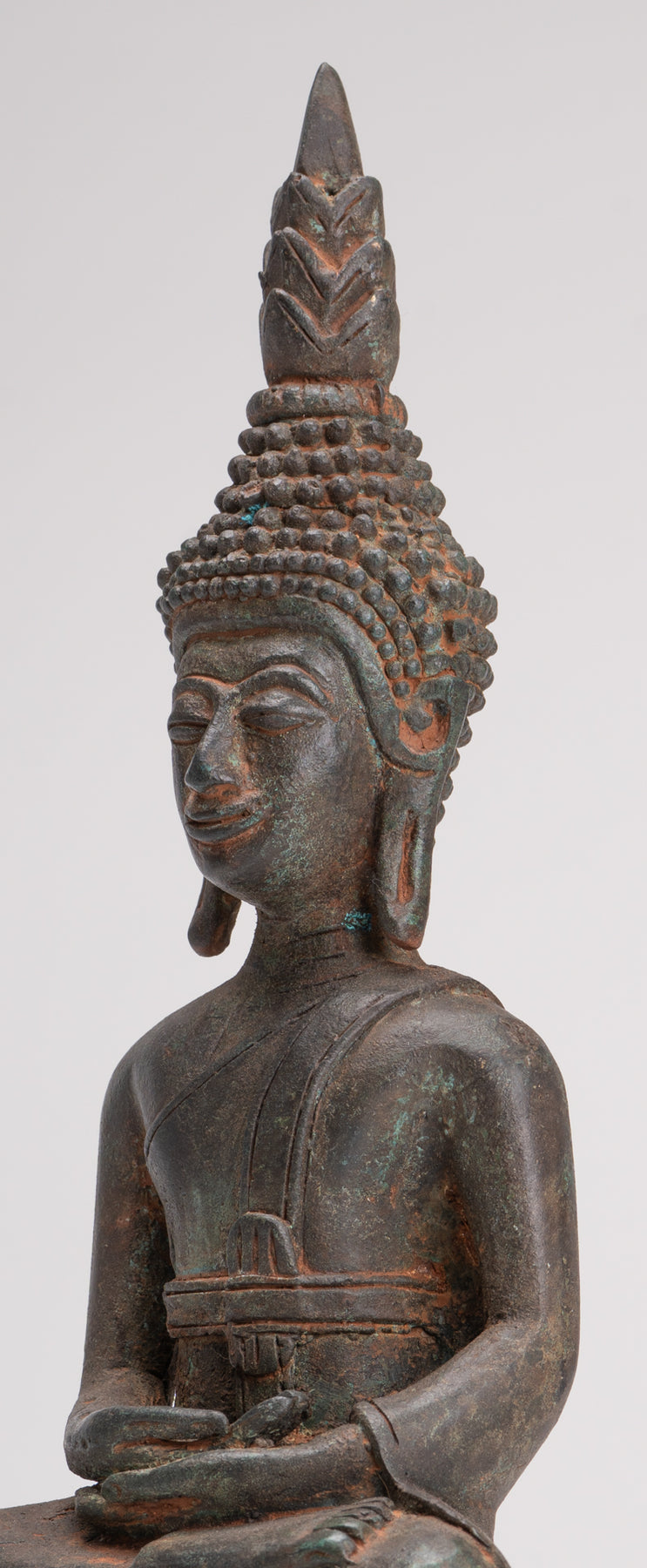 A delightful seated bronze antique Laos style Buddha Shakyamuni.