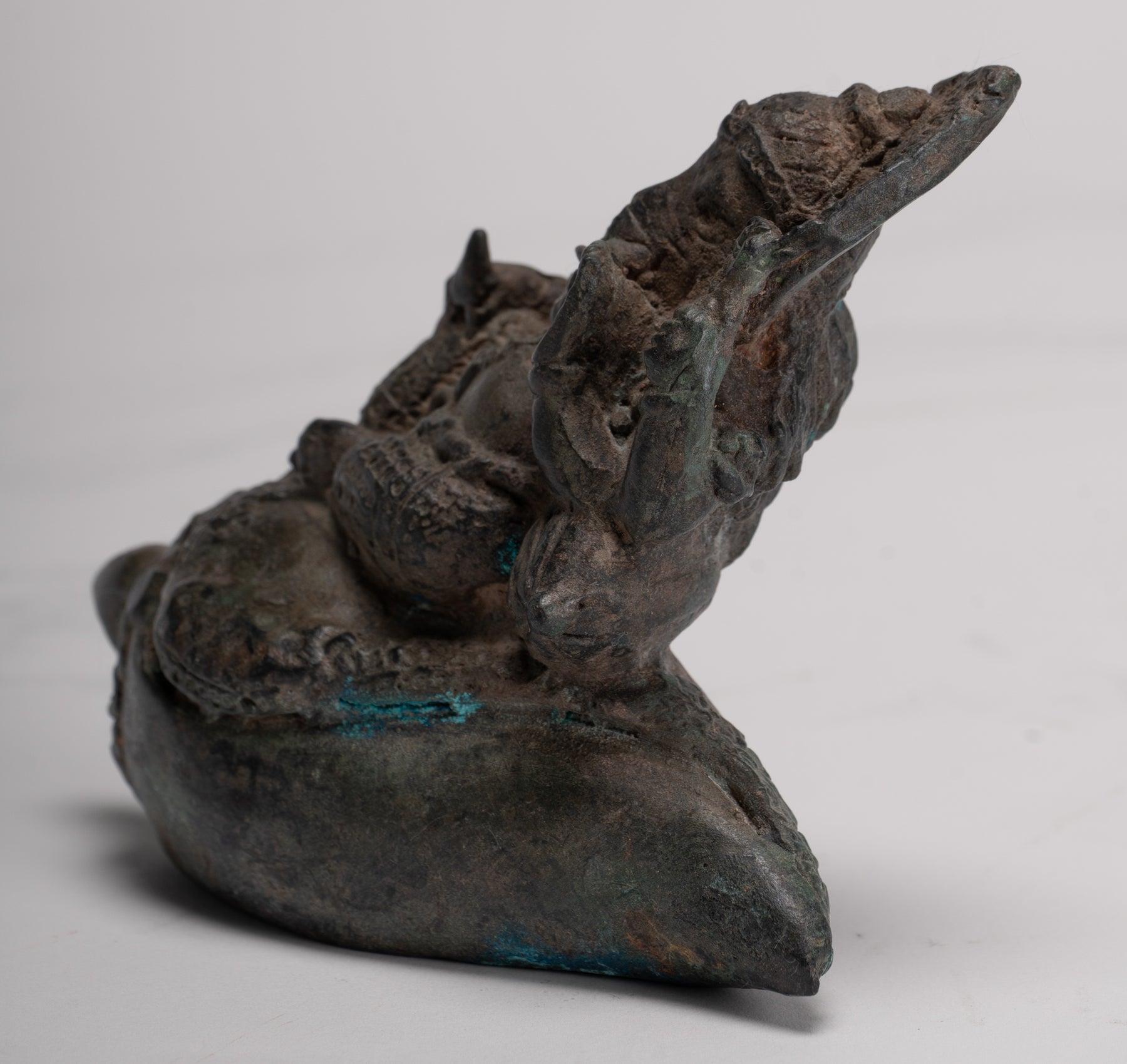 An antique Thai style bronze Ganesha seated on a conch shell.