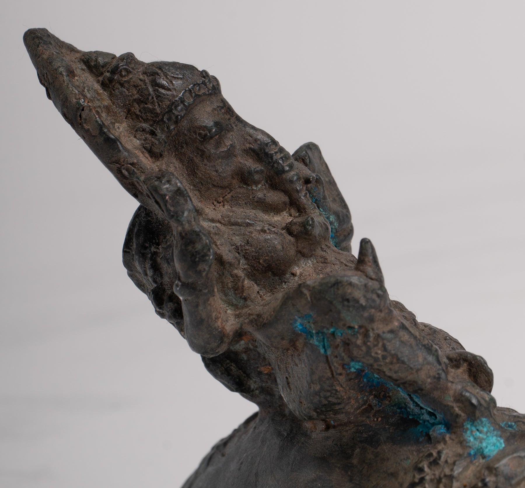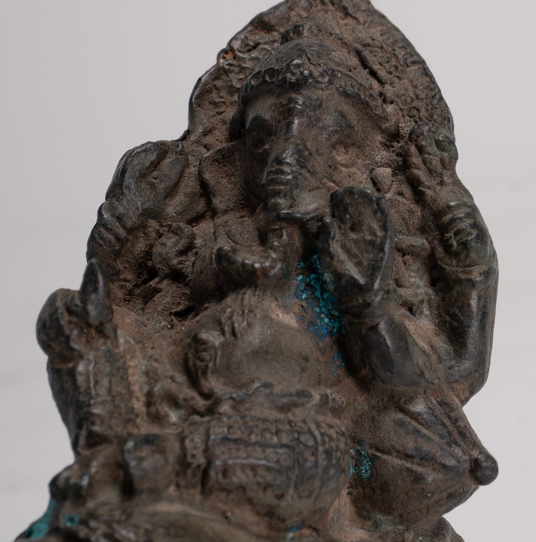 Ganesha Statue - Antique Thai Style Bronze Ganesha Statue Playing Flute - 10cm/4"