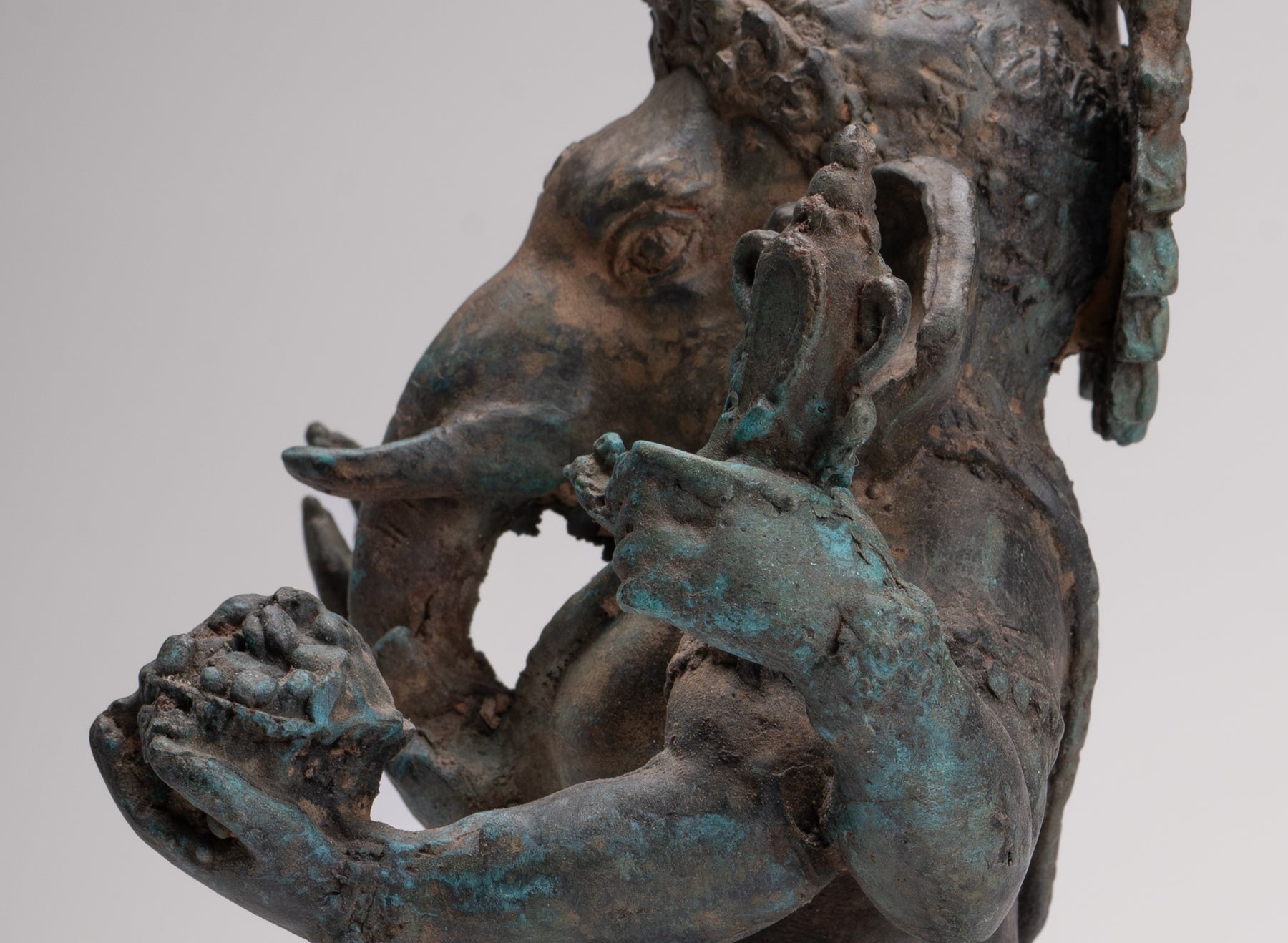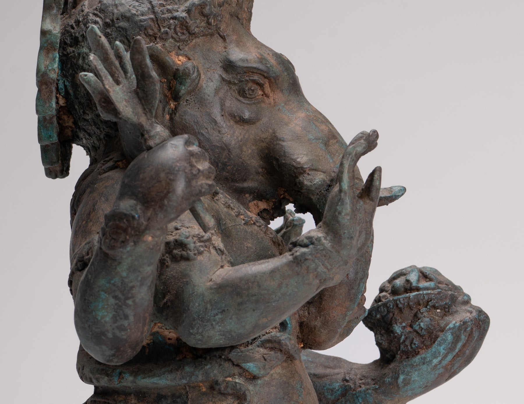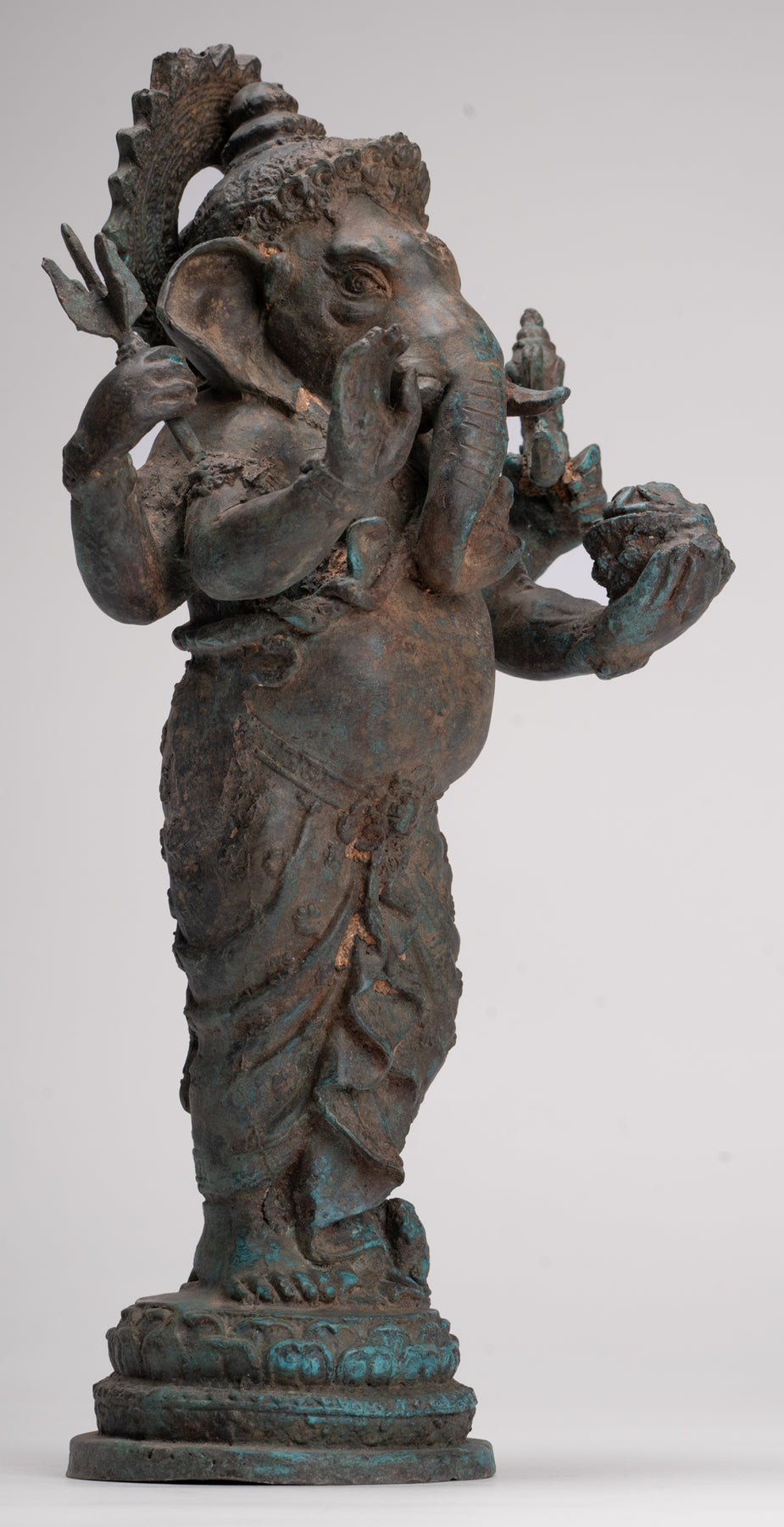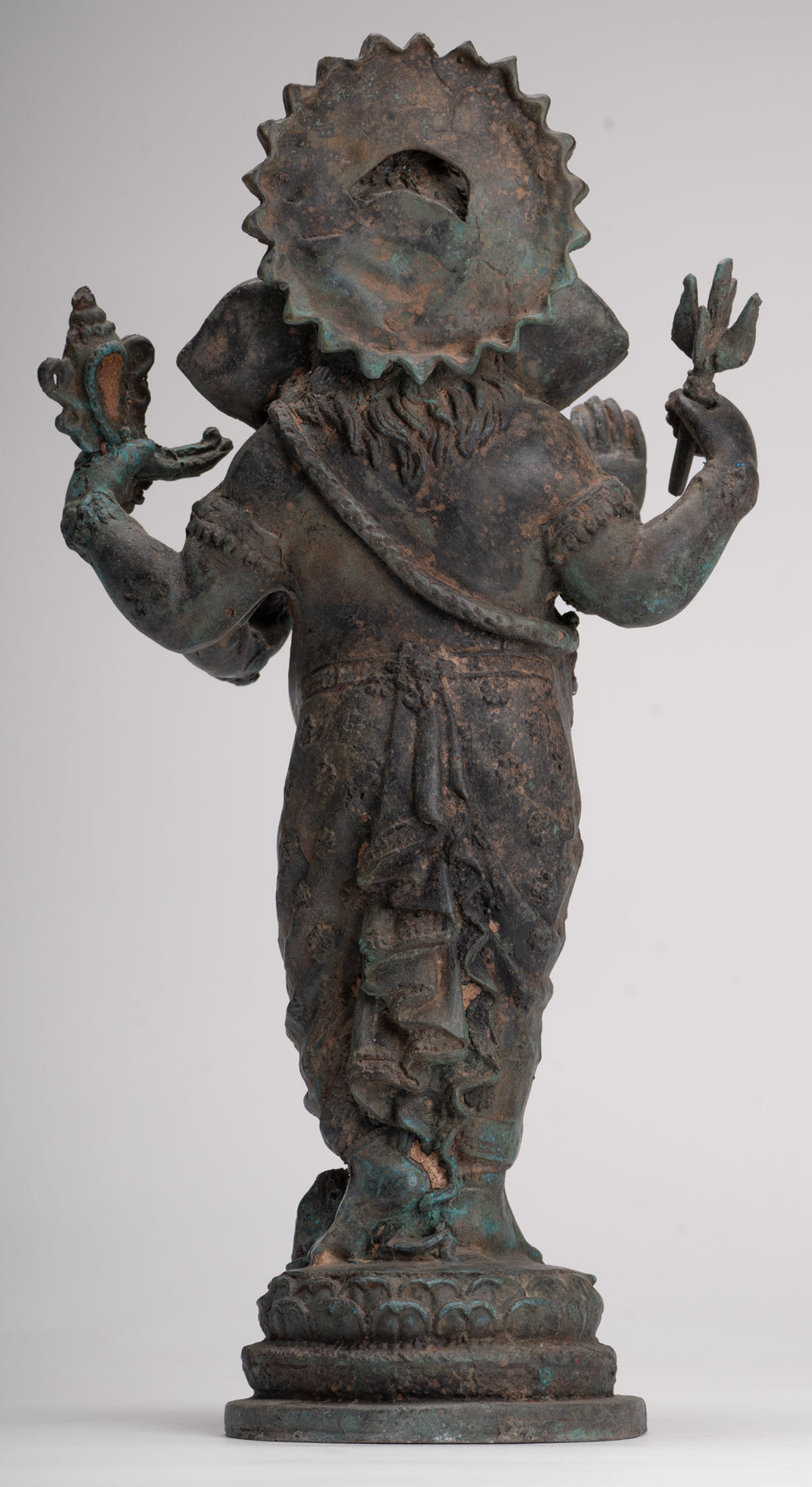 Antique Thai Style Bronze Standing 4-Arm Ganesha Statue - 35cm/14"