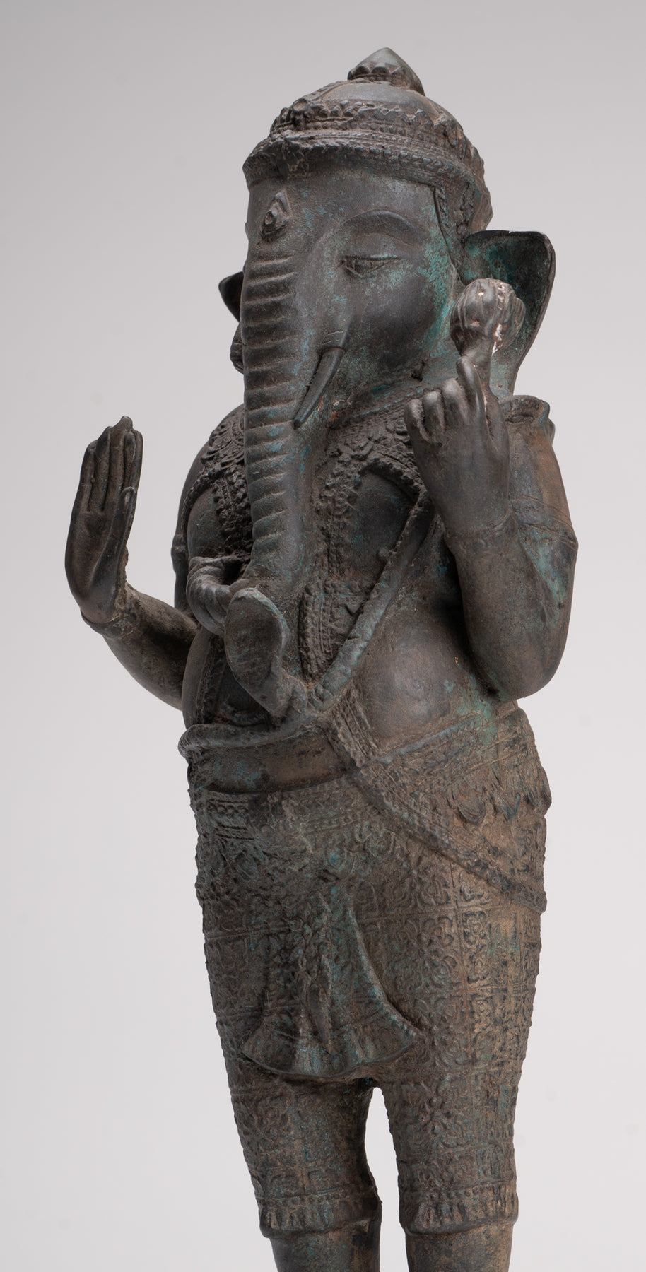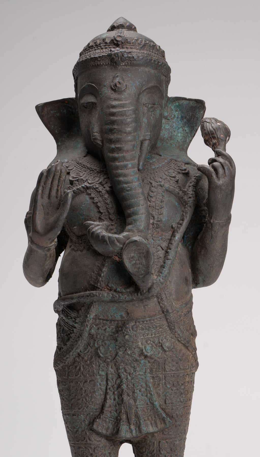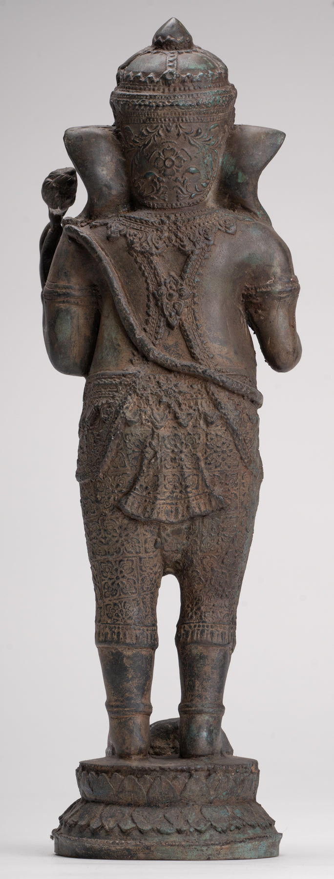 Antique Thai Style Bronze Standing 2-Arm Ganesha Statue - 38cm/15"