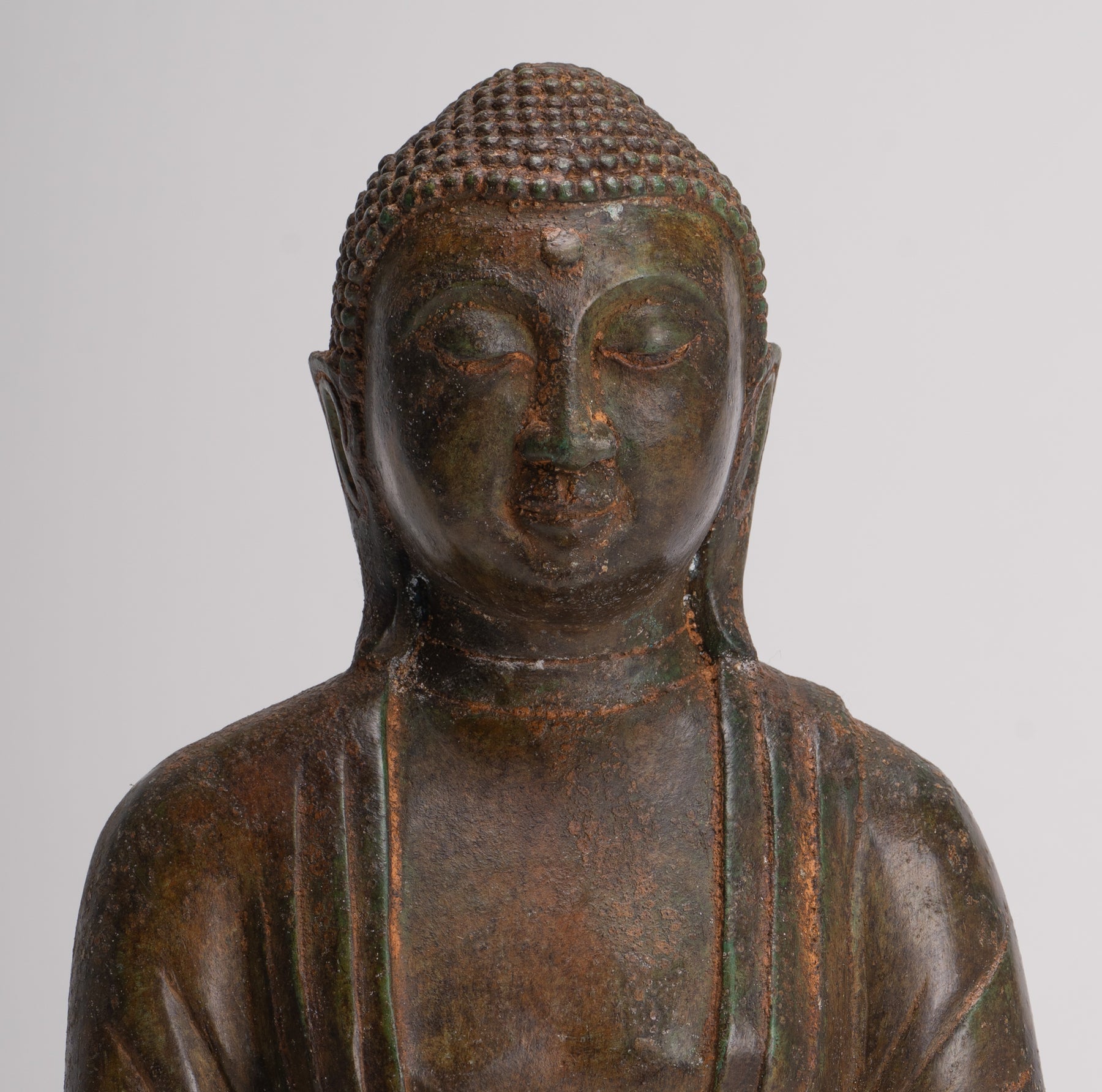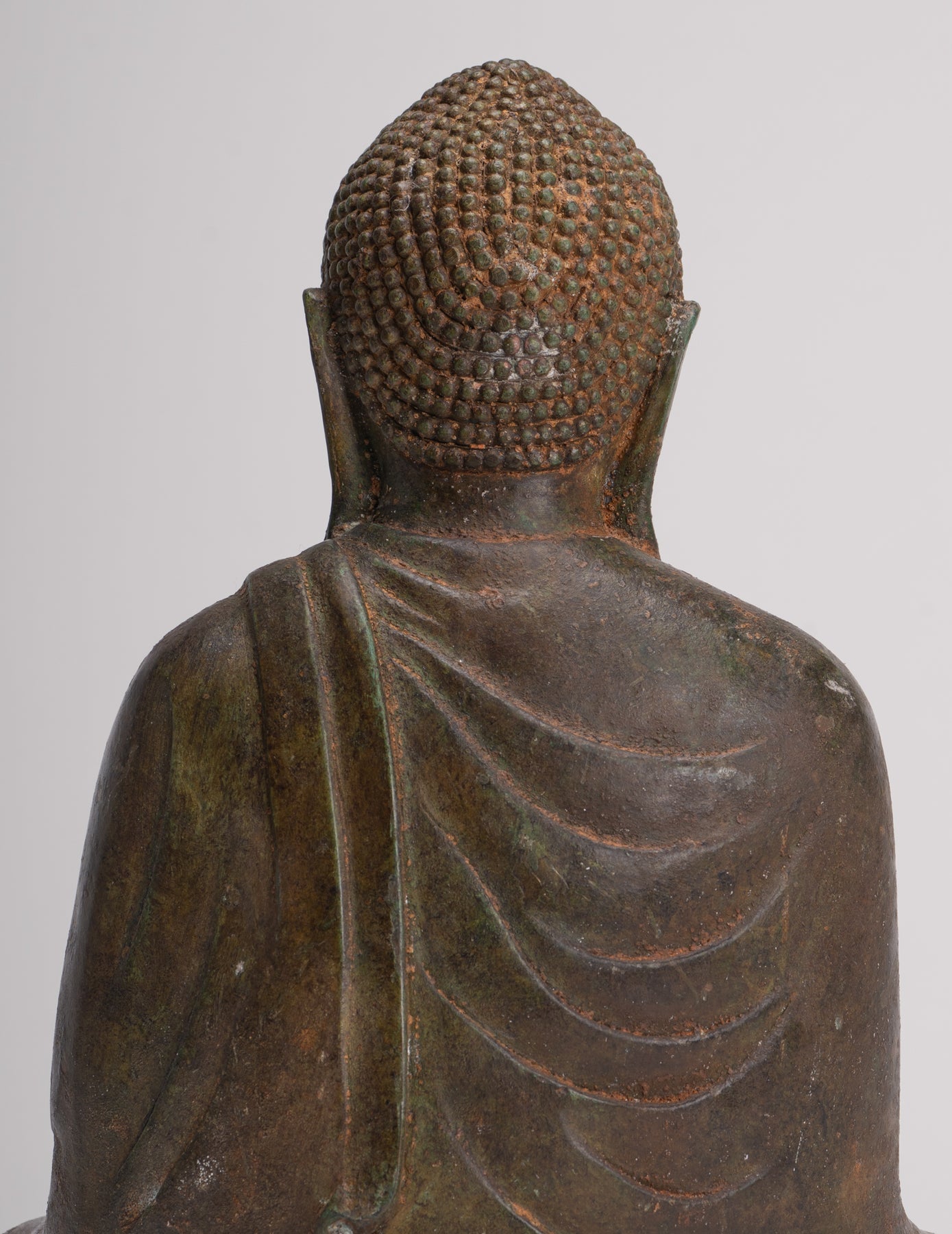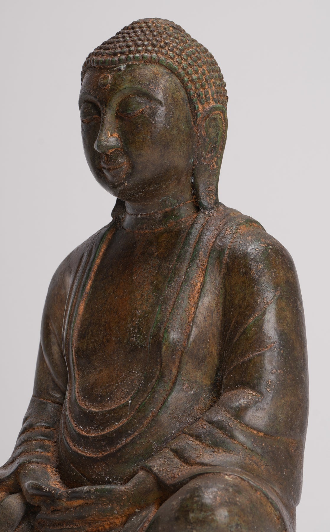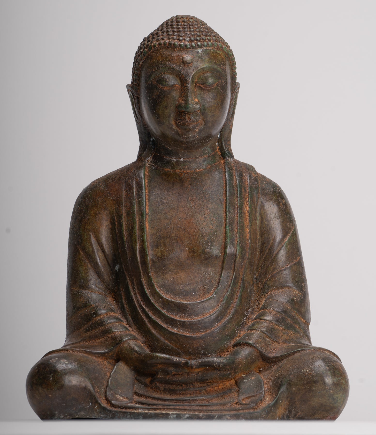 Antique Japanese Style Seated Bronze Meditation Amitabha Buddha Statue - 30cm/12"
