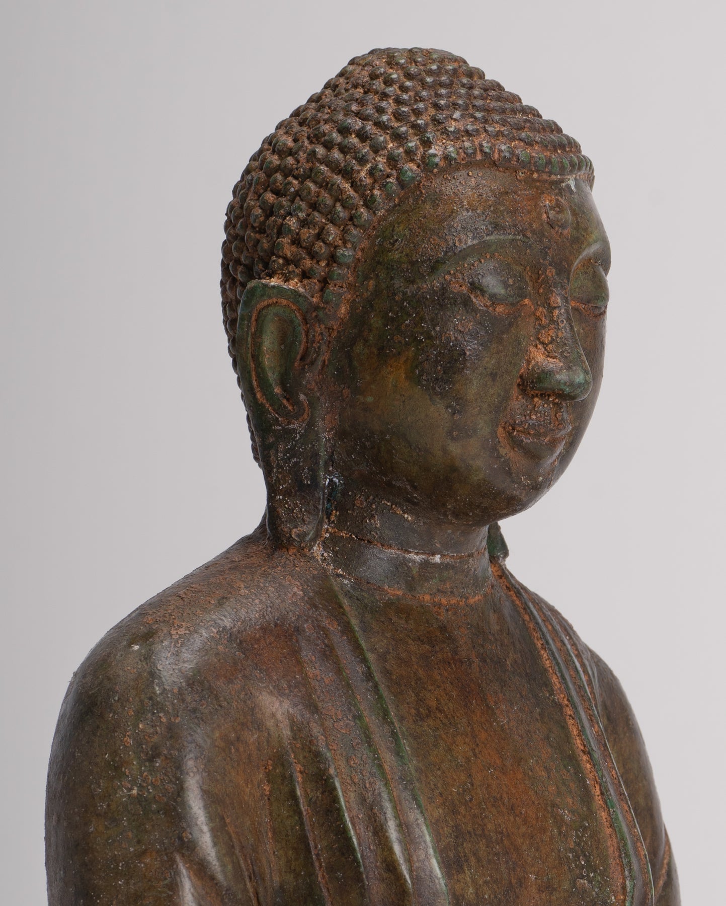 The patina and details of this piece are particularly appealing. The sculpture provides the perfect Buddha to bring serenity and timeless style to your home, office or sacred space.