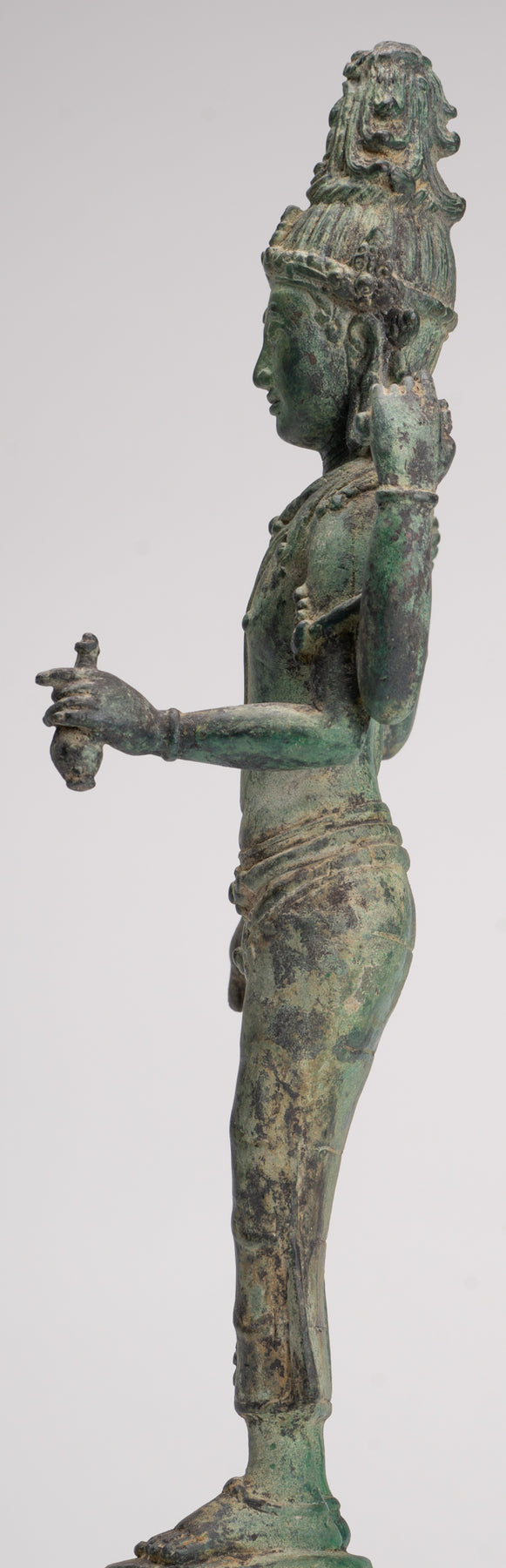 An antique Khmer style standing bronze Lokeshvara sculpture from Cambodia.