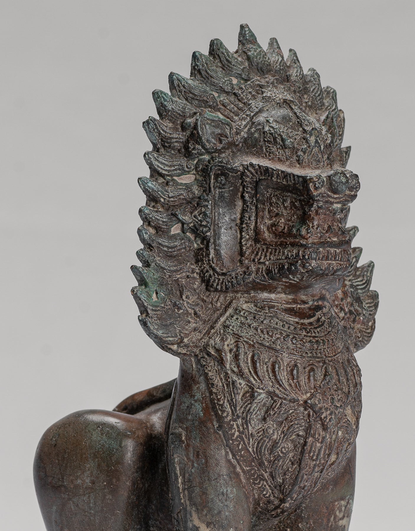 The Singha, a lion-like creature, is a common Thai Temple Guardian. With a regal mane and ferocious demeanor, Singha embodies strength and courage. Its presence symbolizes the guardian's ability to ward off malevolent forces and protect the temple from harm.