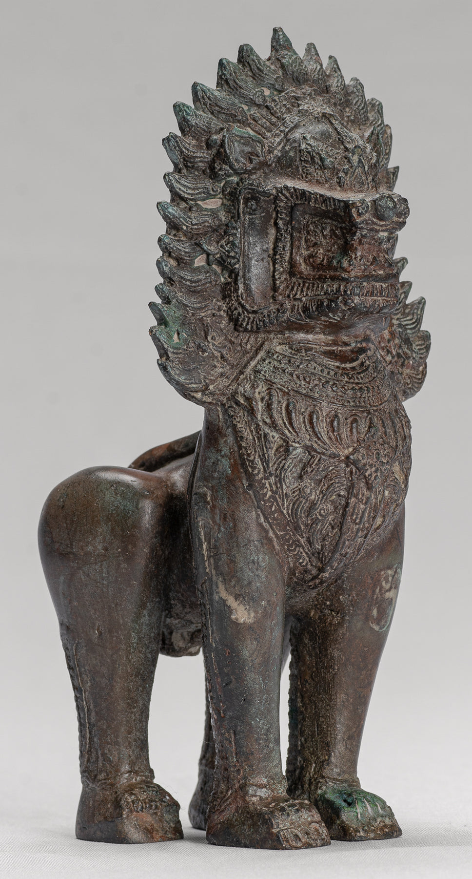 Temple Lion - Antique Thai Style Bronze Standing Singha Temple Guardian or Lion - 19cm/8"