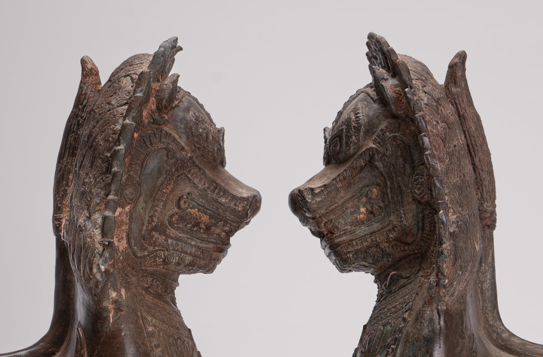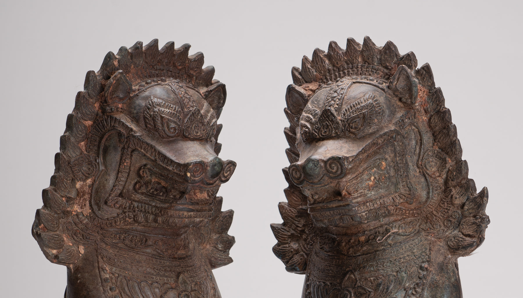 A lovely antique Thai style pair of Temple Guardian or Lion/Singha figures.