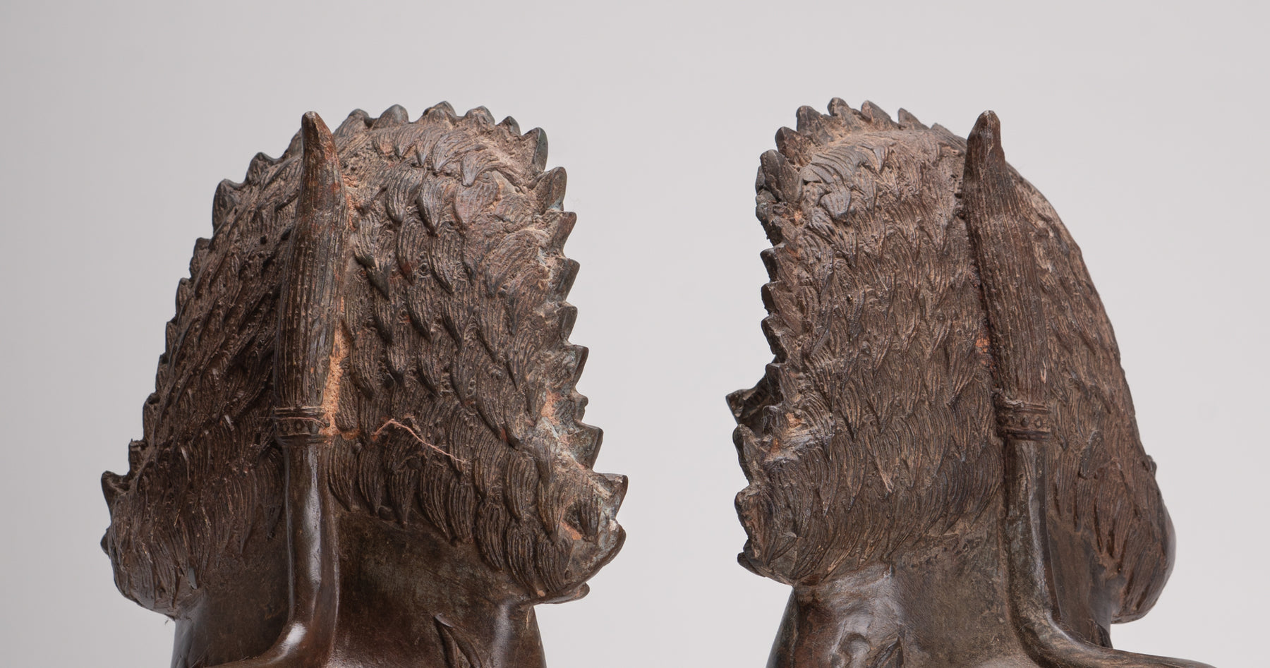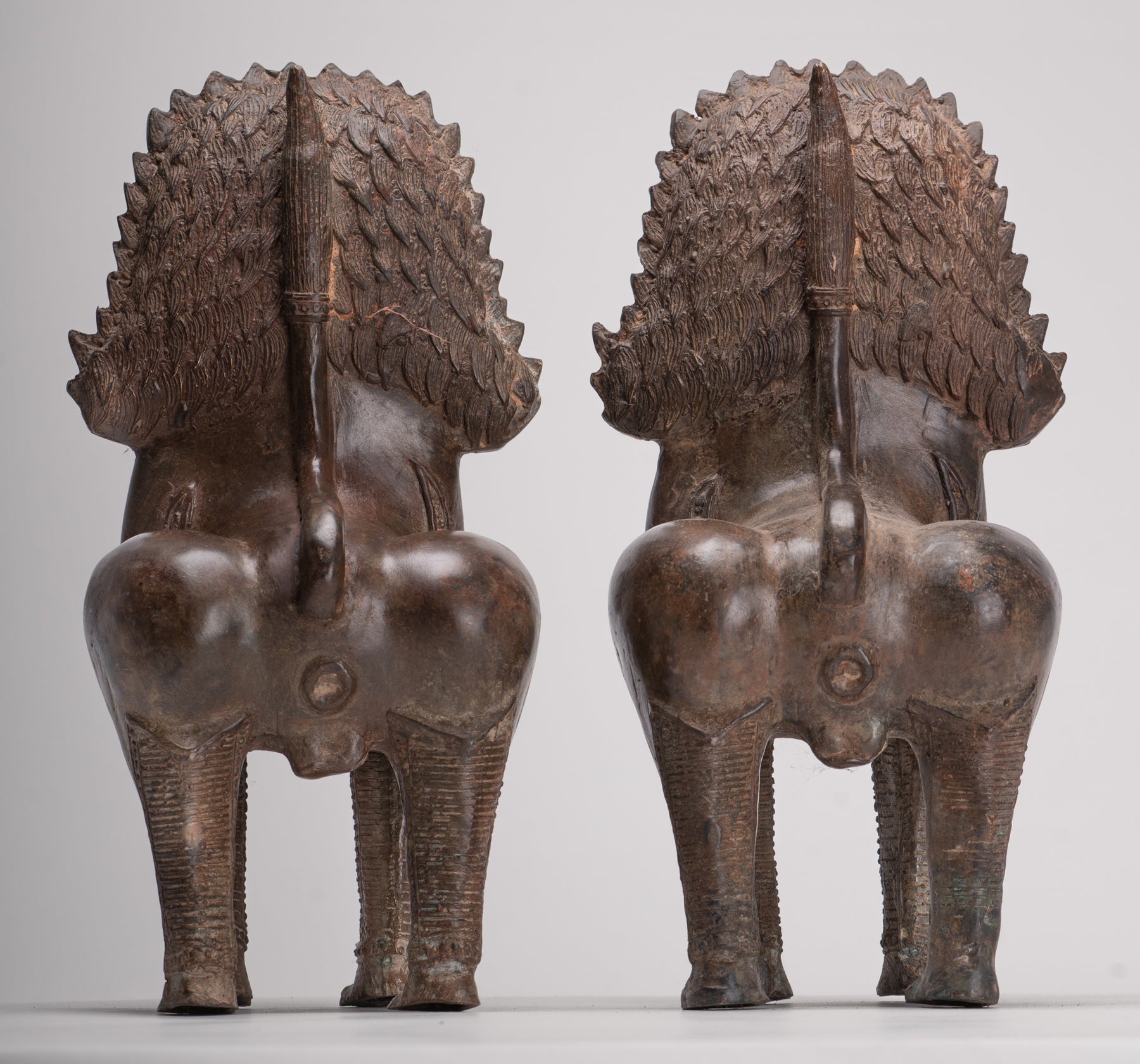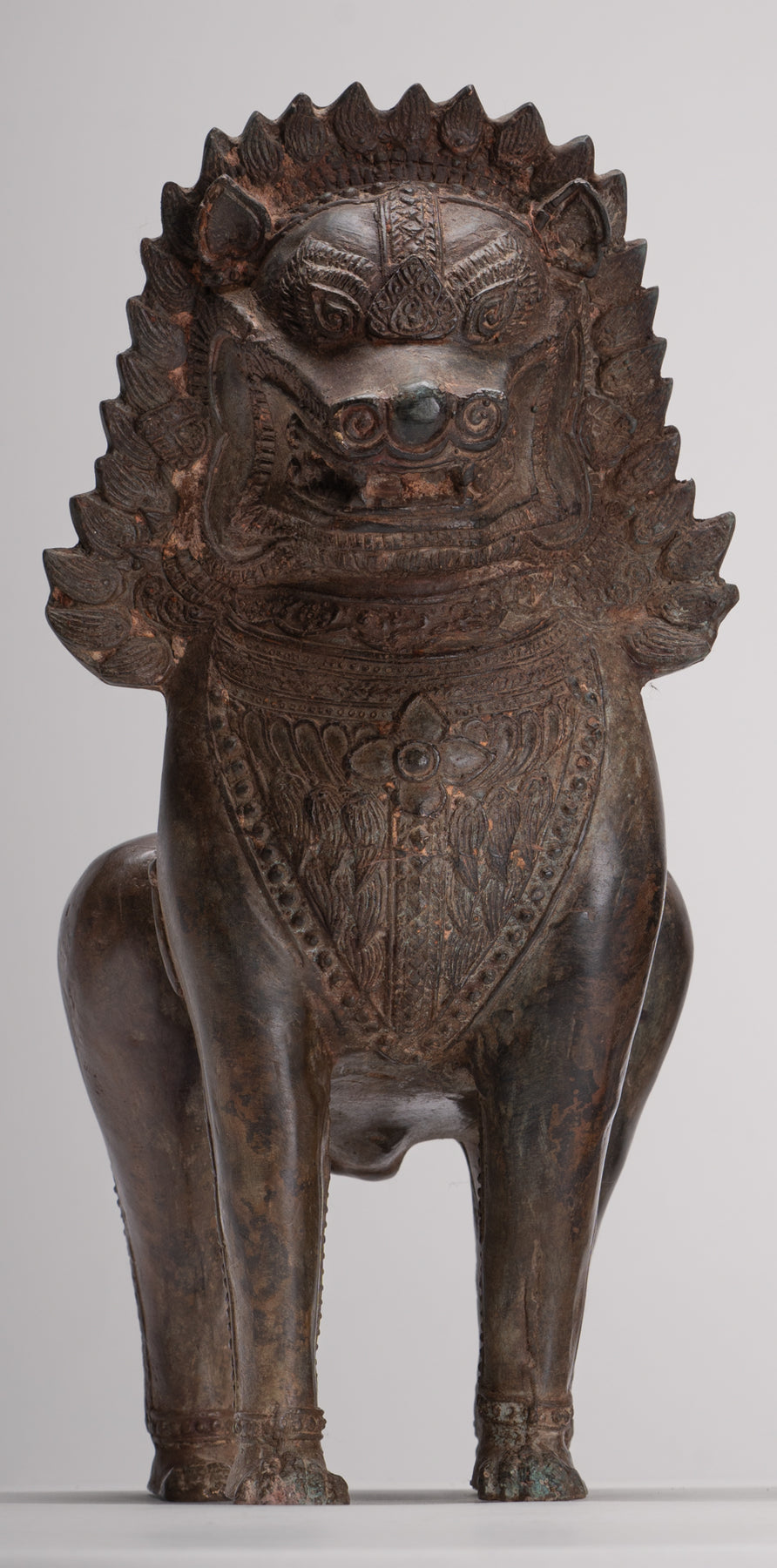 Temple Lion - Antique Thai Style Bronze Standing Singha Temple Guardians or Lions - 31cm/12" (Pair)