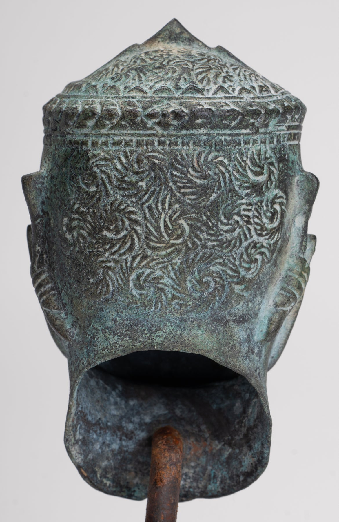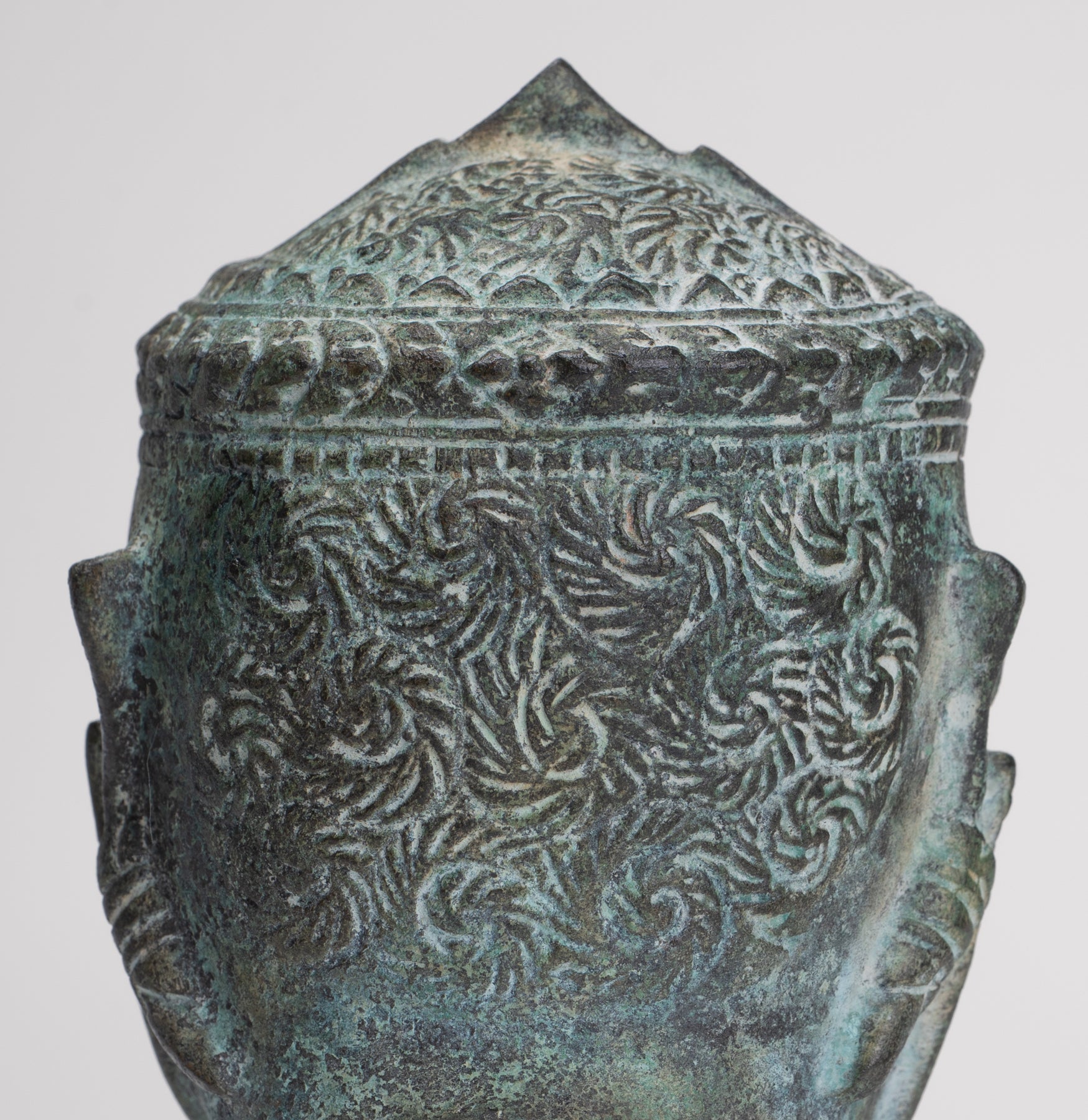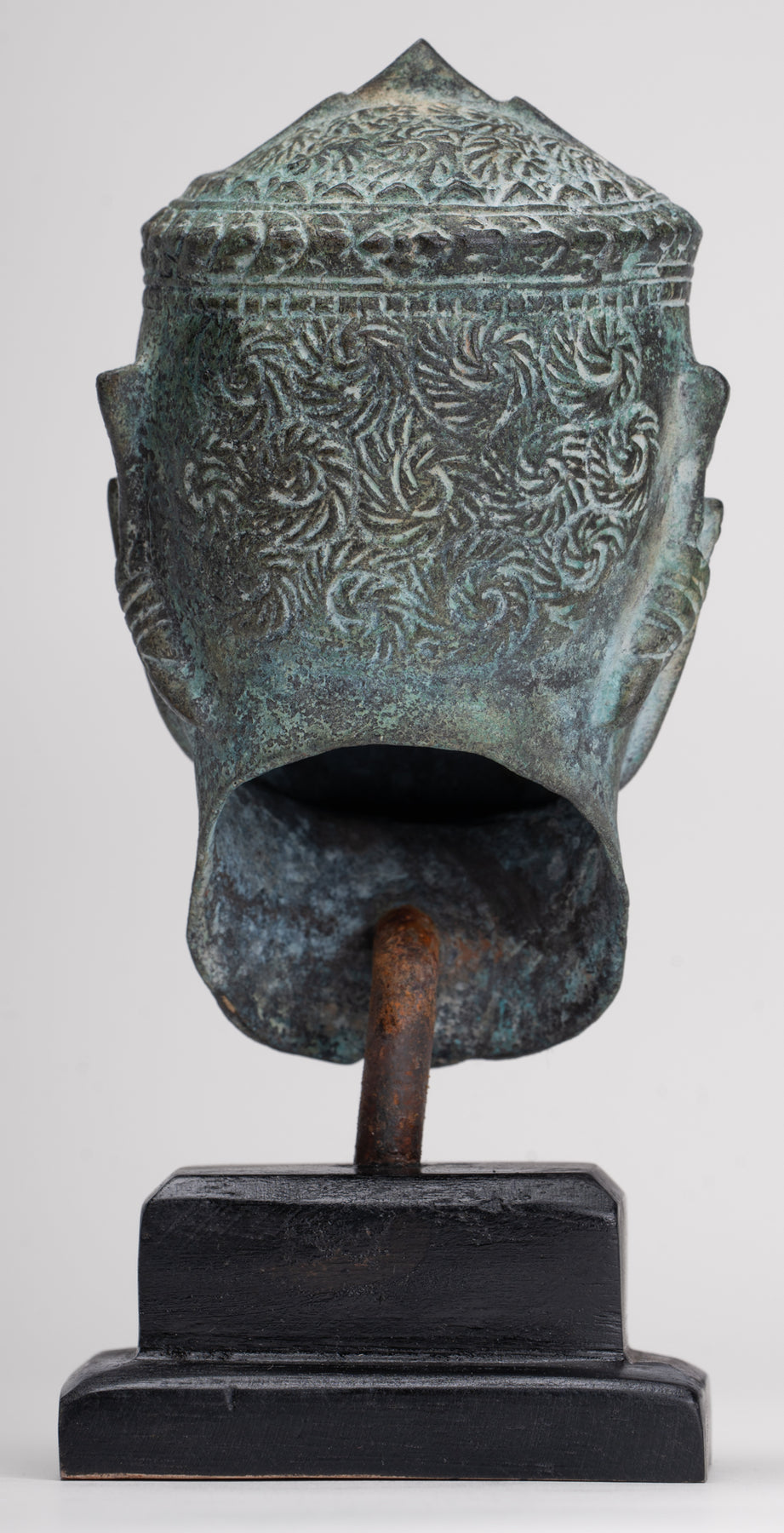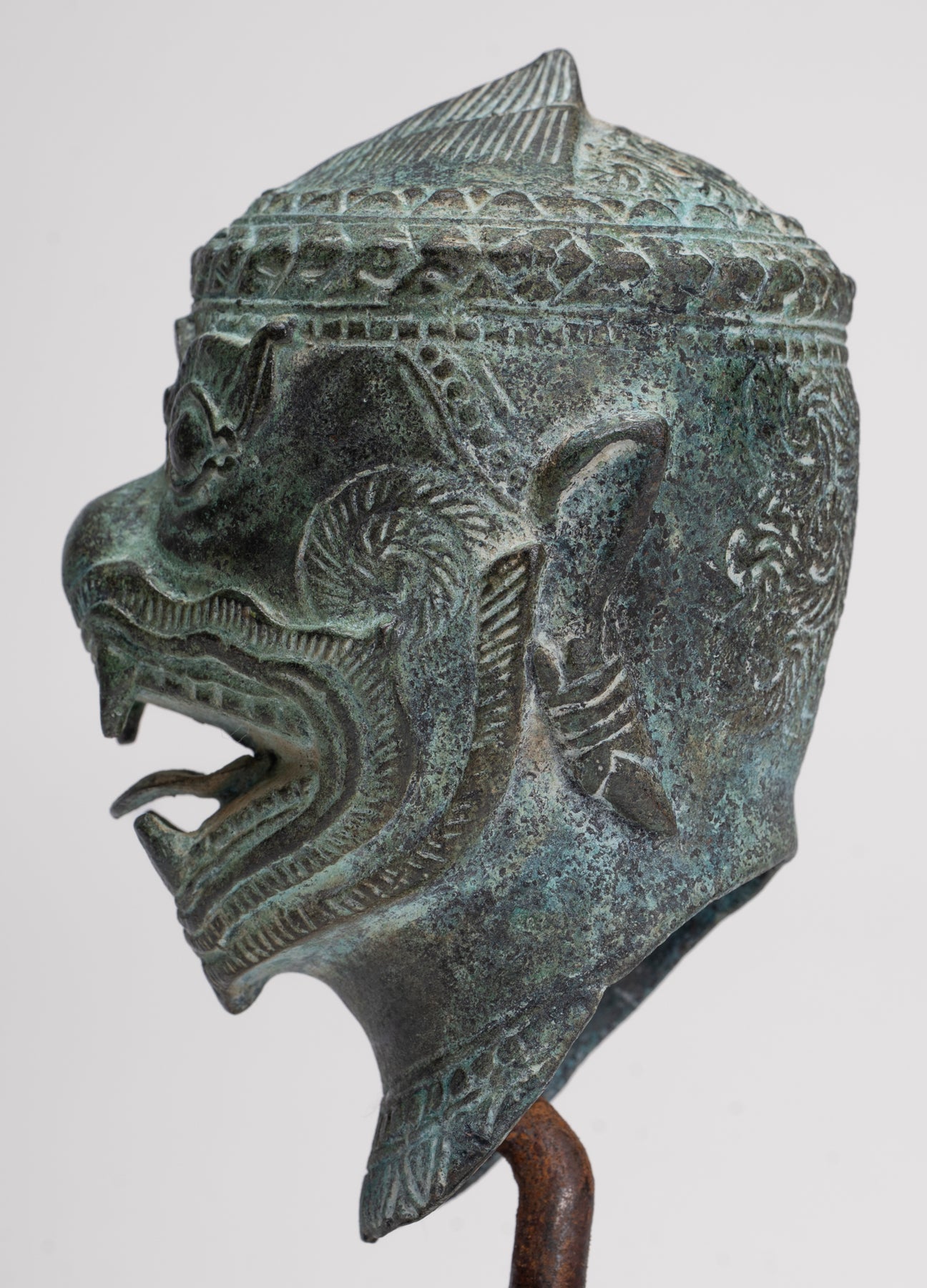 This sculpture is executed in the Bayon style, with a dynamic, expressive face that immediately captures attention. Similar depictions of Hanuman and other figures can be found in the reliefs of the Bayon temple, illustrating 12th-century battle scenes. The idea of a powerful military commander in monkey form comes from the Hindu epic Ramayana, where Prince Rama’s army is led by the valiant monkey general Hanuman.
