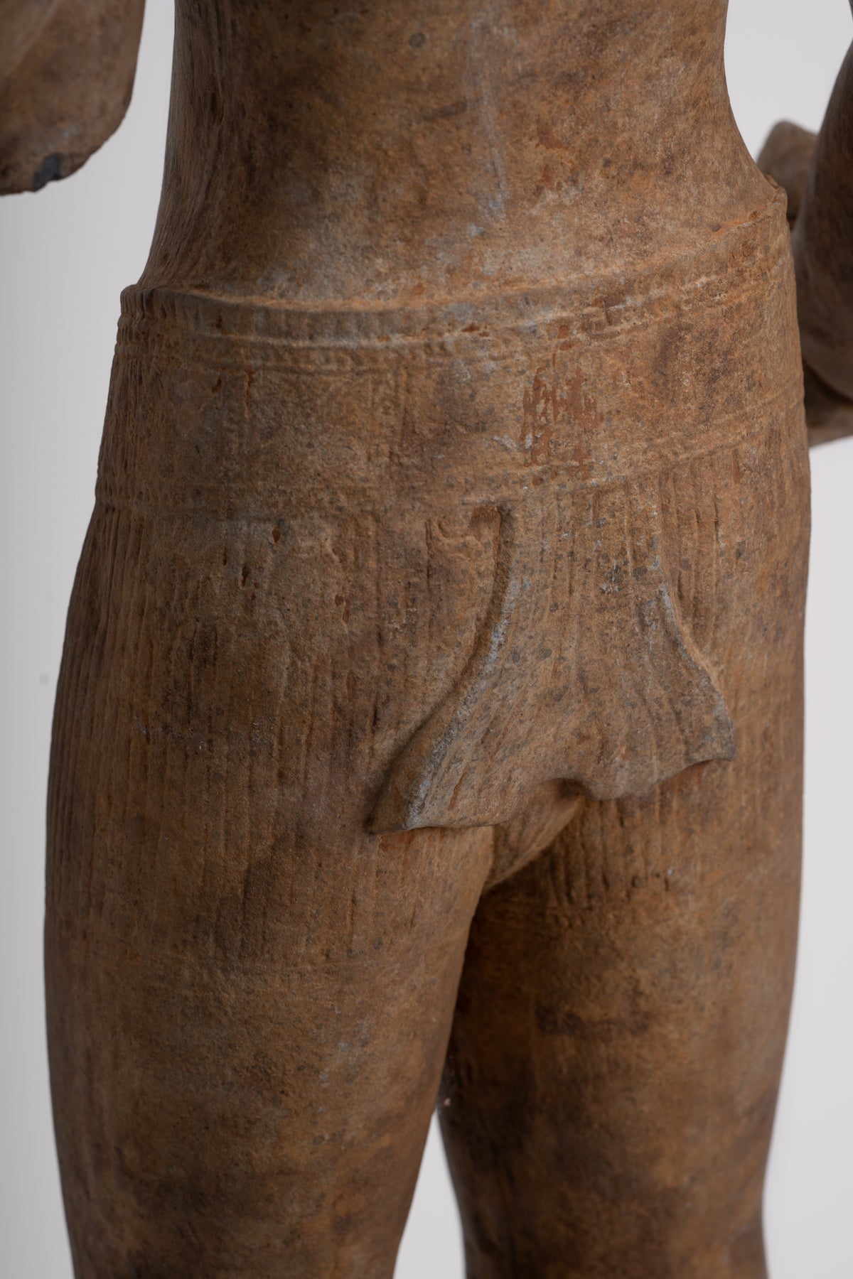 Antique Khmer Style Stone Koh Ker Standing Bodhisattva Avalokitesvara Statue - 91cm/36"
