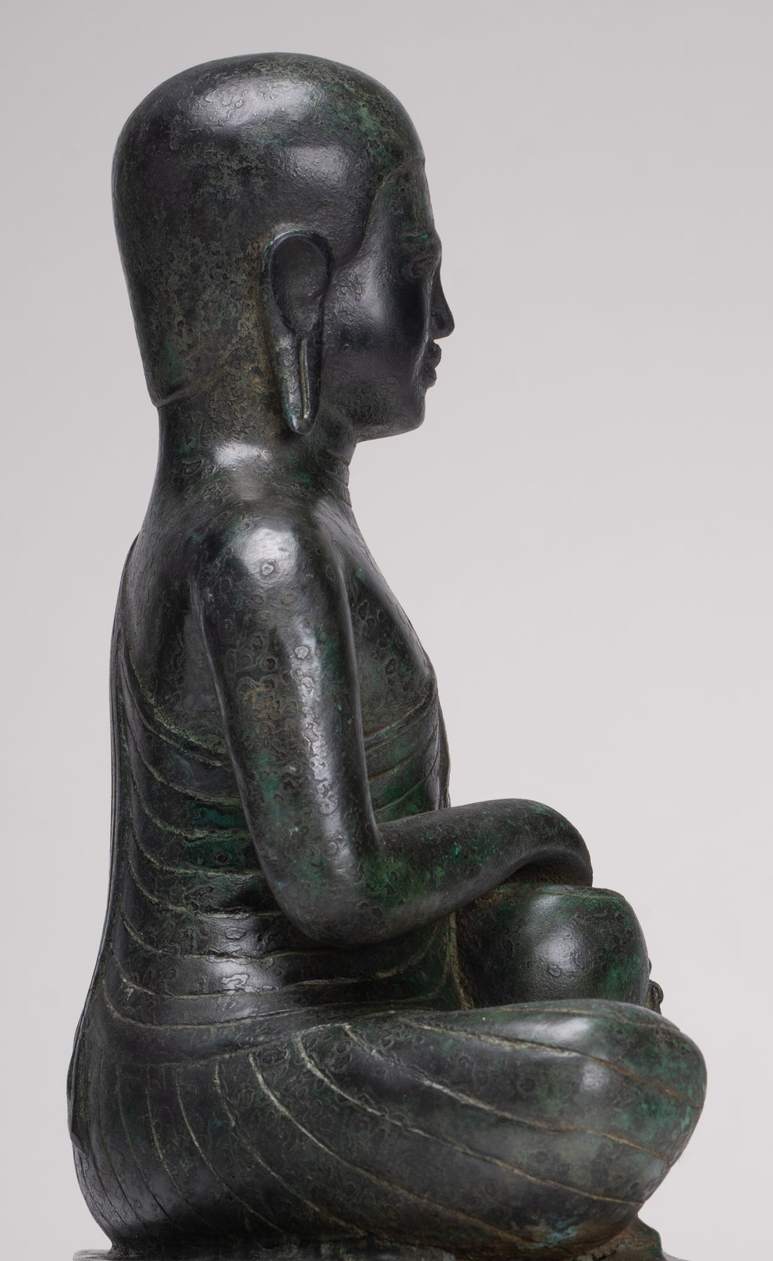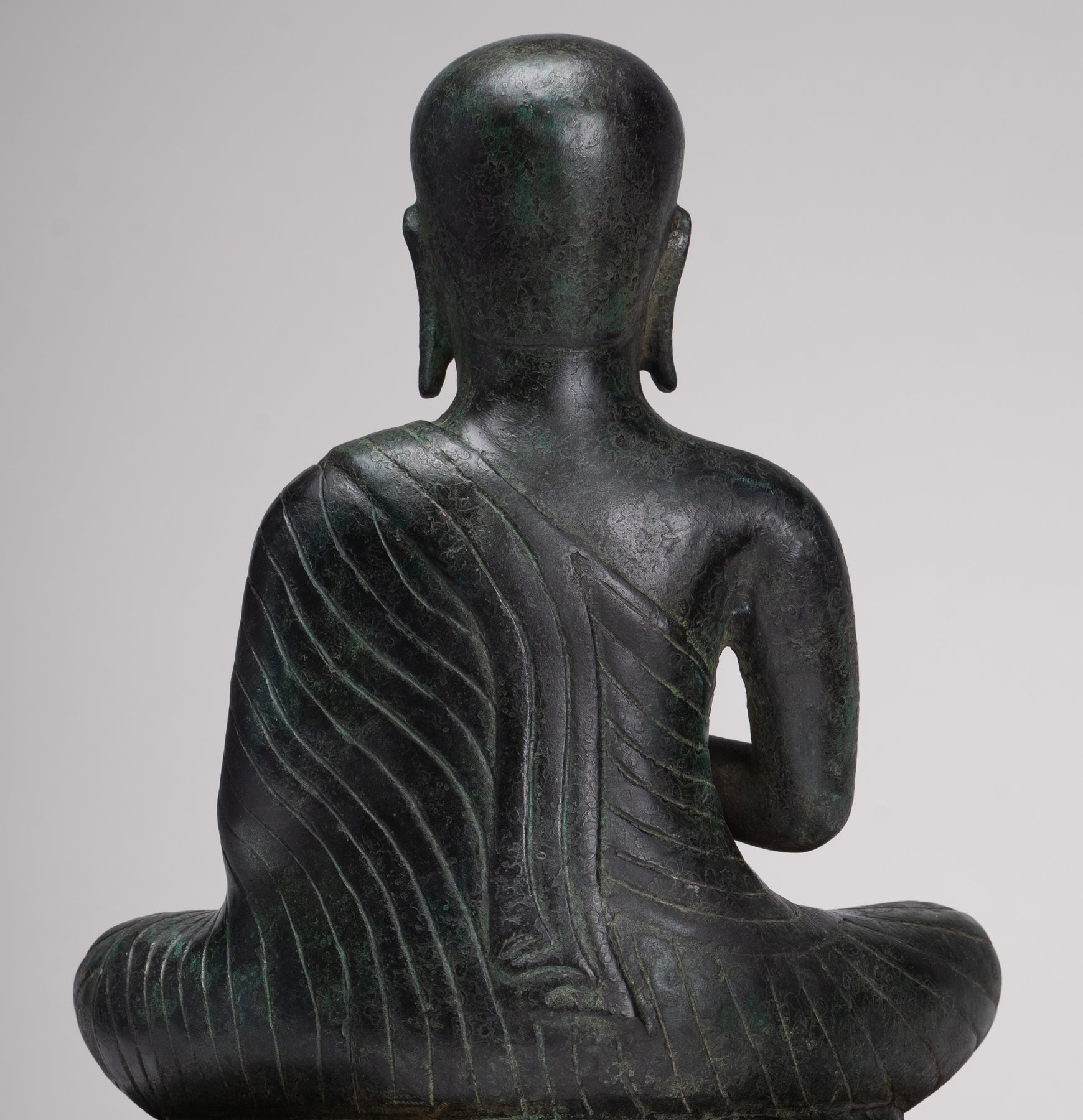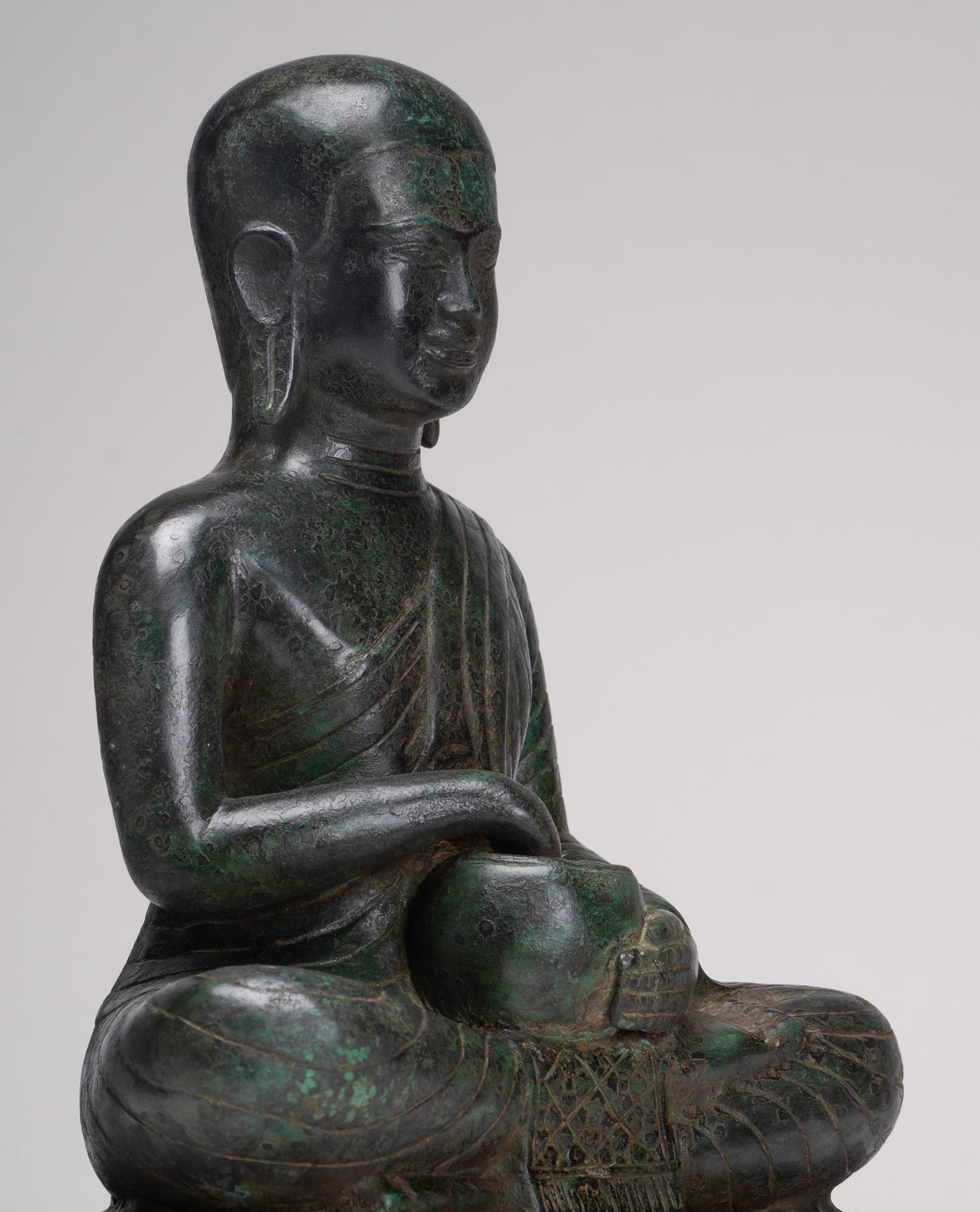 • Antique Thai Style Seated Bronze Monk Statue - 33cm/13"