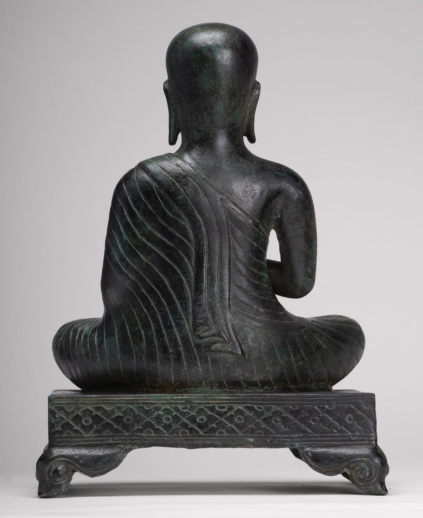 Antique Thai Style Seated Bronze Monk Statue - 33cm/13"