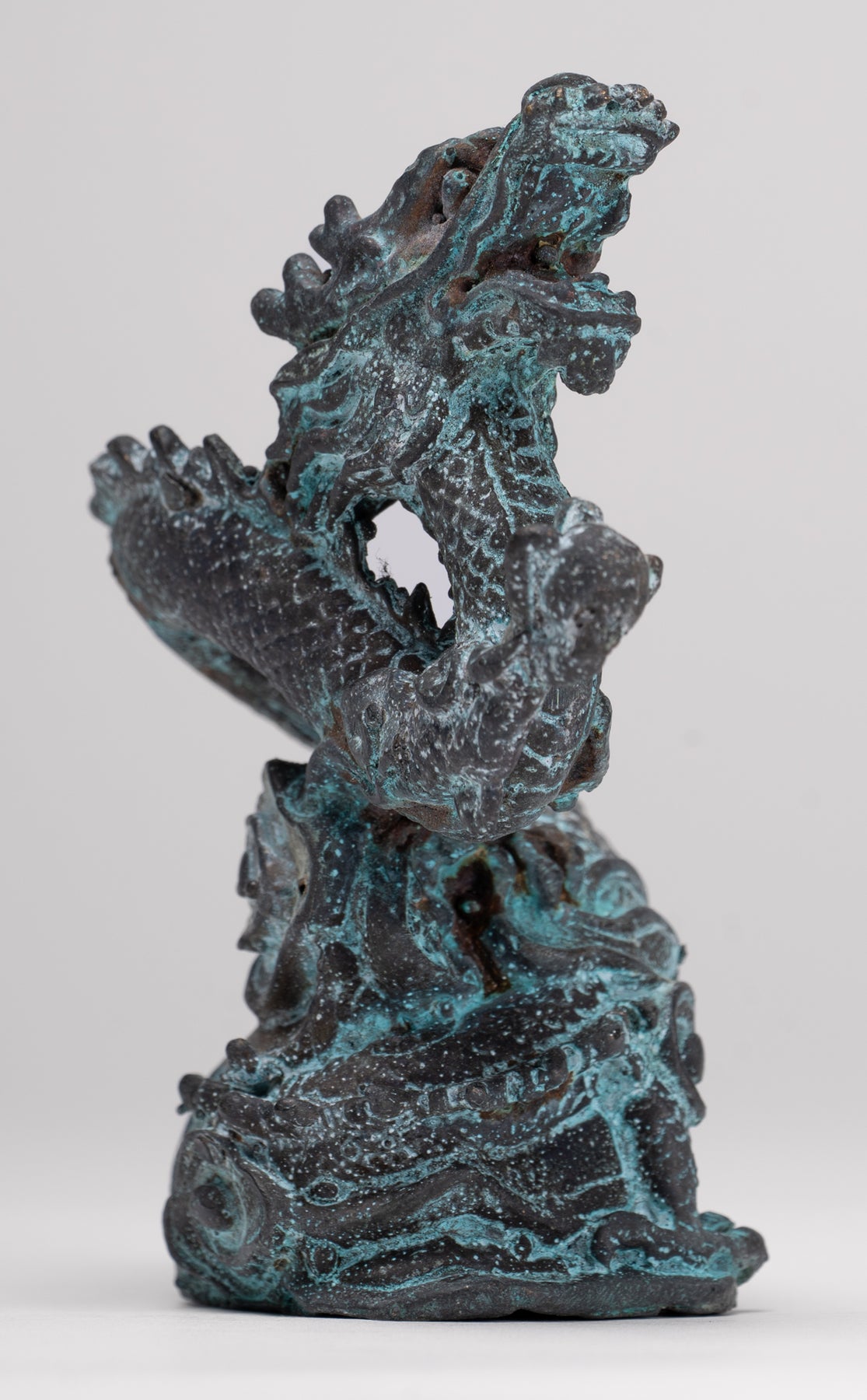 Antique Chinese Style Bronze Dragon Statue - 10cm/4"