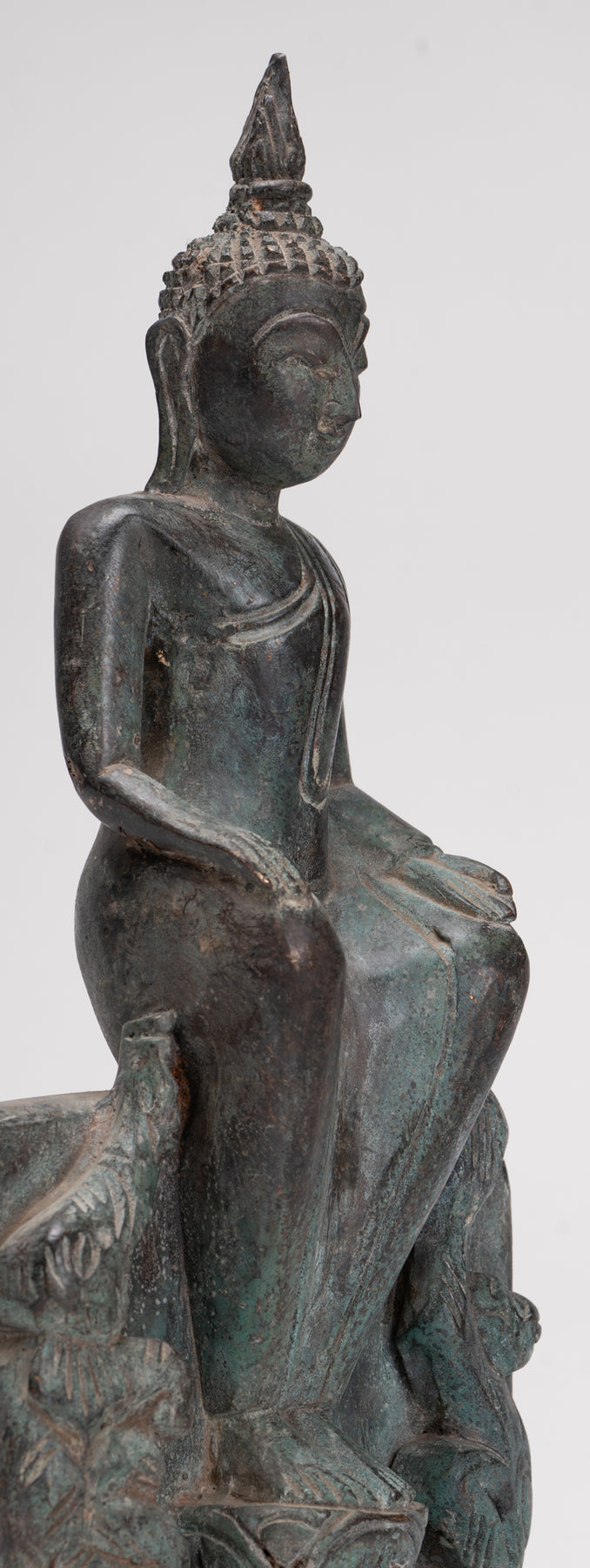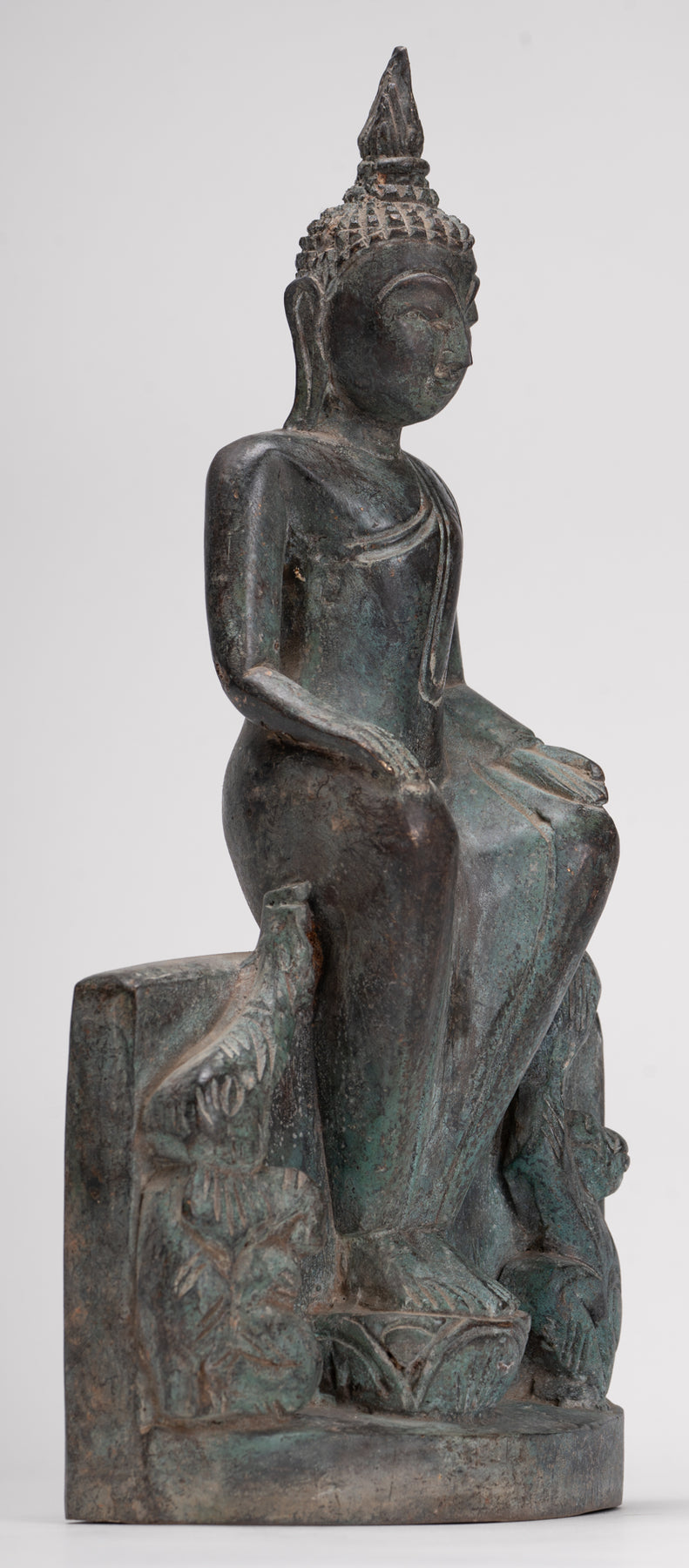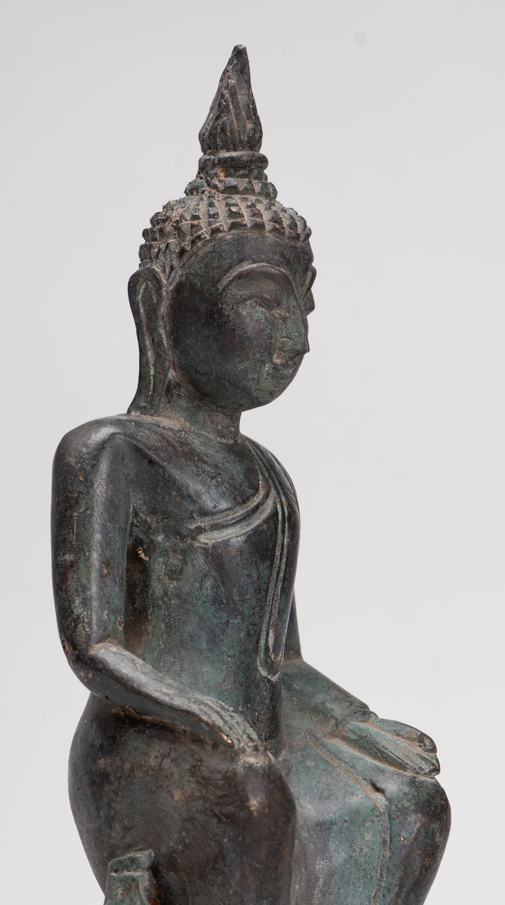 Estatua de Buda - Buda sentado de bronce antiguo estilo Laos el miércoles por la noche - 32 cm/13"