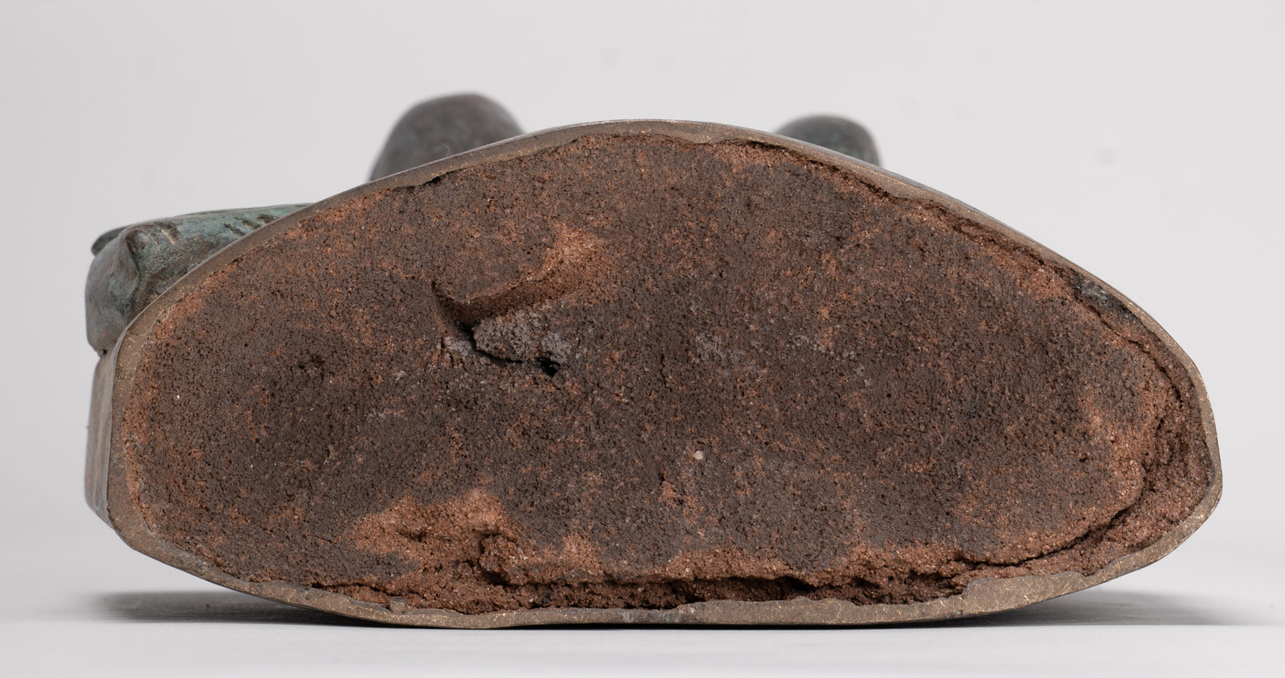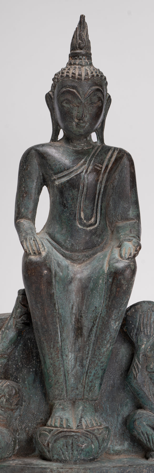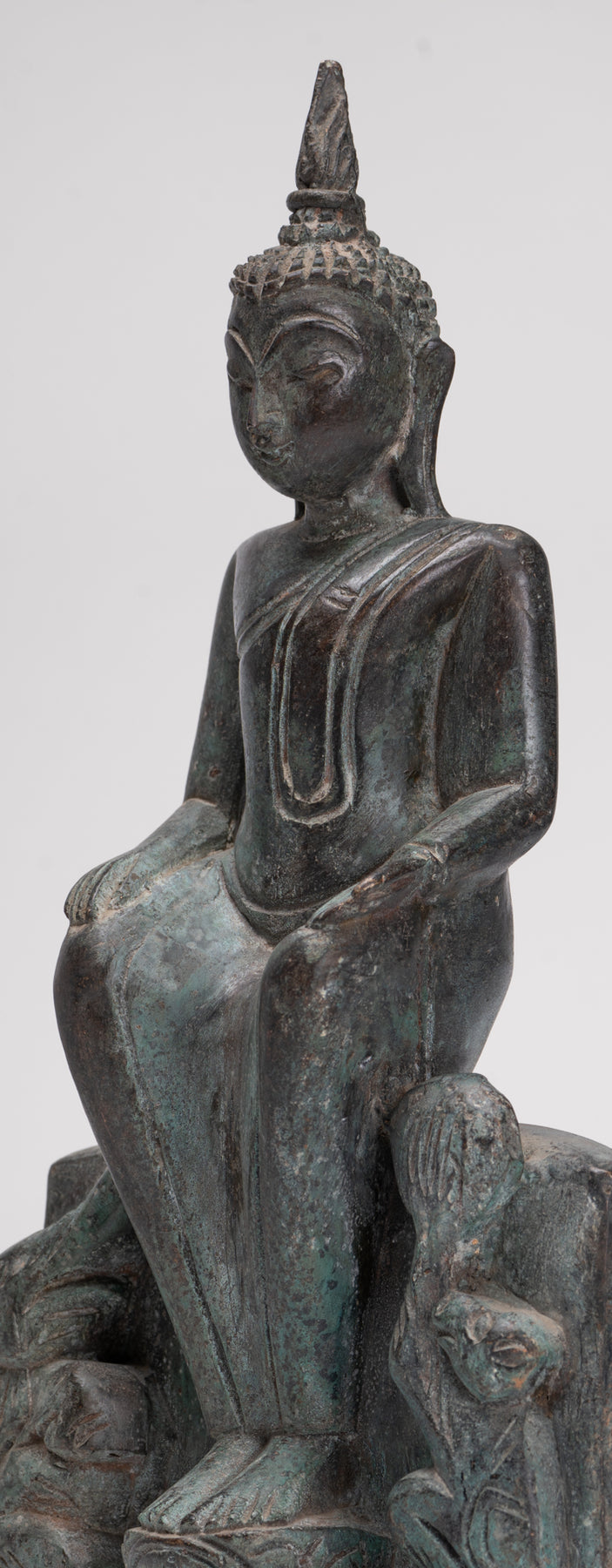 Estatua de Buda - Buda sentado de bronce antiguo estilo Laos el miércoles por la noche - 32 cm/13"