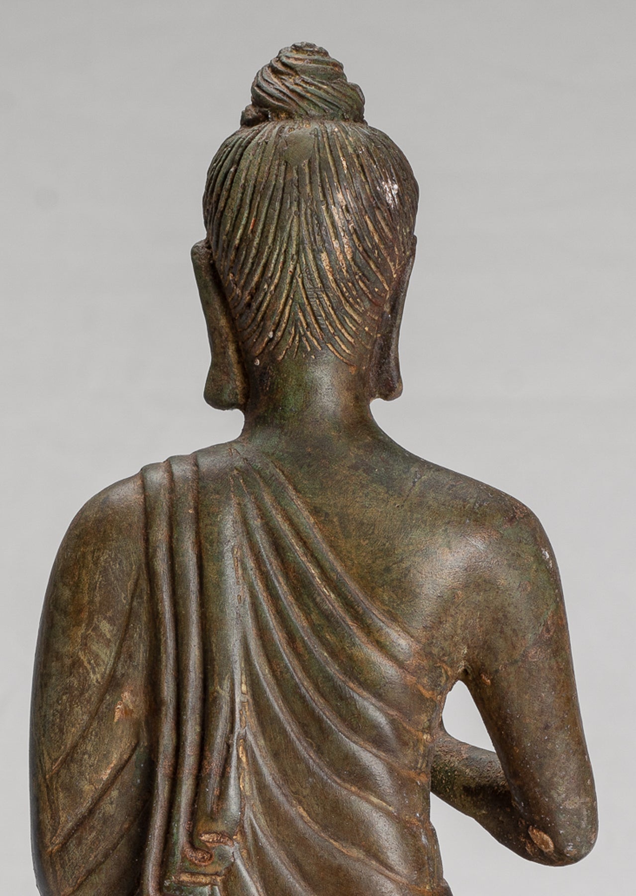 El casting es particularmente hermoso, evidente en el modelado nítido de los dedos de las manos y los pies y los rasgos faciales: cada detalle representado con precisión y cuidado. Una pátina rica y matizada realza aún más la escultura, aportando profundidad, carácter y una palpable sensación de antigüedad. De apariencia tradicional pero visualmente impactante, este Buda docente de estilo Gandhara ofrece un punto focal sereno y atemporal para cualquier hogar, oficina o espacio sagrado, invitando a la contemplación y a una conexión más profunda con el camino de Buda.