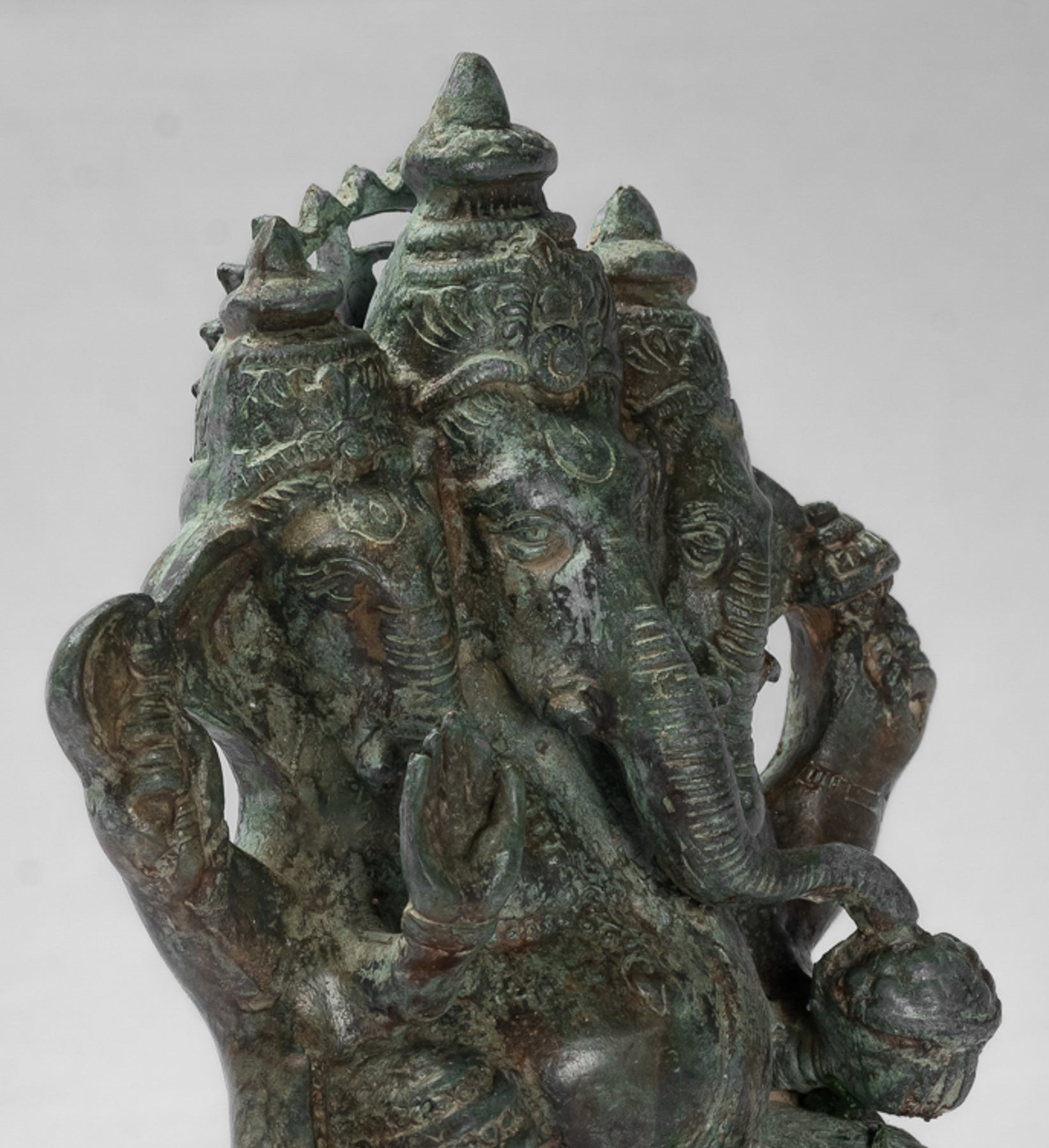 Antique Thai Style Bronze Tri Muhkthi Ganapathi Three Headed Ganesha Statue - 21cm/8"