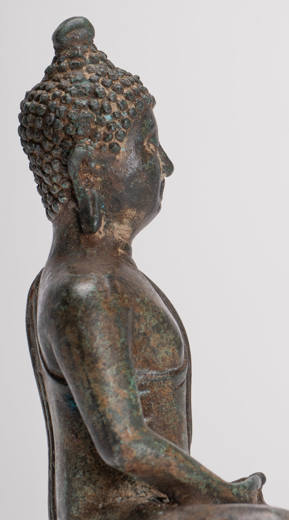 Buddha Sculpture - Antique Thai Style Bronze Seated Chiang Saen Meditation Buddha Statue - 14.5cm/6"