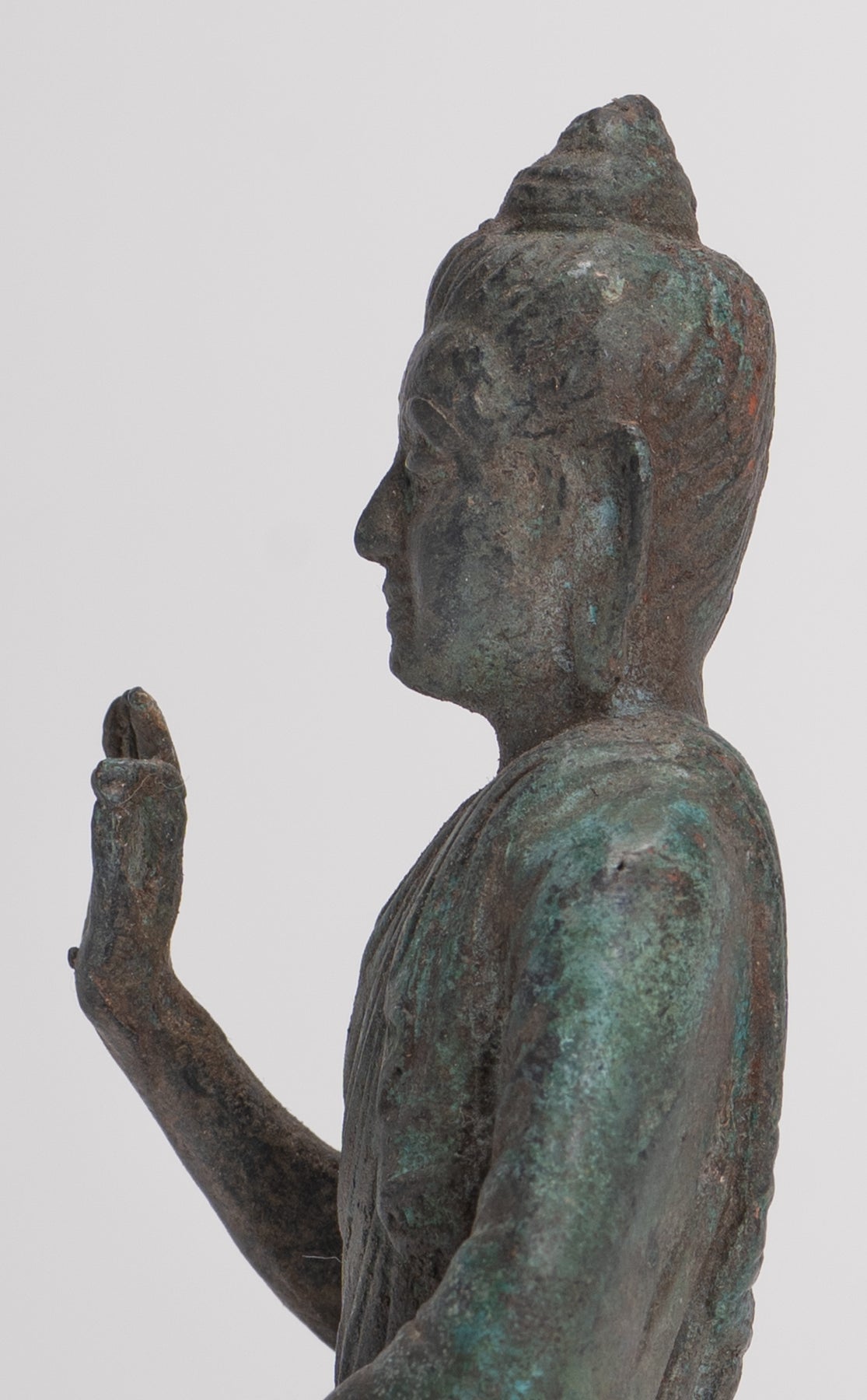 El Buda Gandhara logra un equilibrio entre realismo e idealismo. Capturando la forma humana mientras la imbuimos de cualidades espirituales. Este enfoque artístico resalta la existencia histórica de Buda, así como su sabiduría y compasión trascendentales.