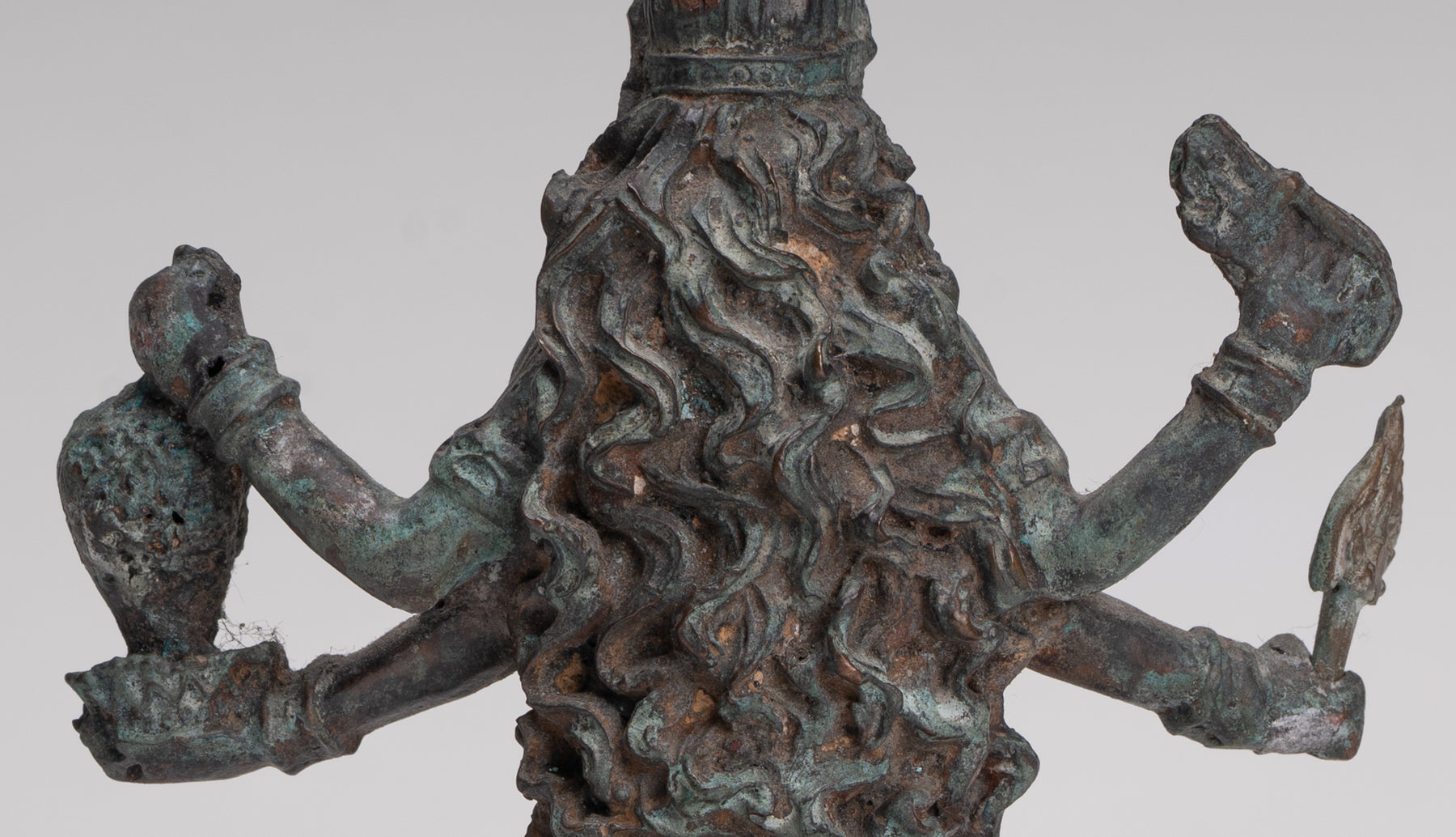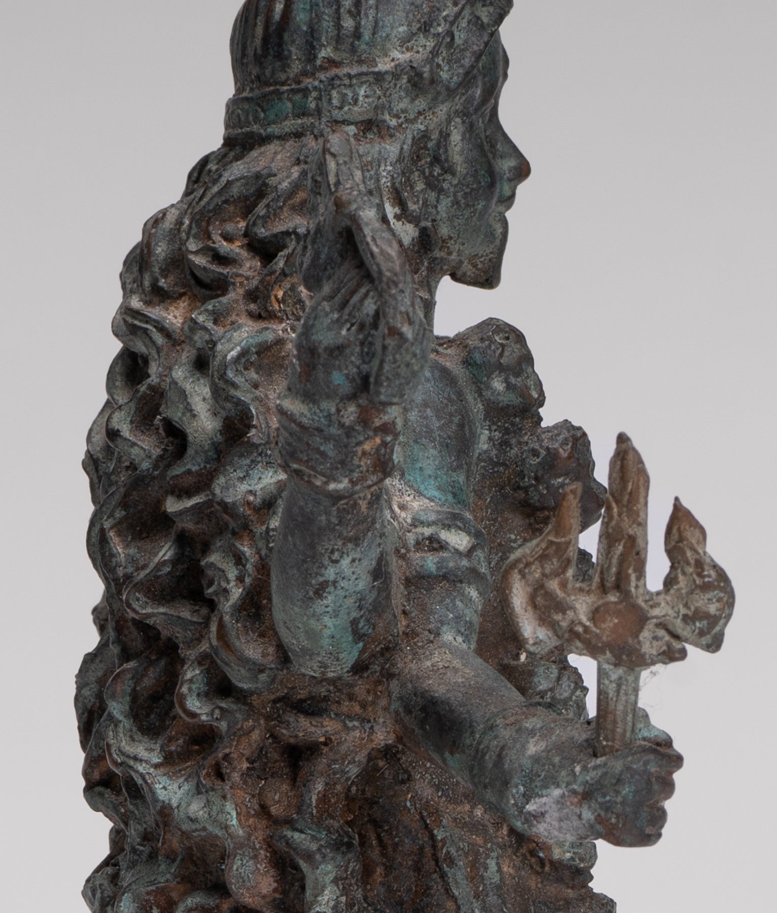 La escultura también incluye un tridente removible (trishula), enfatizando aún más el papel de Kali como portador de un poder transformador.