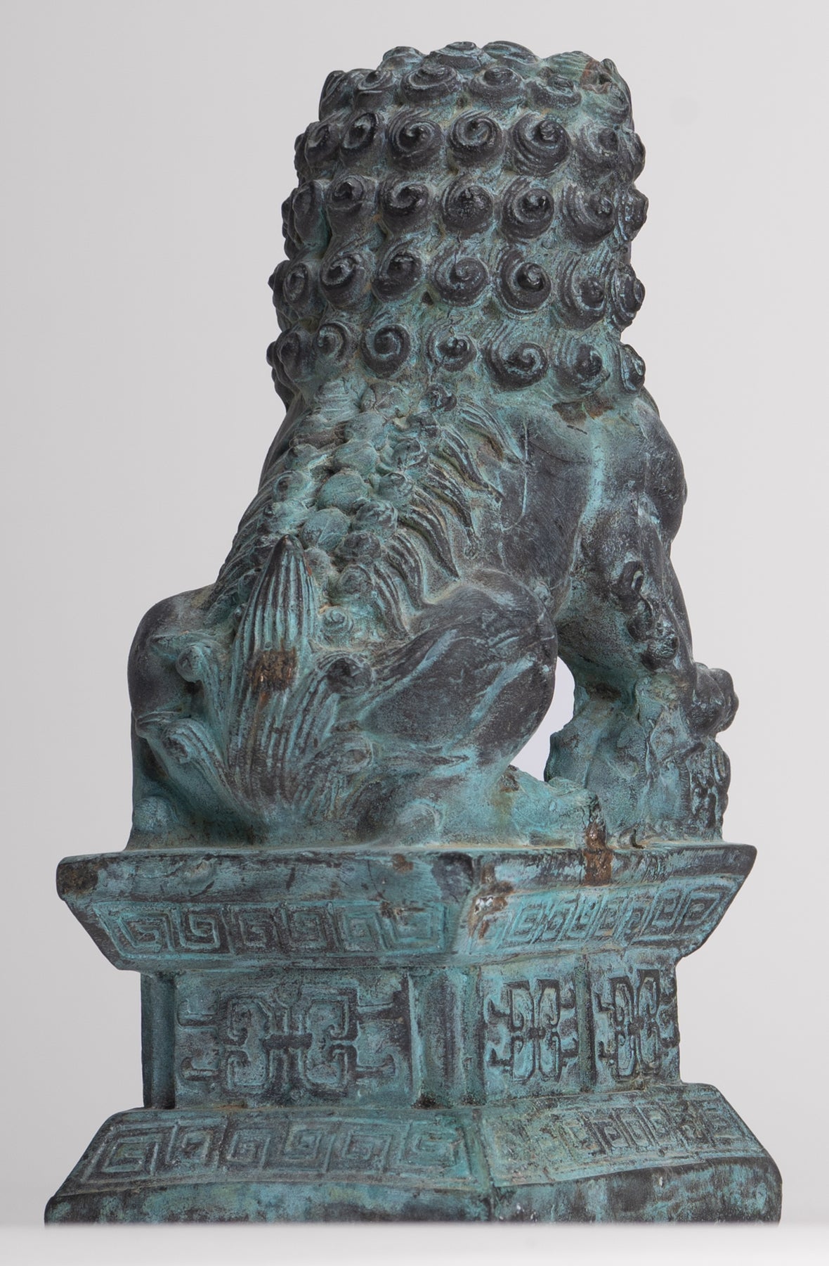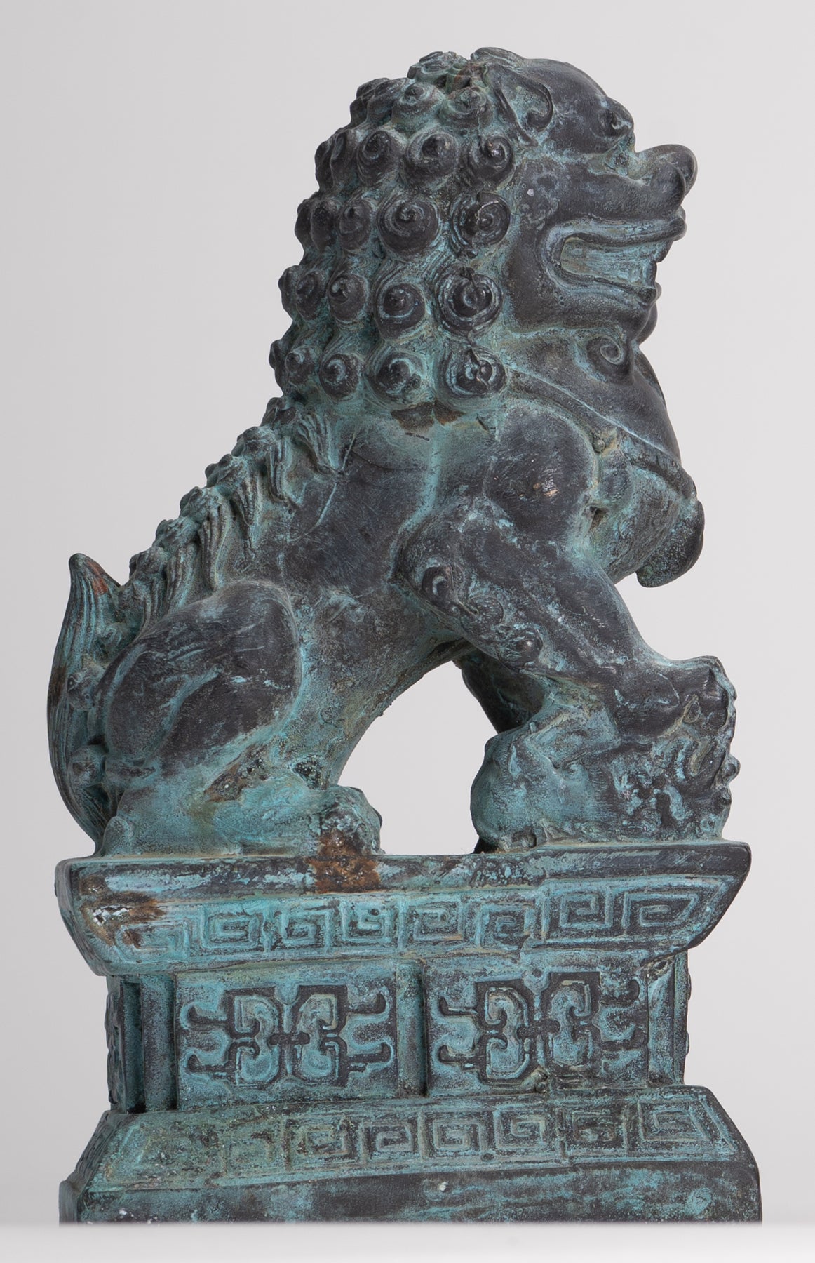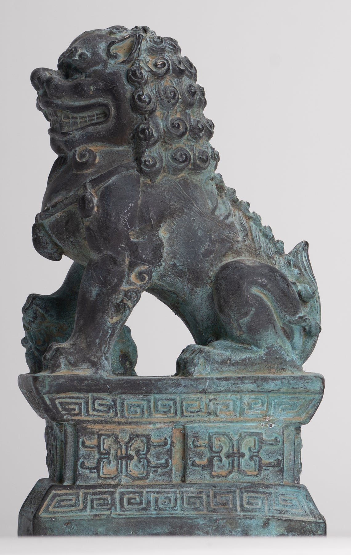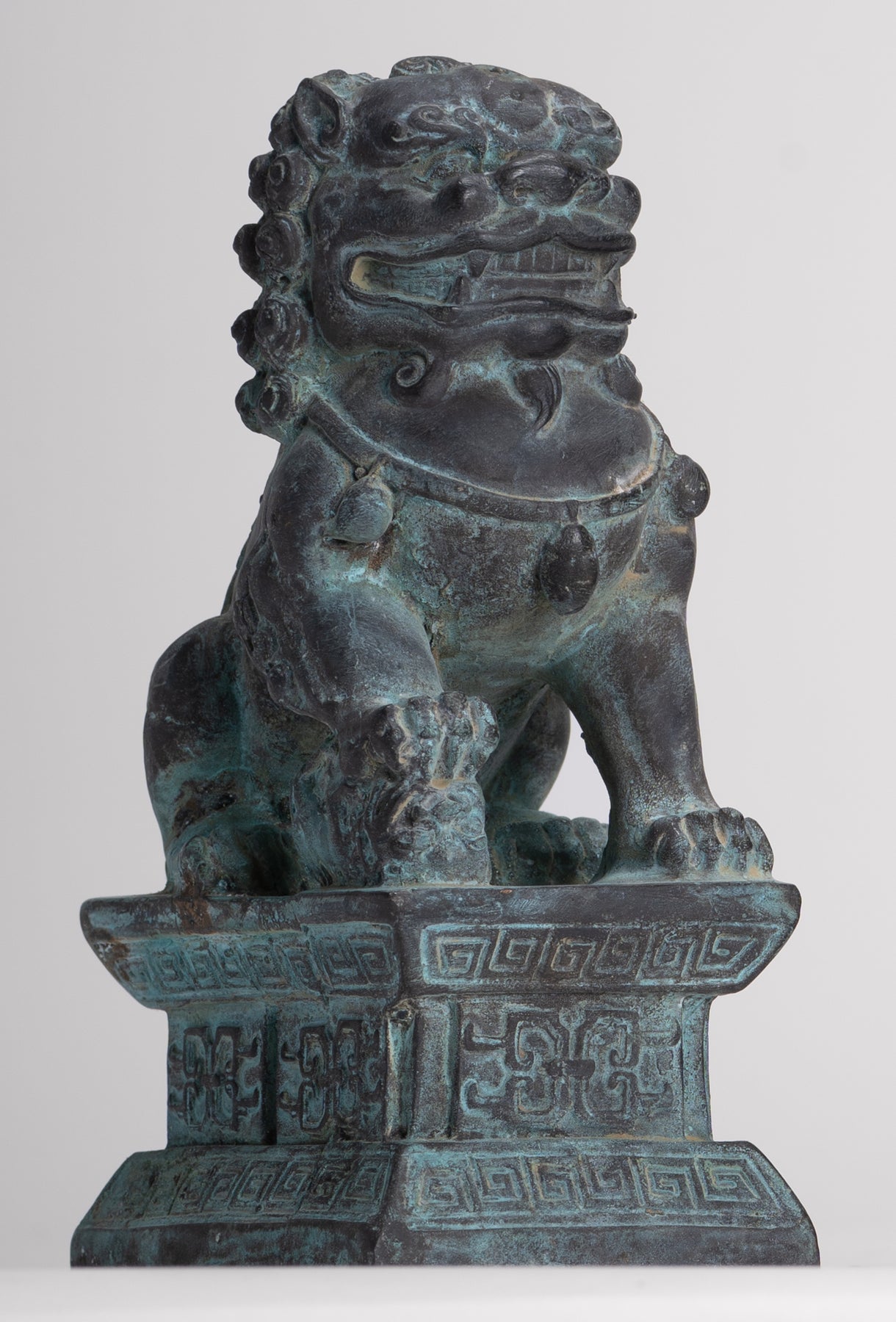 Desde la introducción del simbolismo del león en la cultura india, especialmente a través del simbolismo budista, las estatuas de leones guardianes se han colocado tradicionalmente frente a los palacios imperiales chinos, las tumbas imperiales, las oficinas gubernamentales, los templos y las casas de los funcionarios gubernamentales y los ricos, y se cree que tienen poderosos beneficios protectores.
