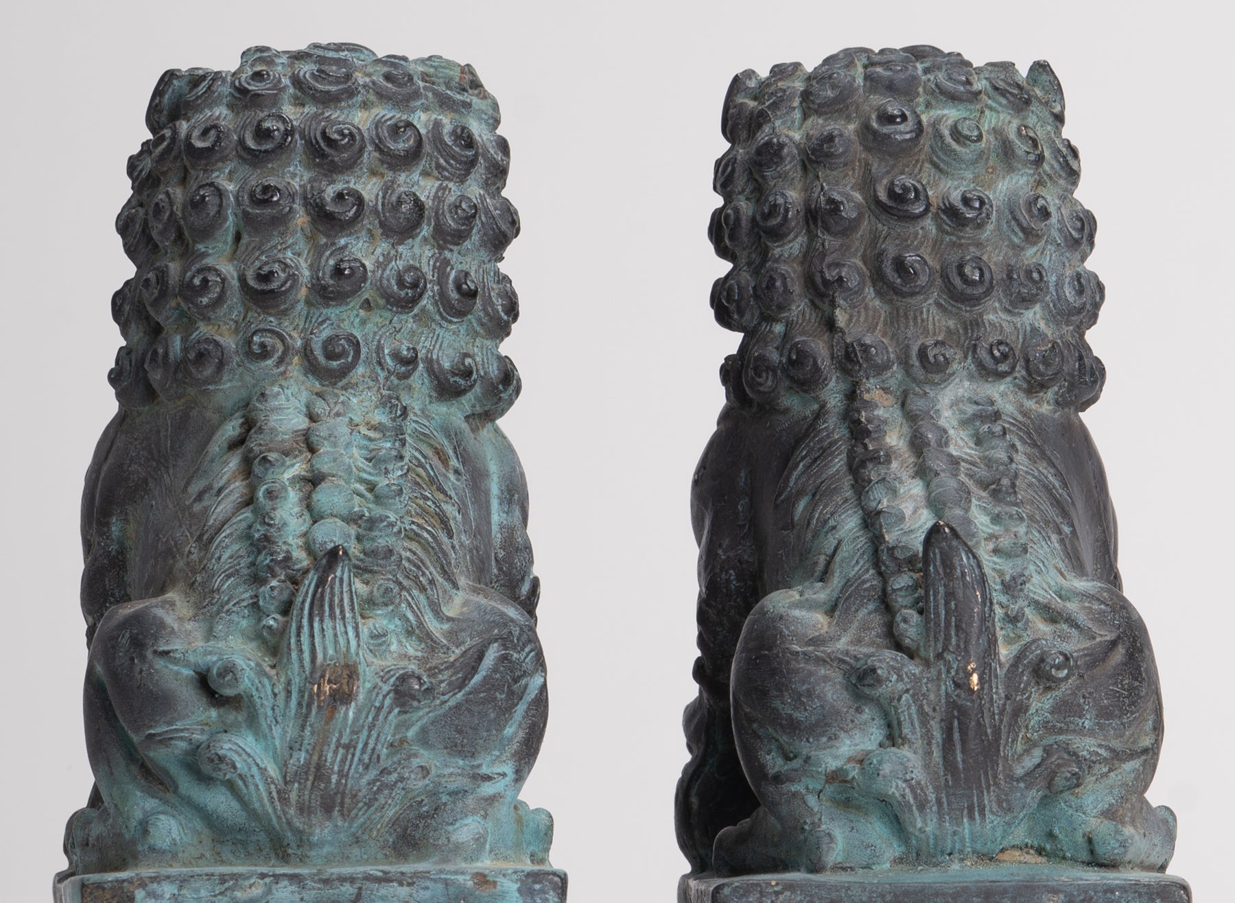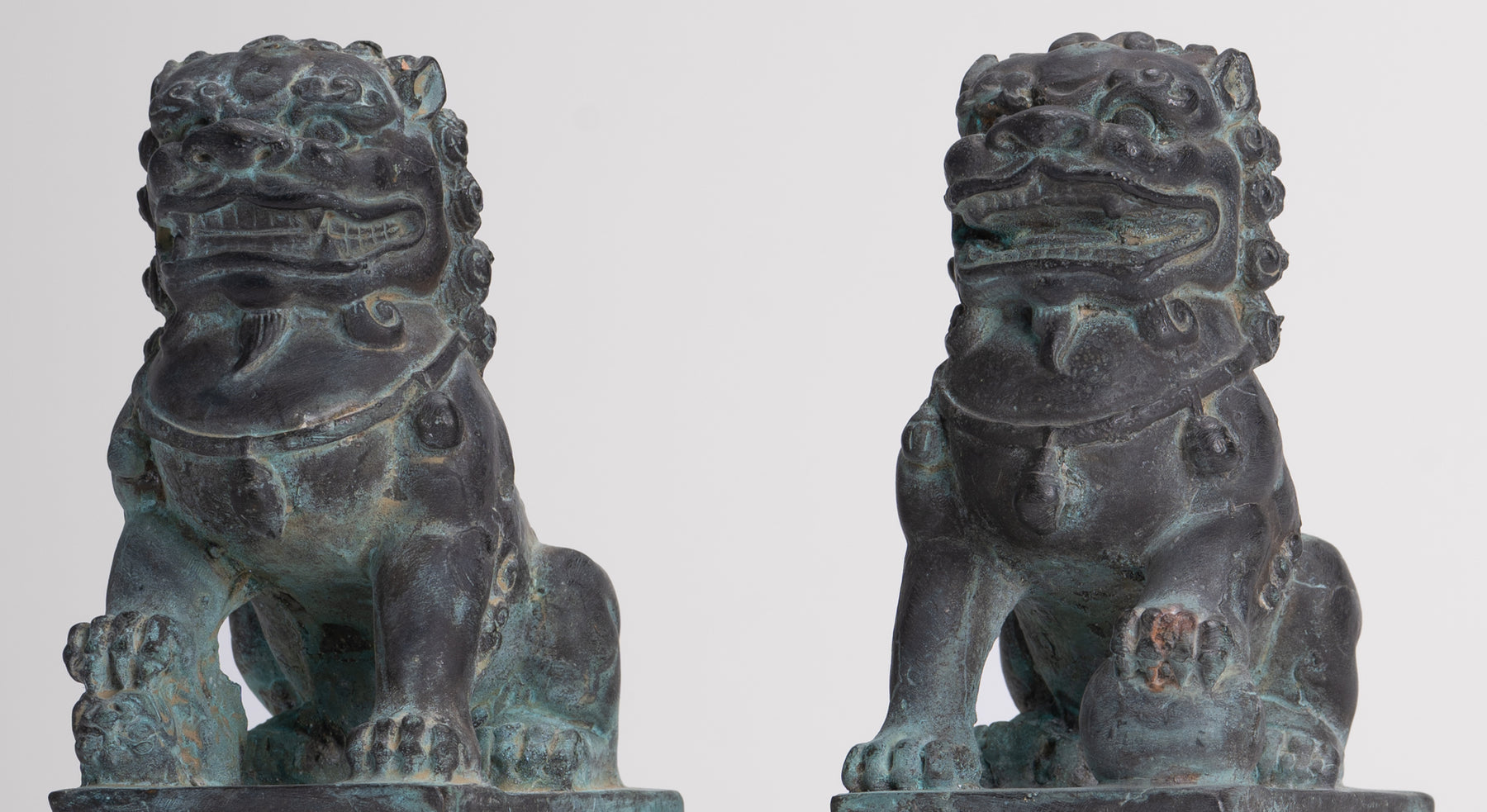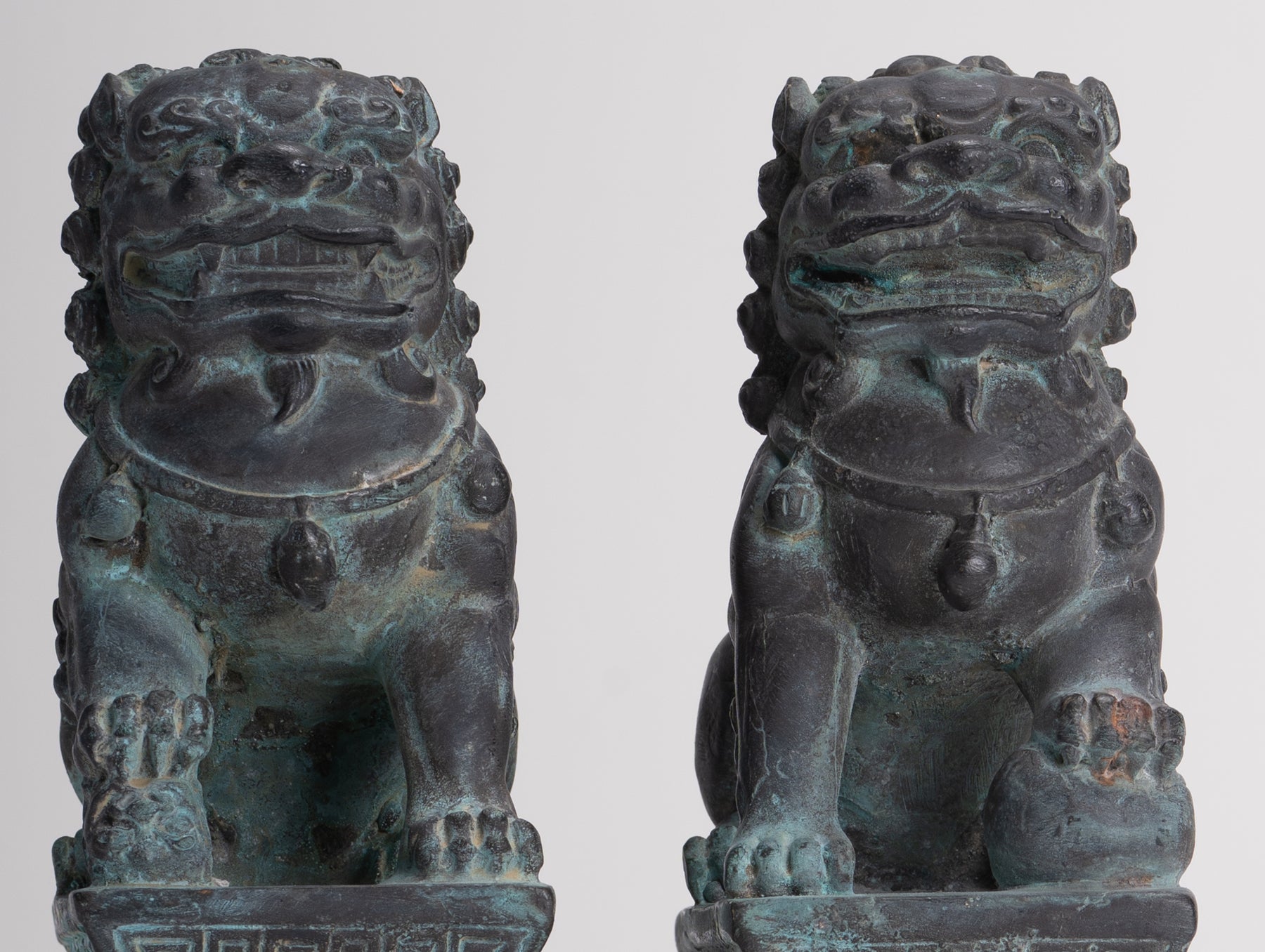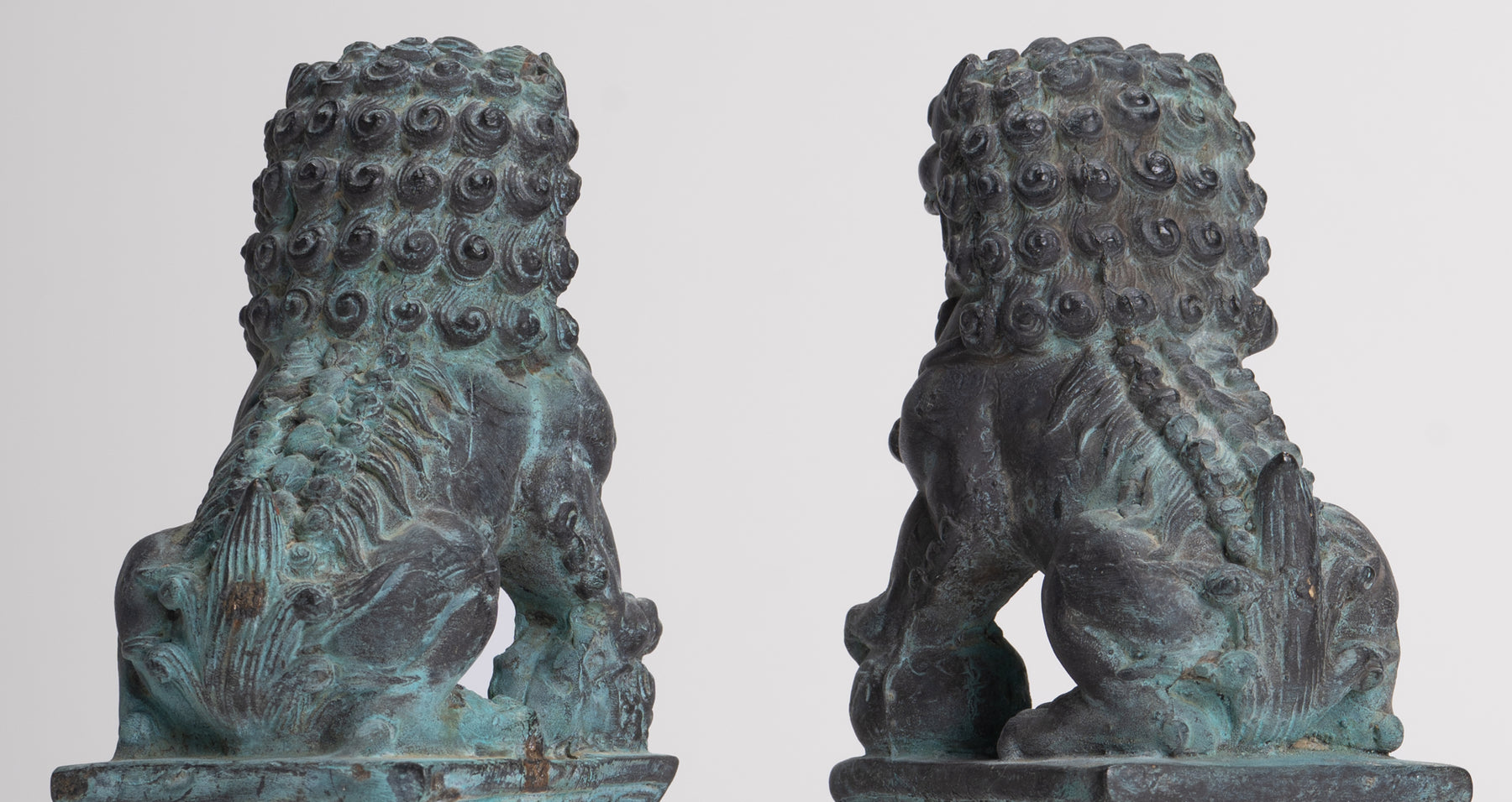 Antique Chinese Style Bronze Temple Guardian Lions Shishi Lions Foo Dogs Imperial Lions (Pair) - 16.5cm/7"